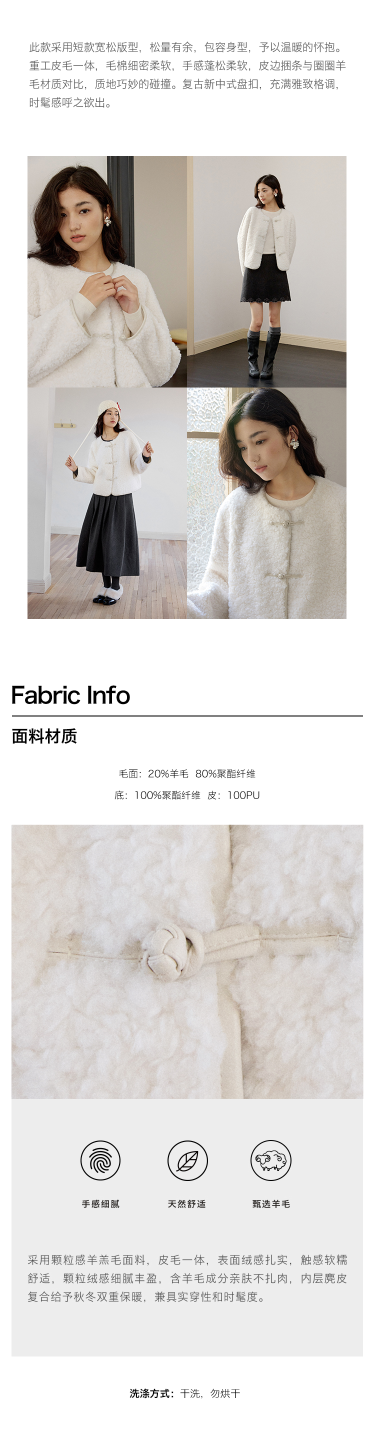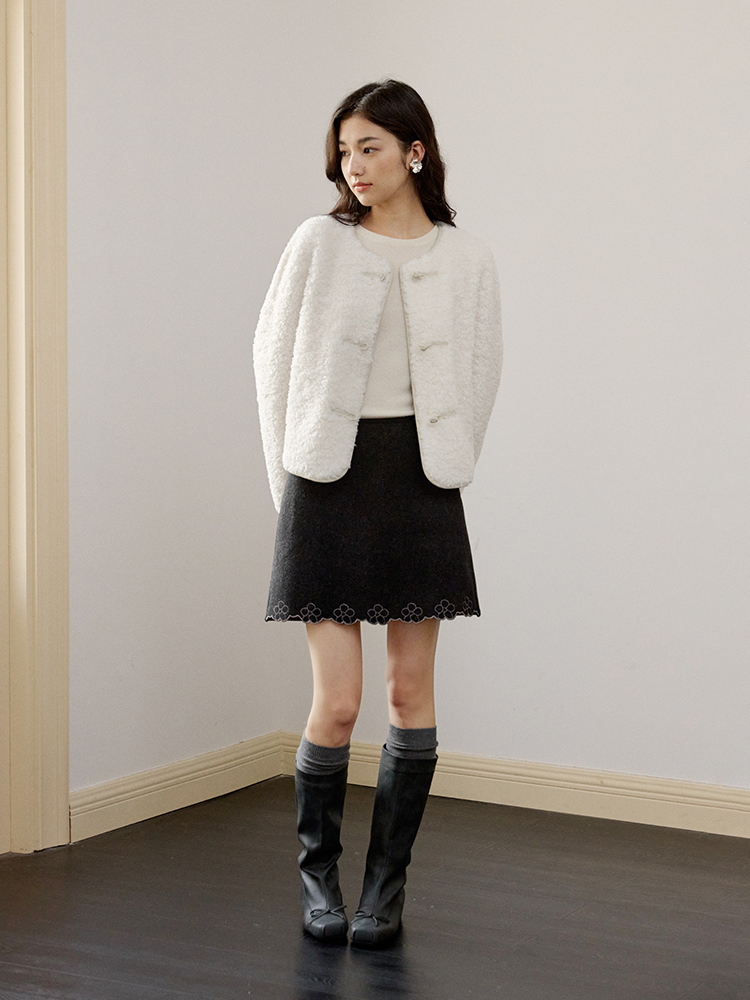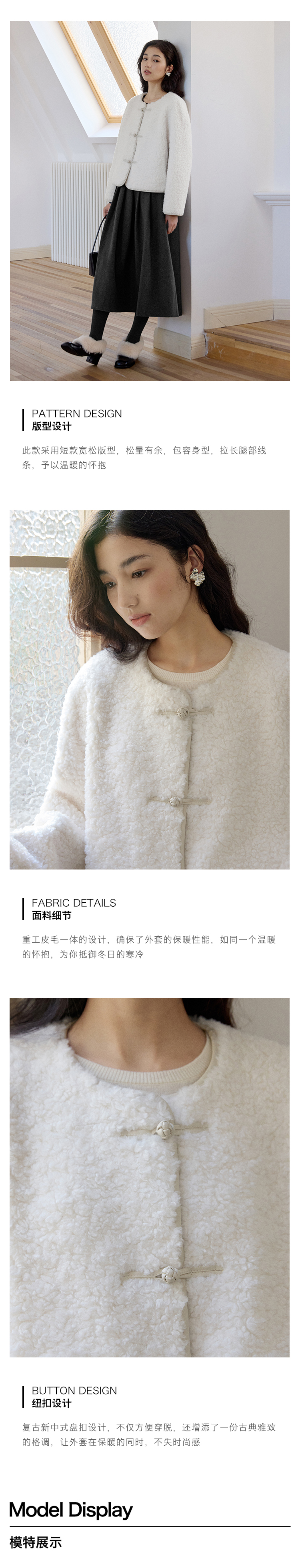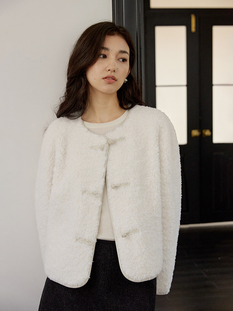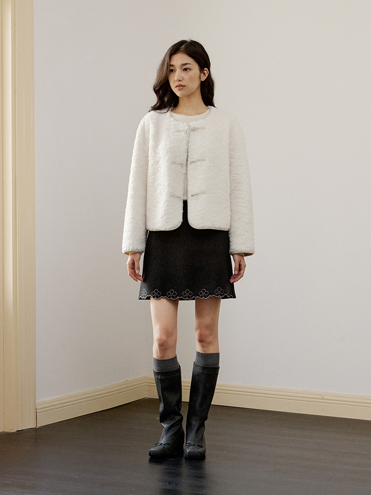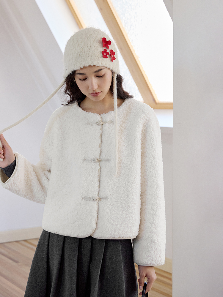 ForPoem 现货 24/FW原创设计新中式盘扣羊毛皮毛一体短款外套
