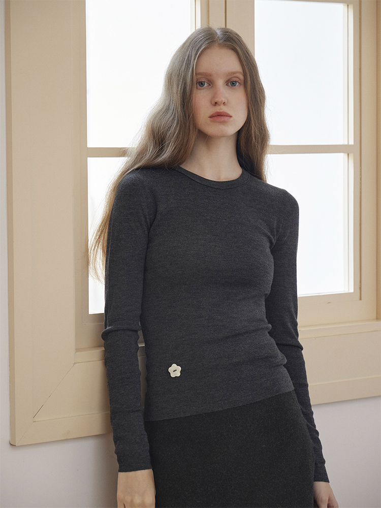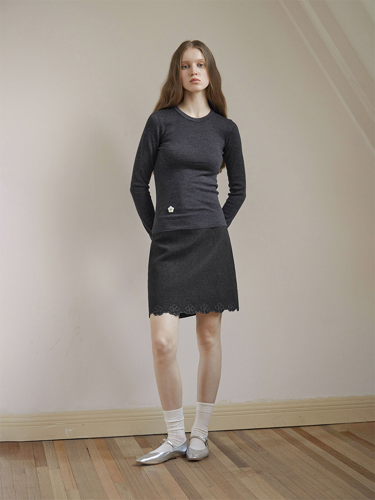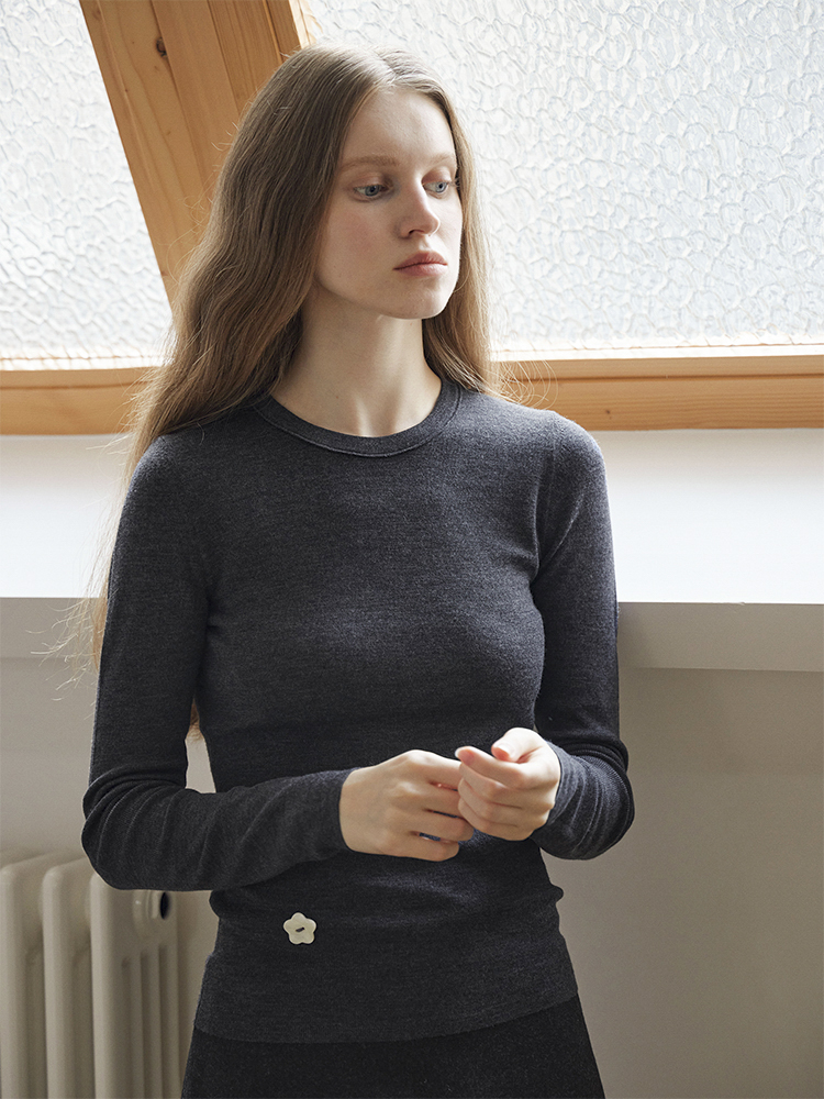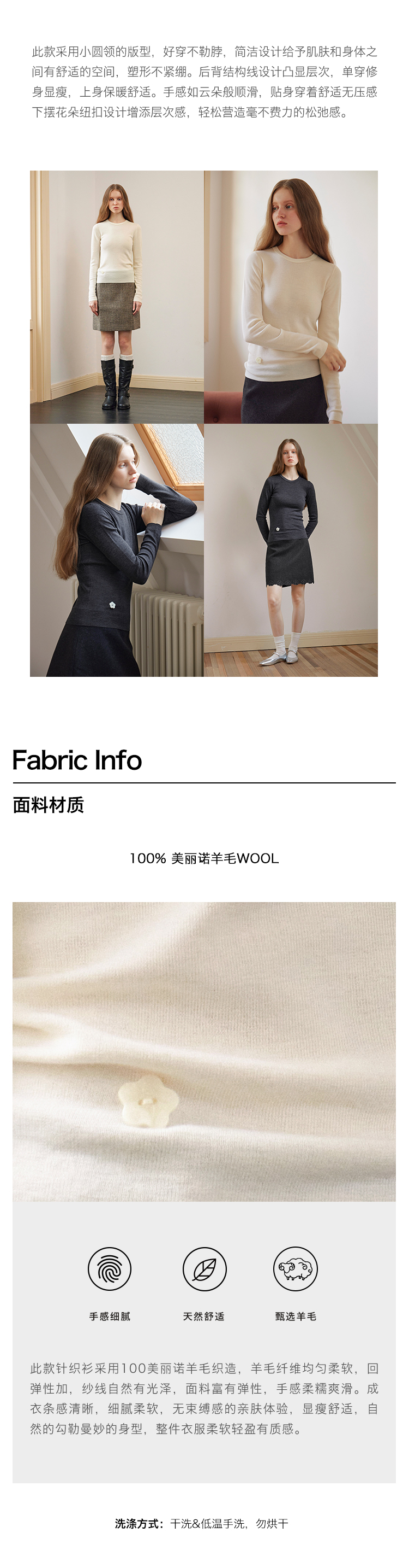 ForPoem 现货 24/FW原创设计百搭简约100美丽诺羊毛花朵针织打底衫