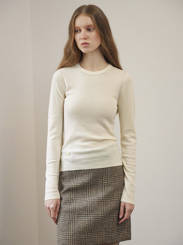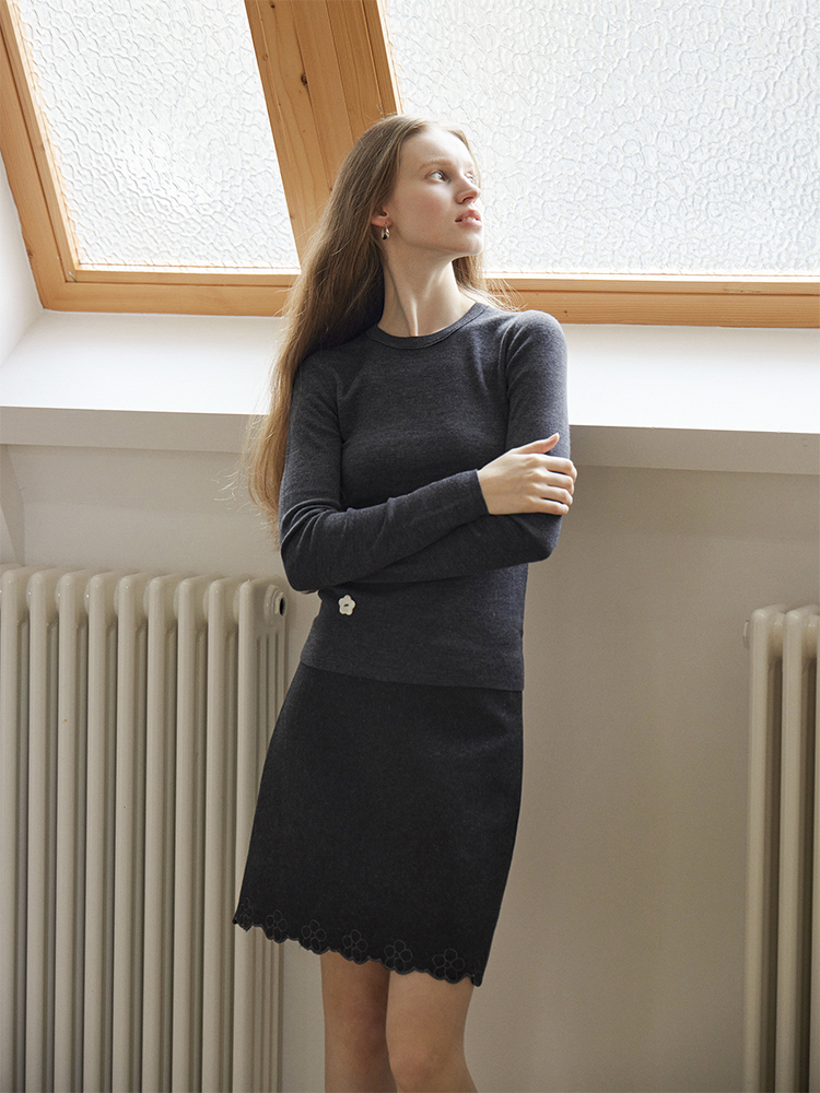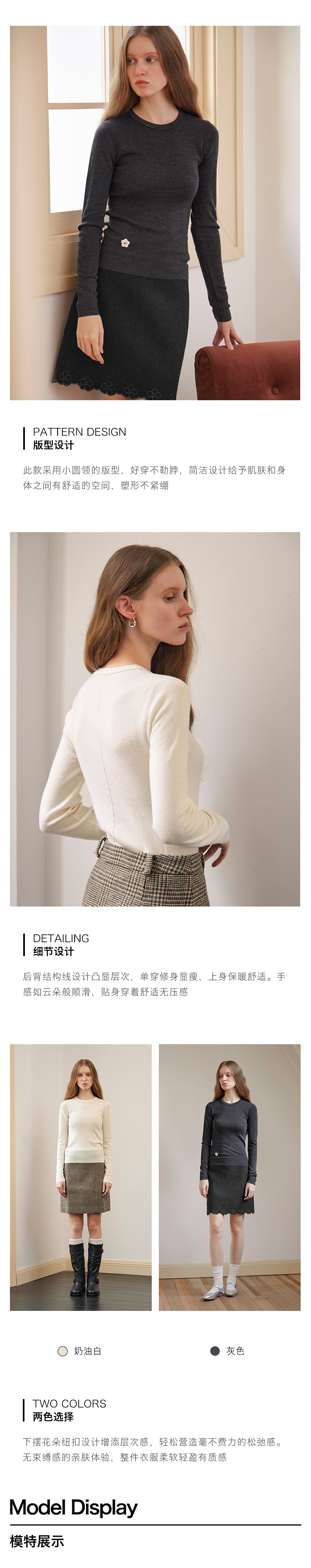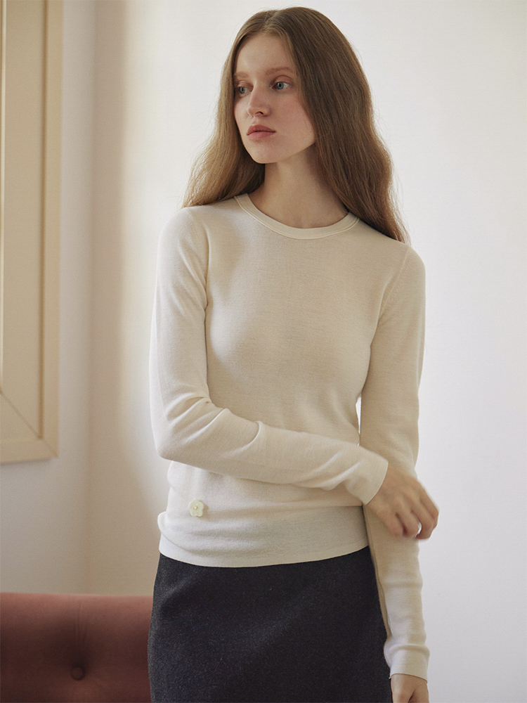 ForPoem 现货 24/FW原创设计百搭简约100美丽诺羊毛花朵针织打底衫