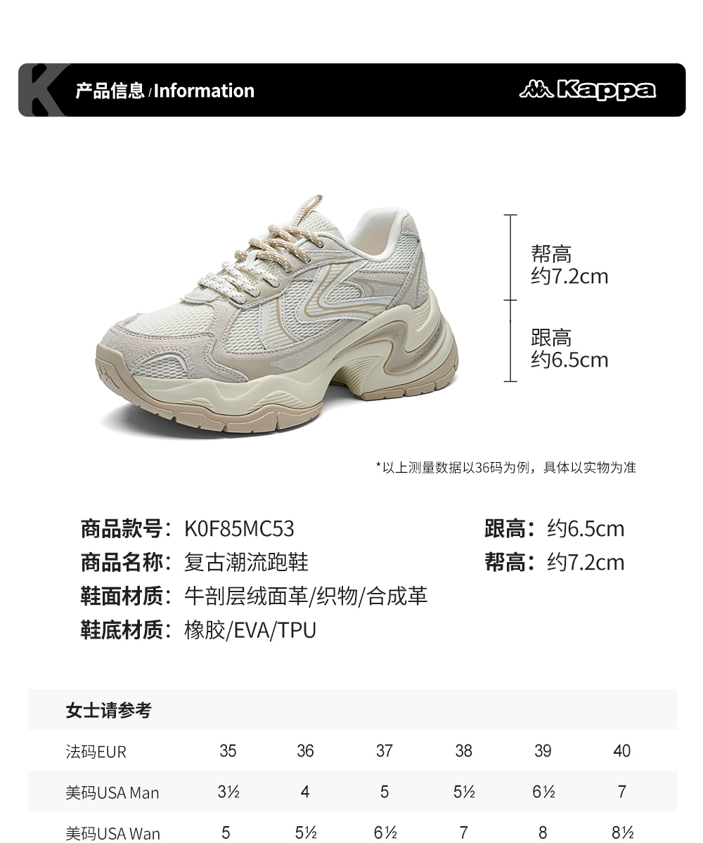 Kappa 2025秋季新款 厚底复古潮流休闲运动鞋 女款K0F85MC53