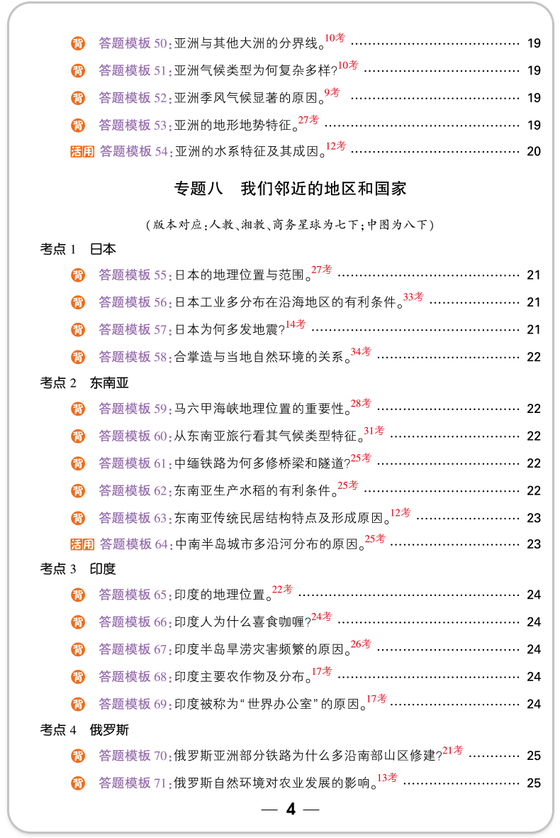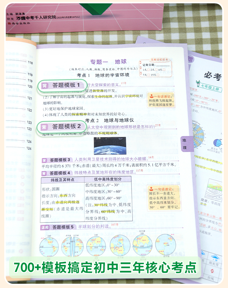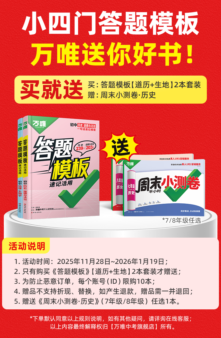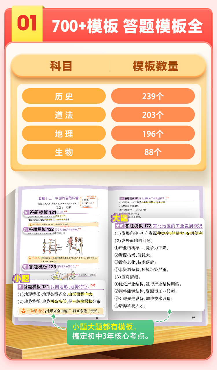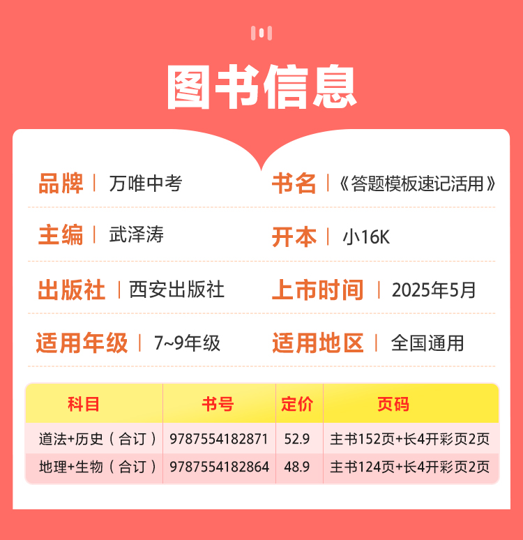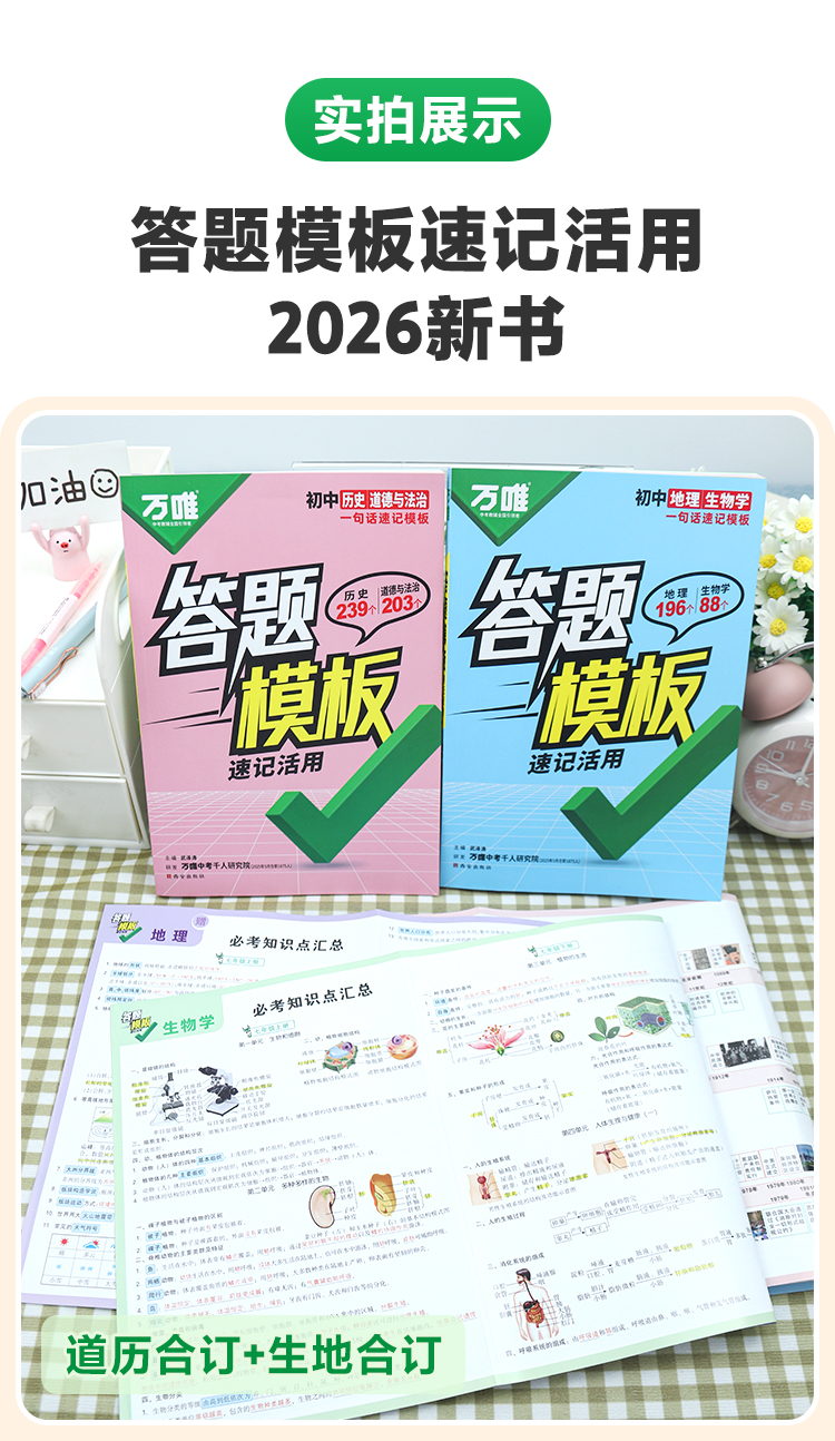 万唯中考初中小四门速用答题模板速记活用知识点必背全国通用七八九年级政治历史地理生物速记背记手册大全中考初二会考复习资料
