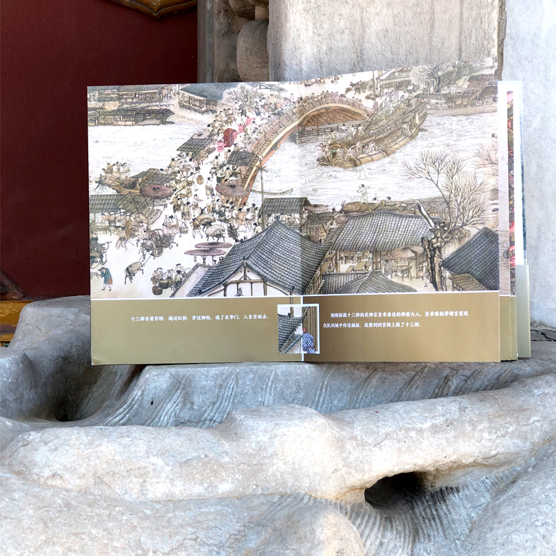 周子源热爱传统文化,他发现《清明上河图》所呈现的一千年前北宋京城汴梁社会生活场景正是《十三郎》故事发生的历史背景,于是历时三年查阅史料文献,走访宋韵遗迹,*终形成将传说故事和历史名画融到一起,并通过绘本呈现的想法。作者用了两年时间临摹《清明上河图》长卷三次,并参考大量辅助资料和实景观摩,将原画中残损部分做了修补,而对《十三郎》的故事也进行了全新创作。