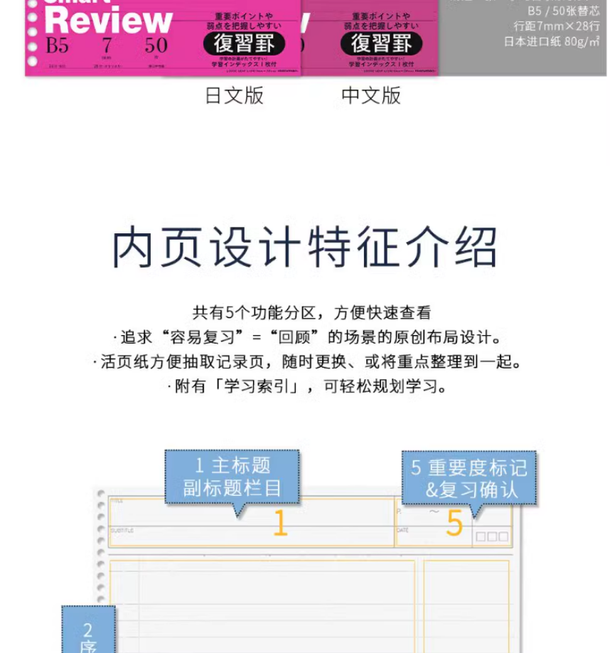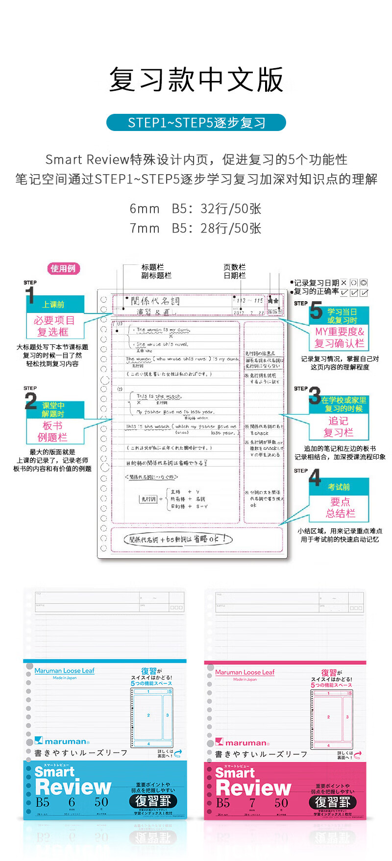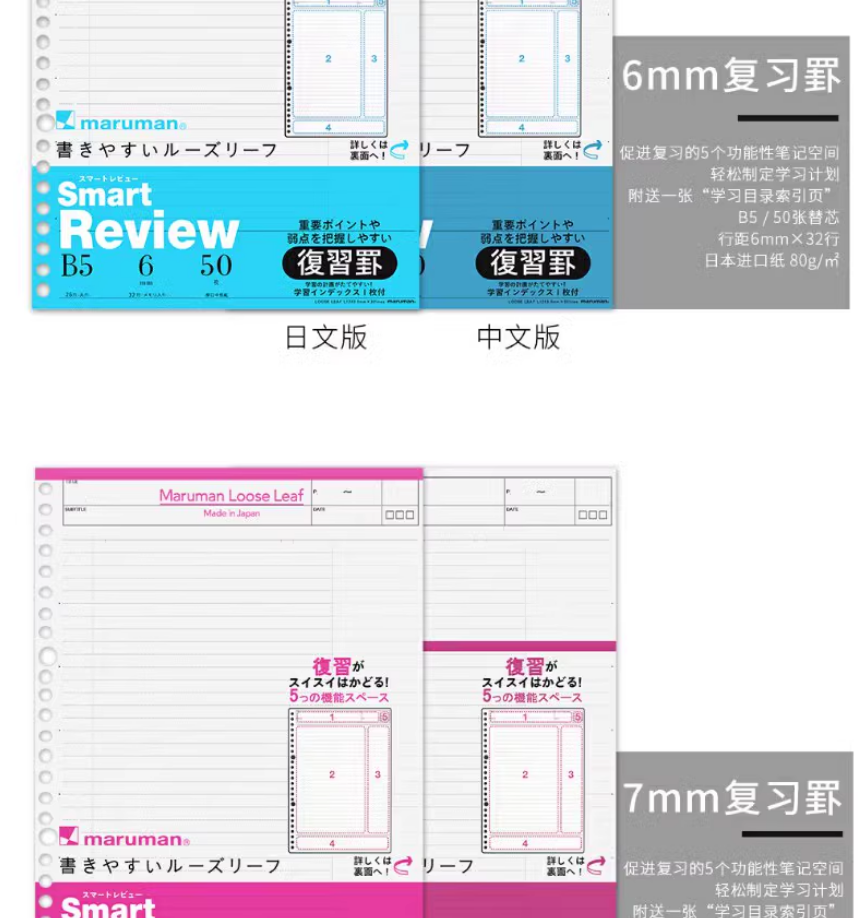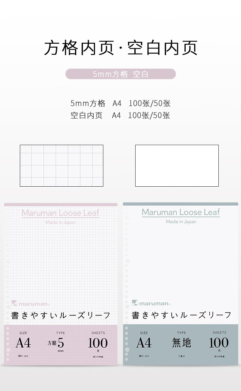 满乐文(MARUMAN)活页纸 笔记本替芯 B5活页本替芯 纸张L1200H_MW