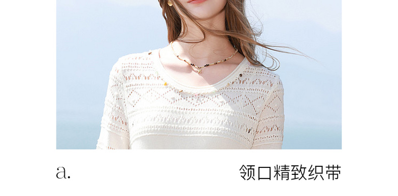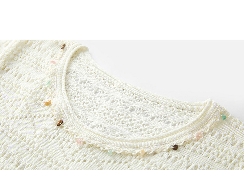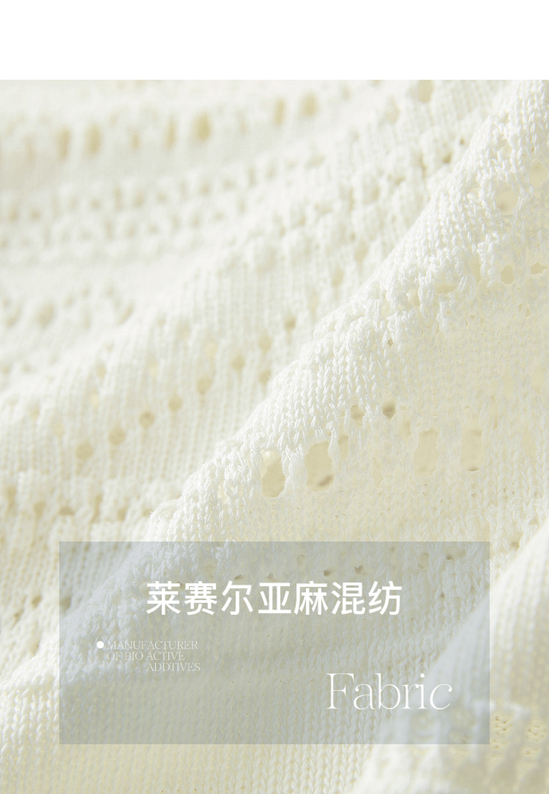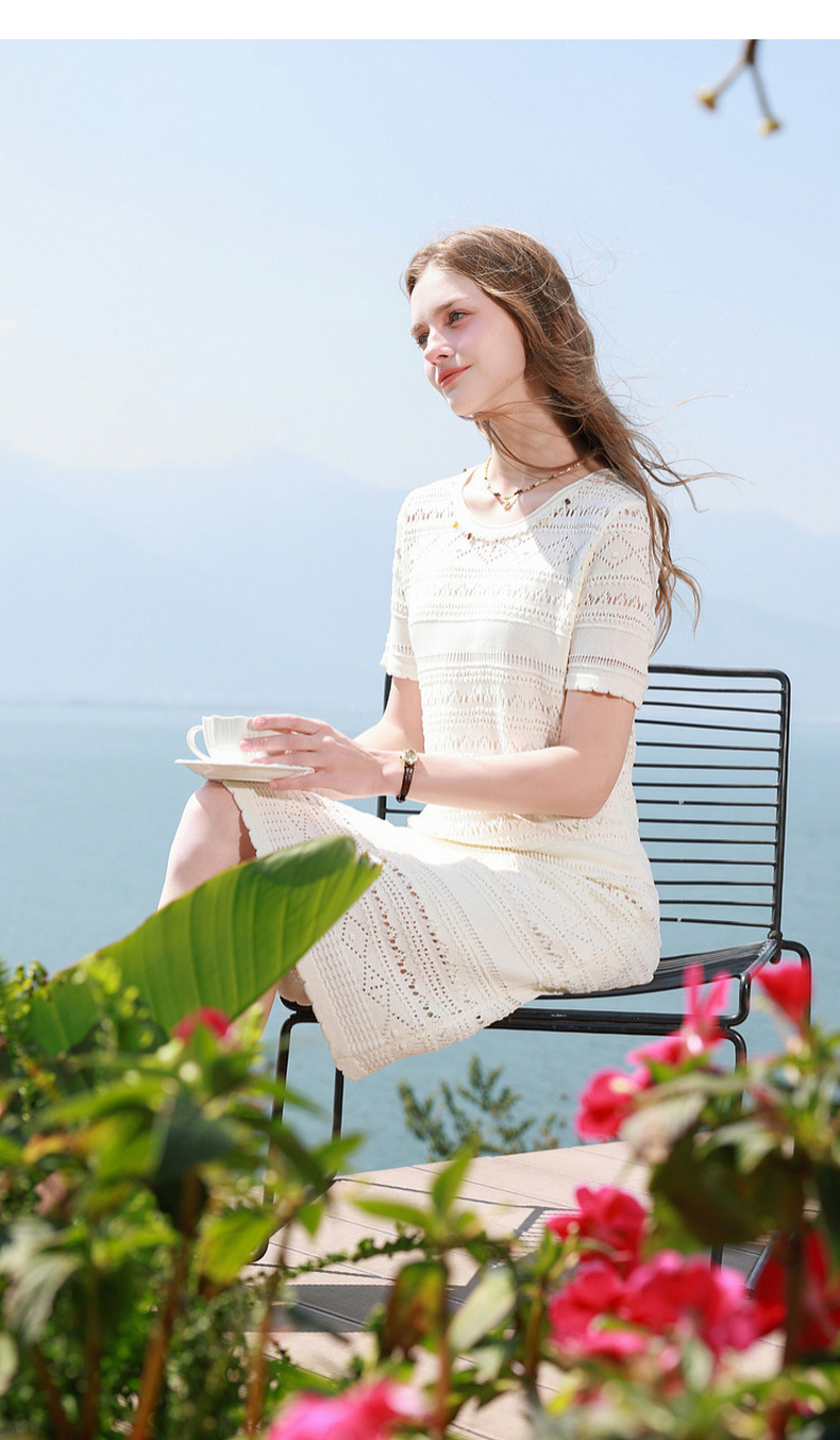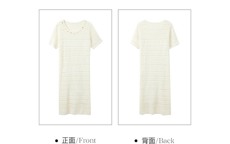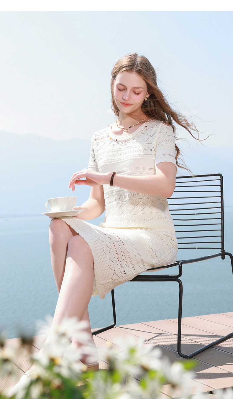 三彩2026夏季新款镂空针织裙圆领短袖毛衫连衣裙M