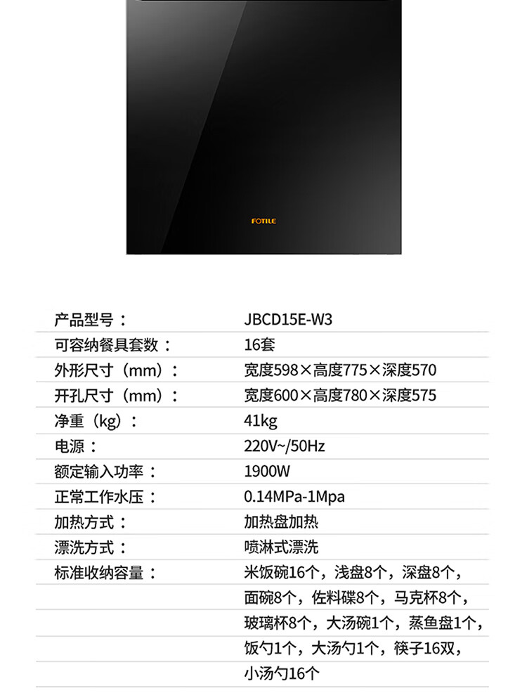 方太/洗碗机/W3/16套大容量 高温除菌 高能气泡洗 一级水效 下层超快洗 嵌入式家用洗碗机