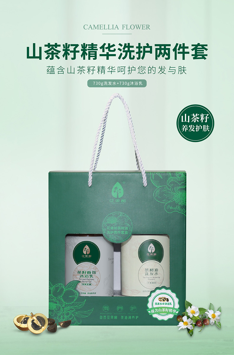花果树茶树油平衡调理洗发水茶籽香氛沐浴乳两件套礼盒装 (洗发水730g+沐浴乳730g)