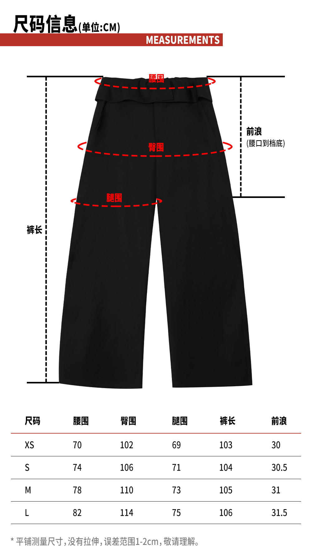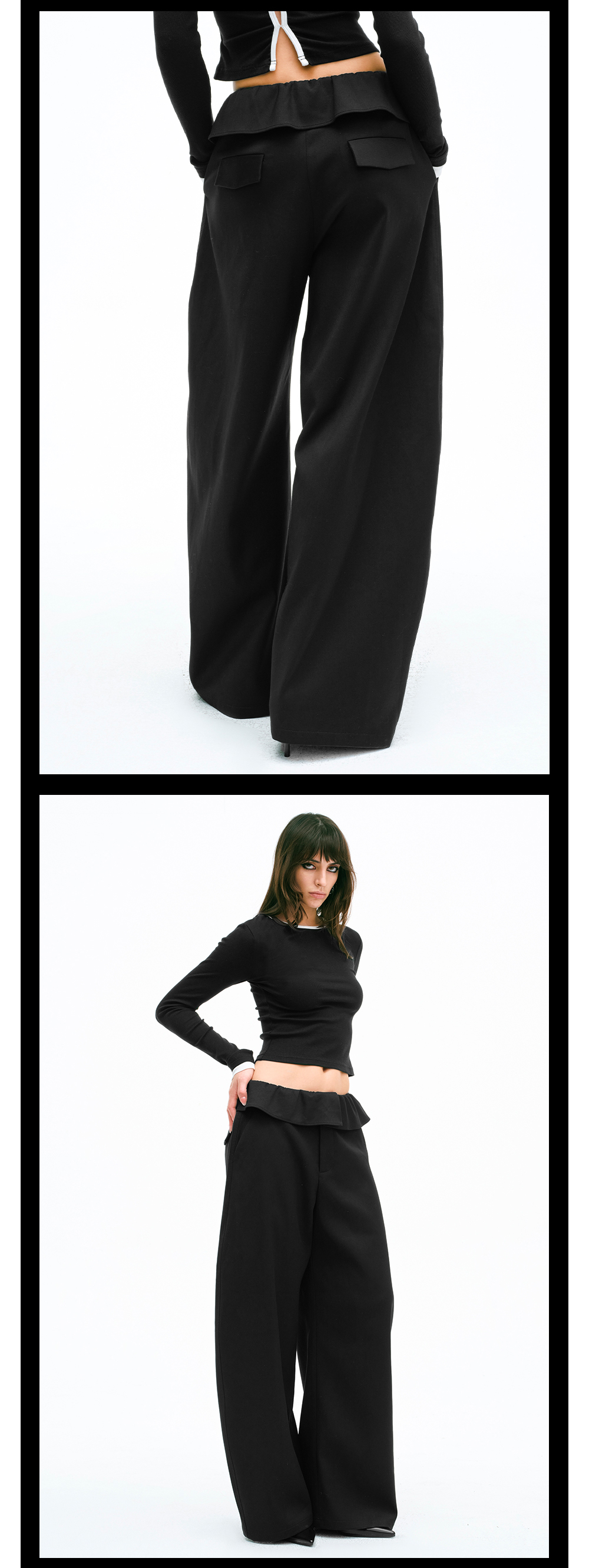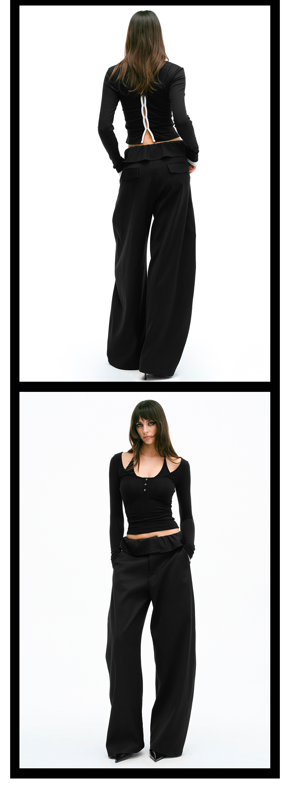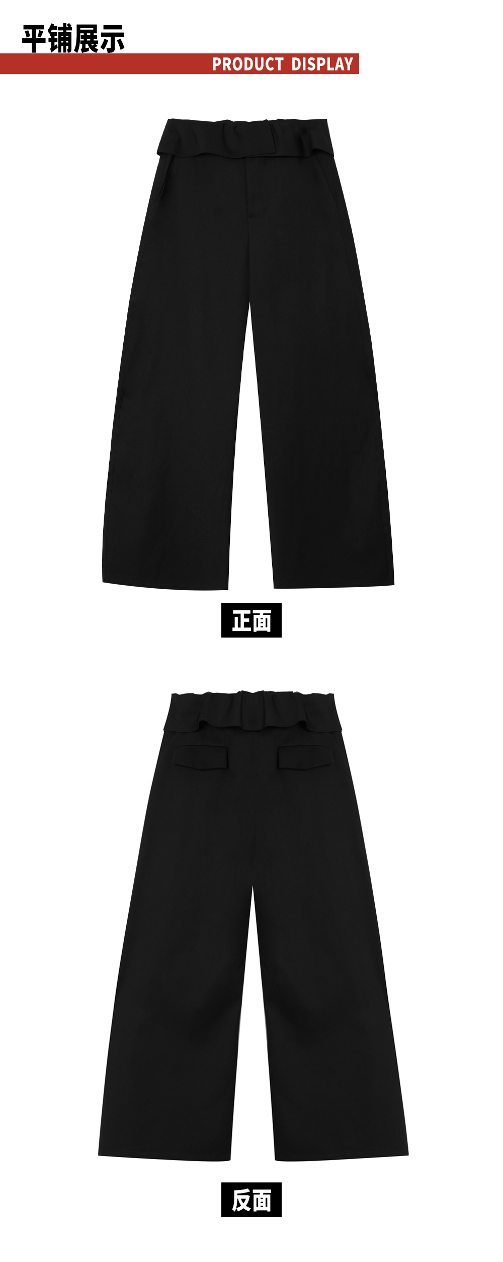 TR她热 韩系欧尼 黑色翻腰设计感显瘦百搭低腰廓形休闲裤长裤