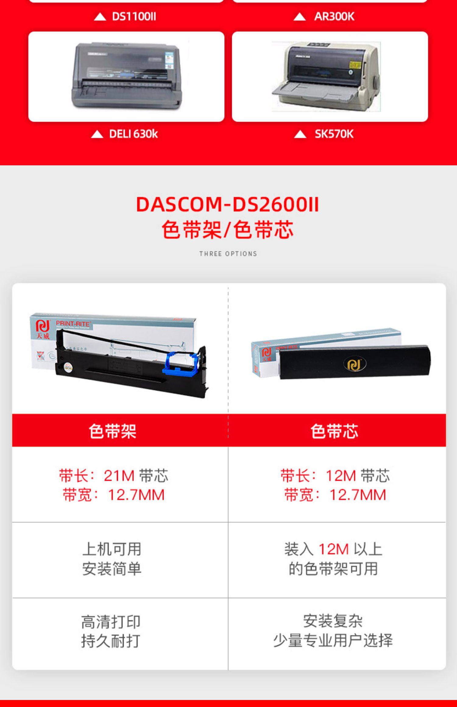 天威 得实80D-3色带 DS2600II色带架 适用DL-630K DSAR580II SK820 1100II+ 1700II+ 620 660 550 300K 1870带架