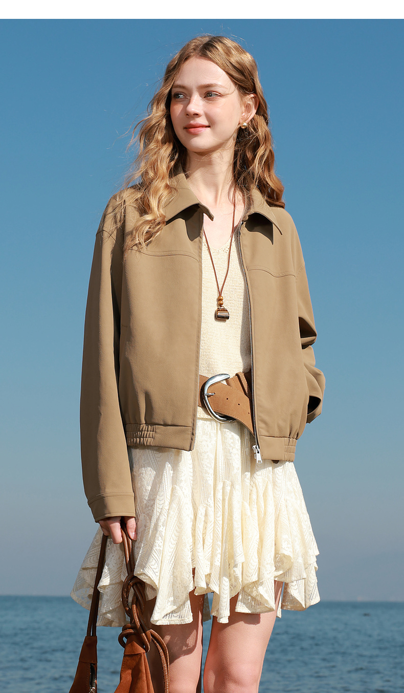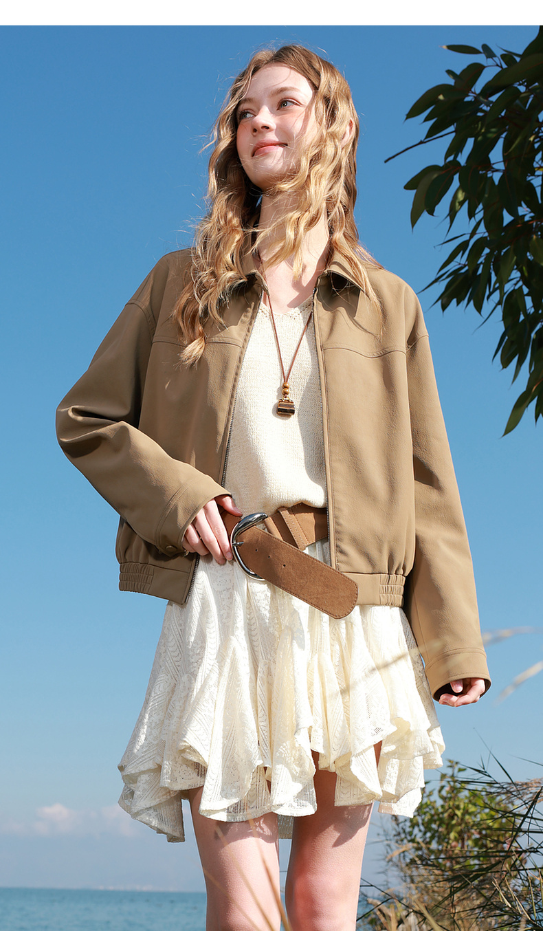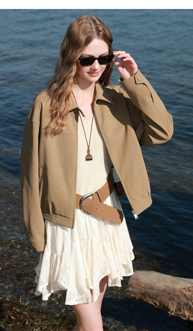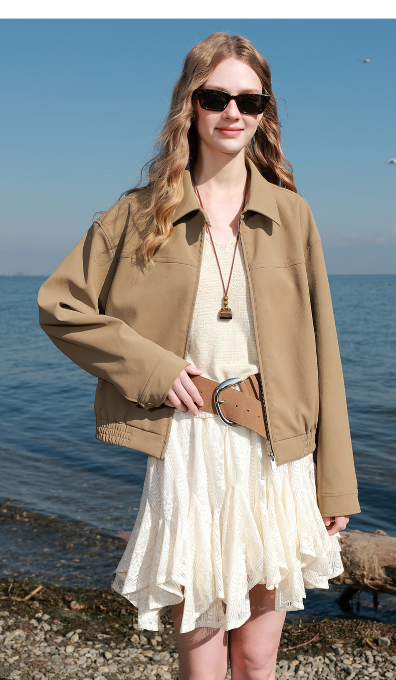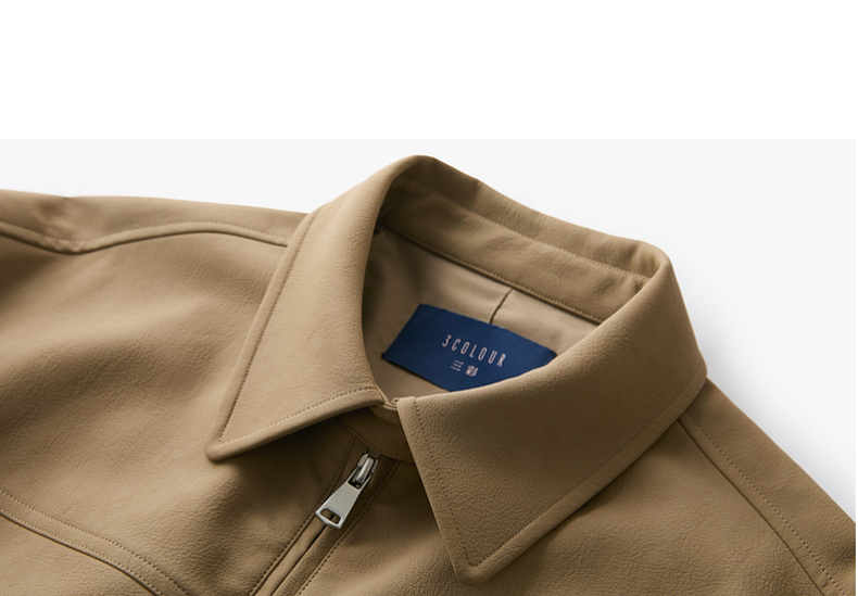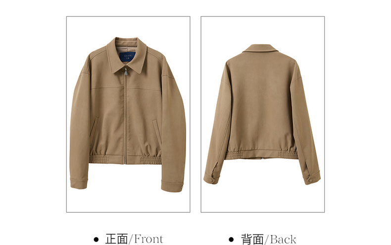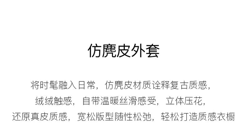 三彩2026春季新款绒感仿麂皮PU外套翻领夹克宽松落肩袖开衫M
