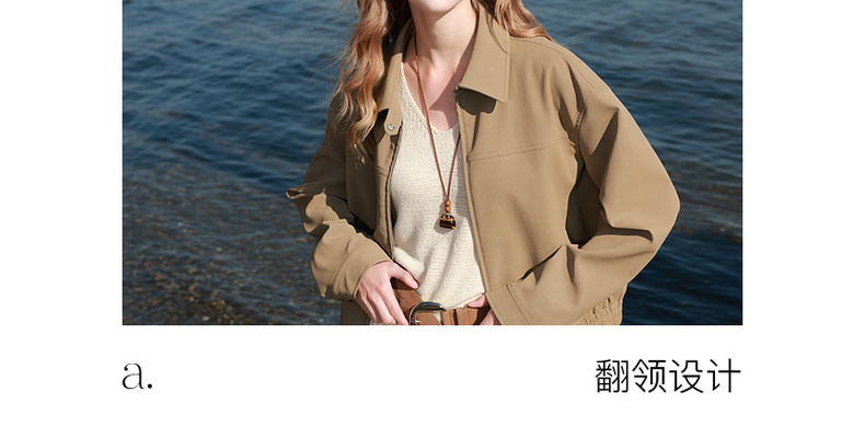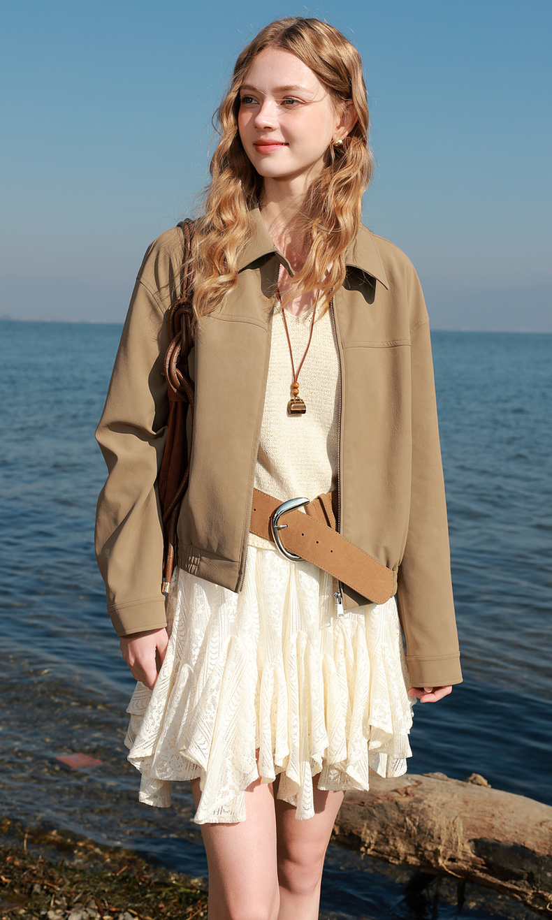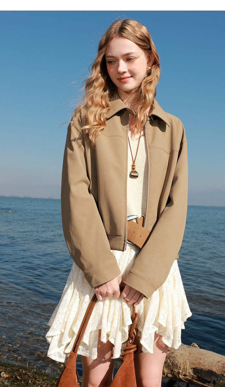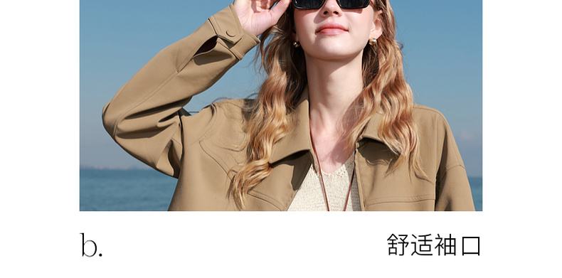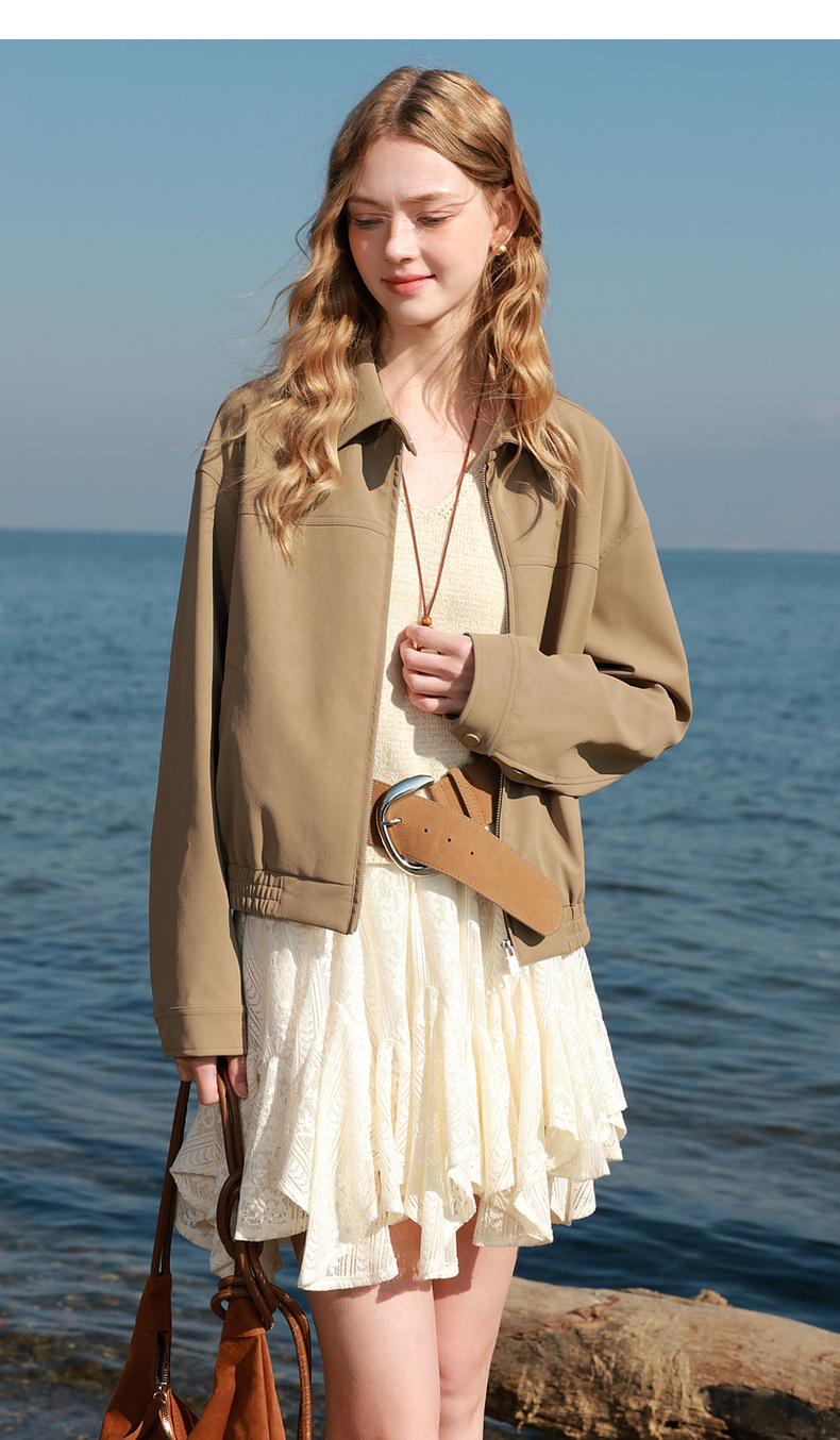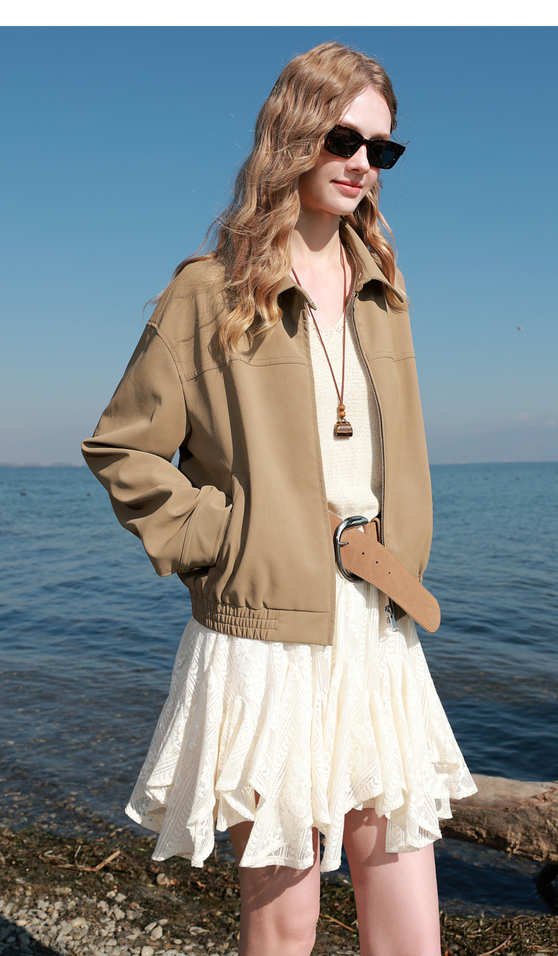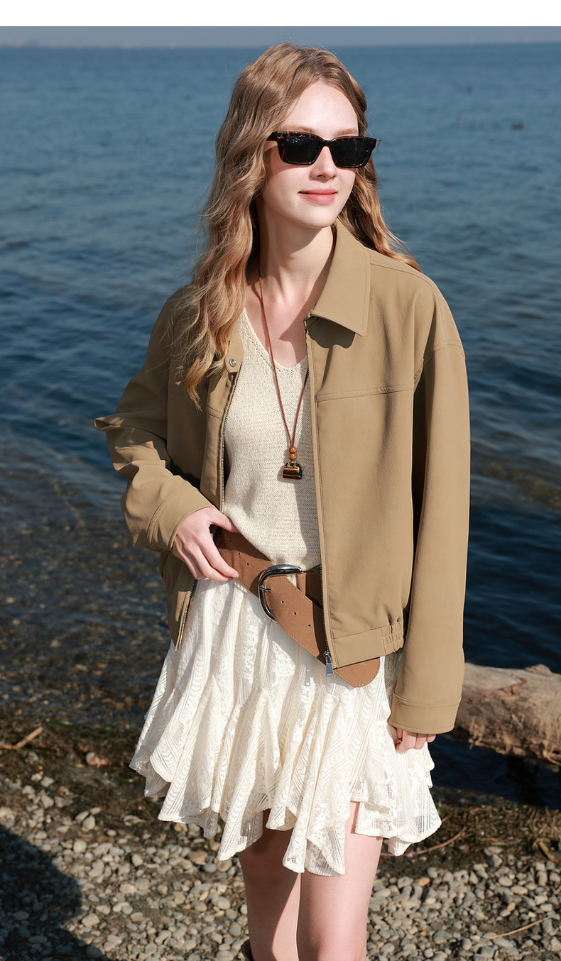 三彩2026春季新款绒感仿麂皮PU外套翻领夹克宽松落肩袖开衫M