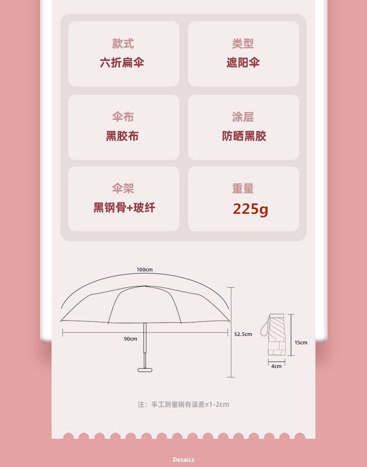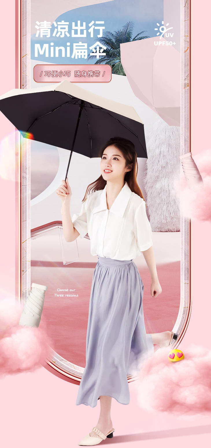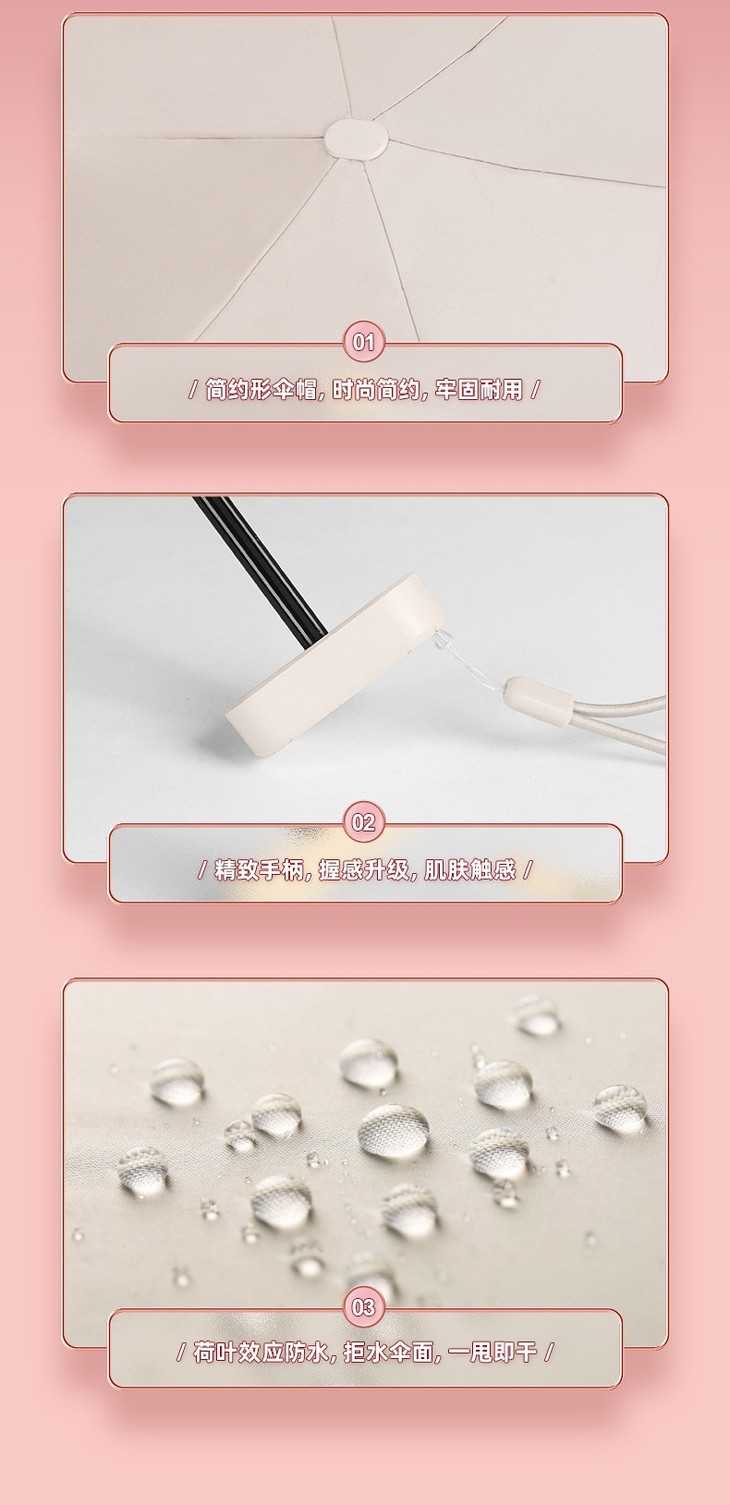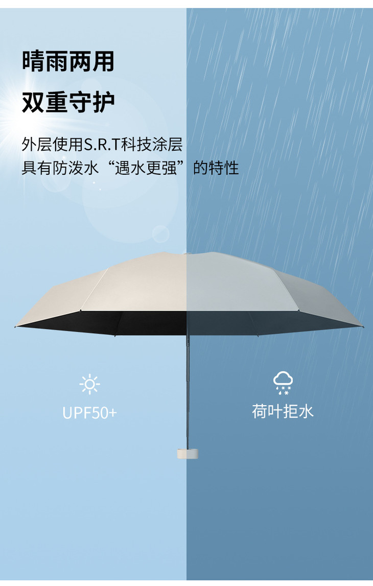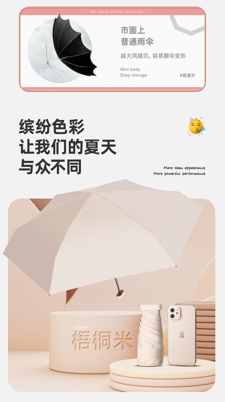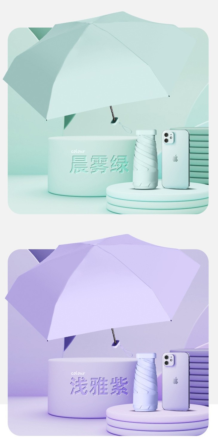迷你六折全遮光黑胶防晒伞,袖珍口袋遮阳伞扁伞,晴雨两用太阳伞! +配套伞盒