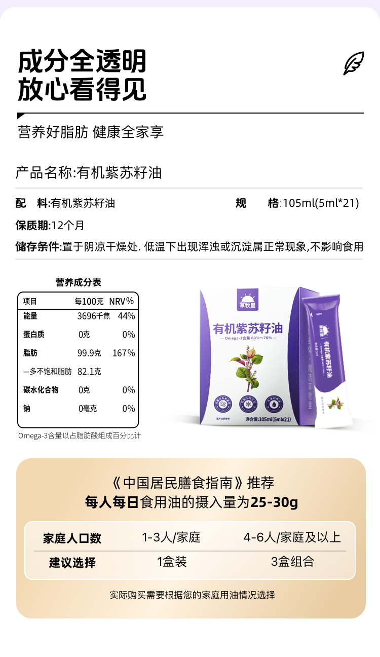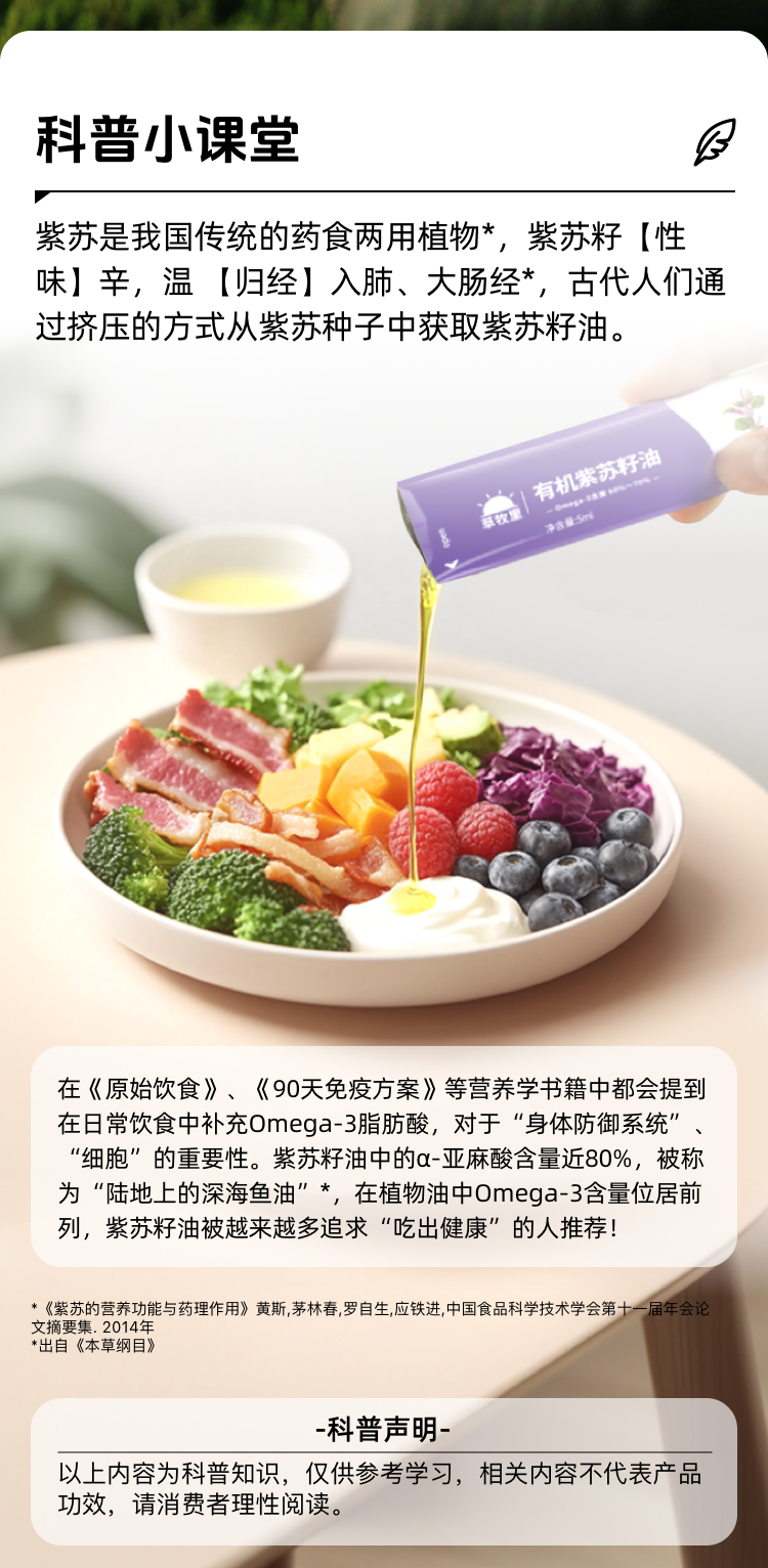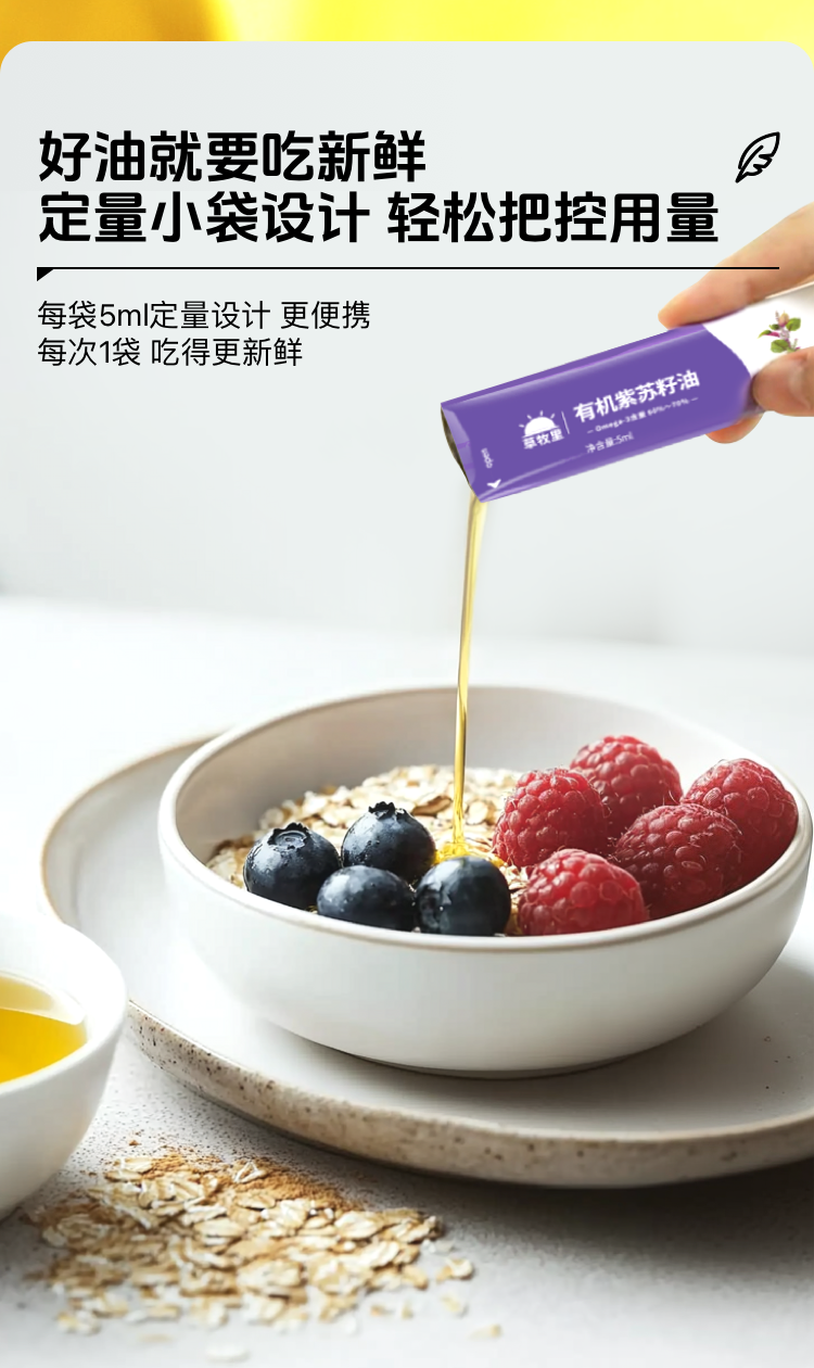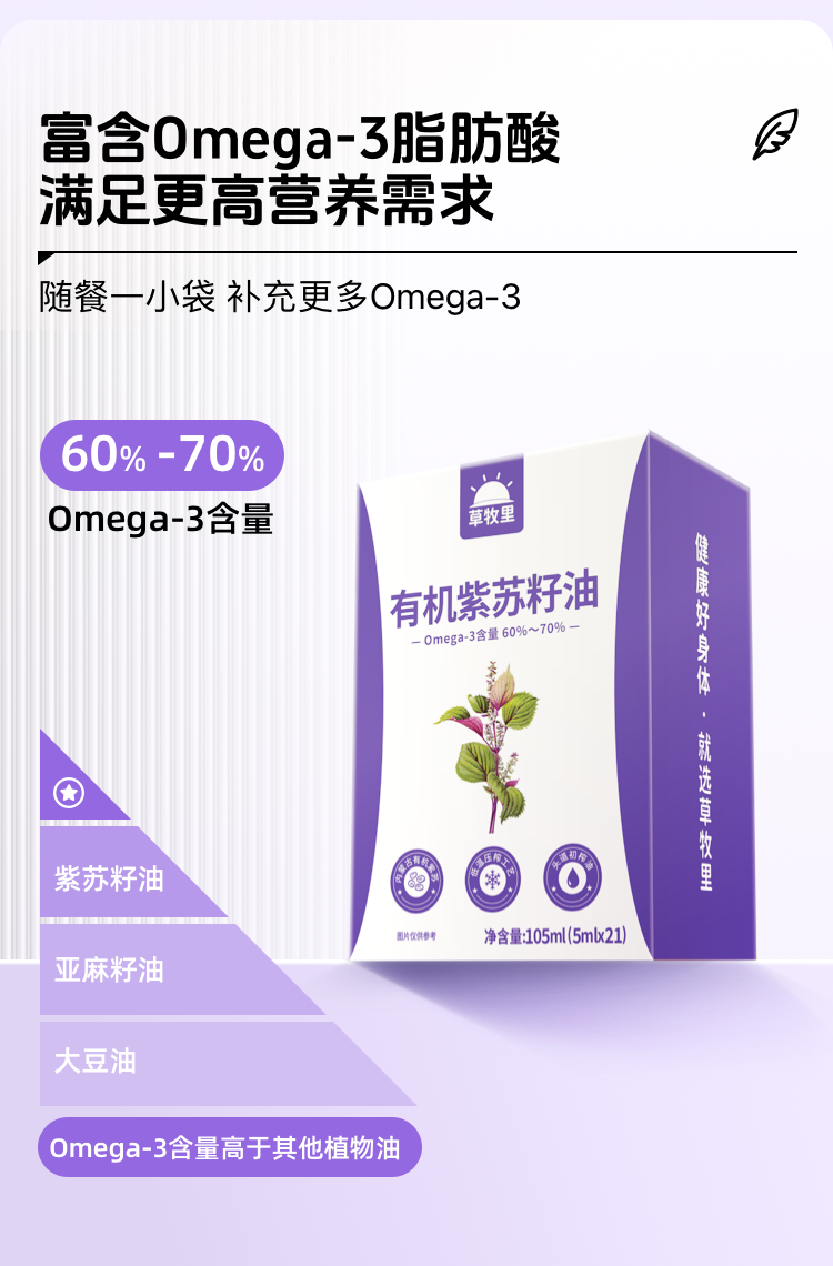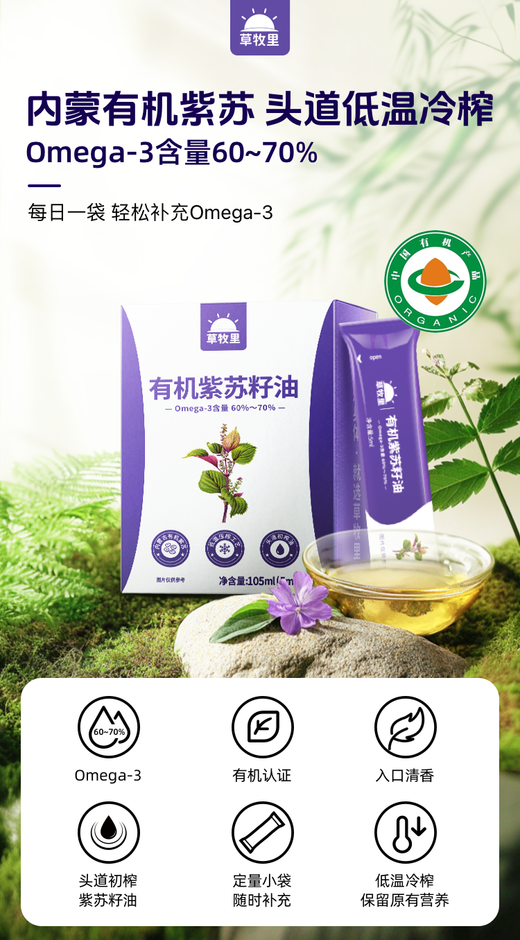 【每日一袋】草牧里 有机紫苏籽油 5ml*21条/盒 内蒙有机紫苏头道低温冷榨