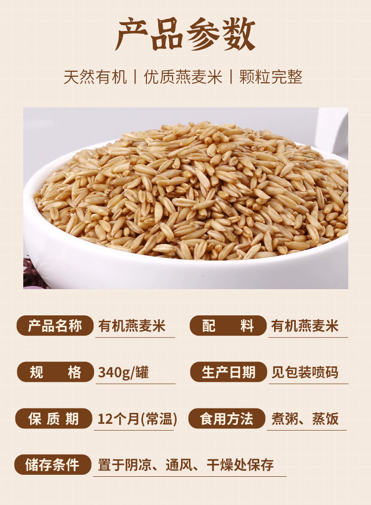 【时芸汇】有机燕麦米340g*2 早餐生燕麦仁五谷杂粮