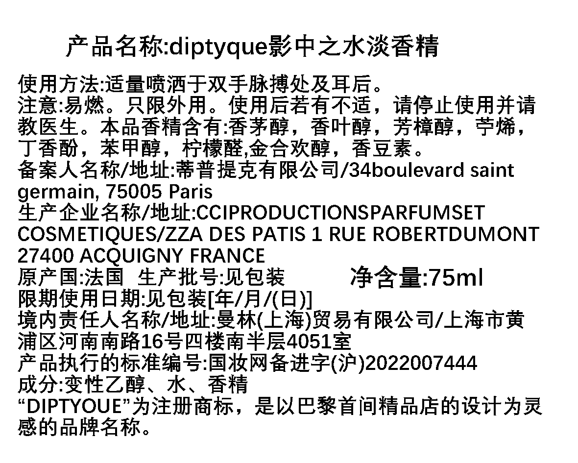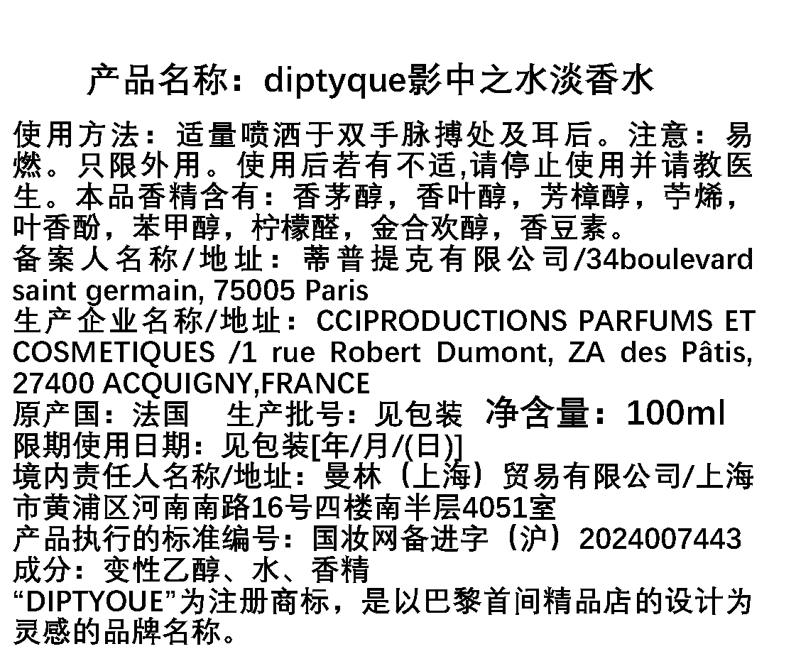 Diptyque蒂普(菩)提克 影中之水香水