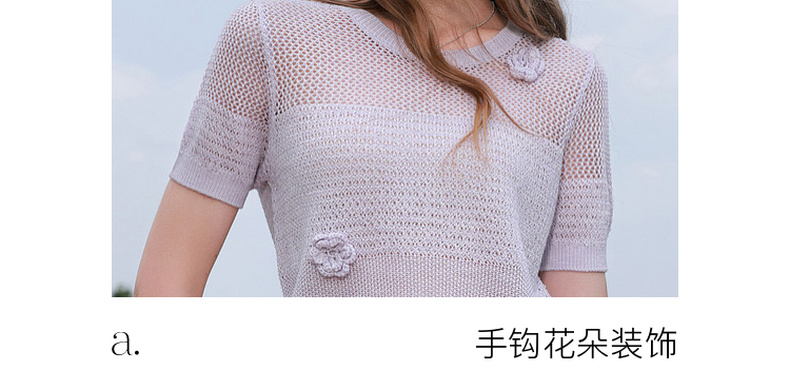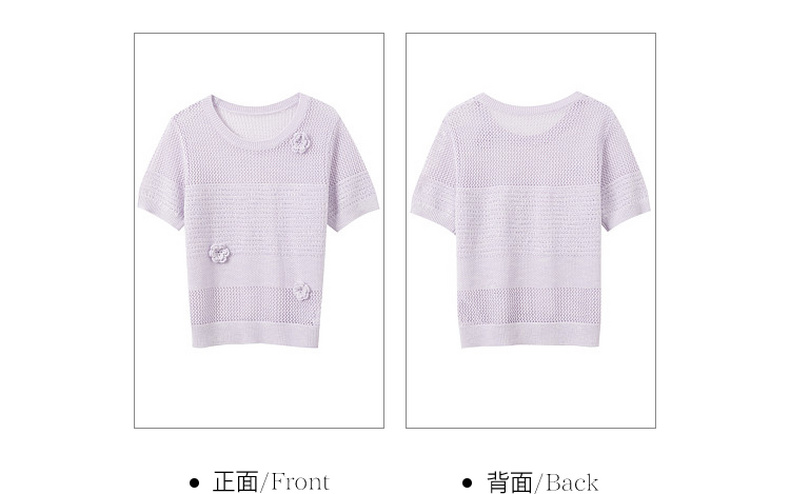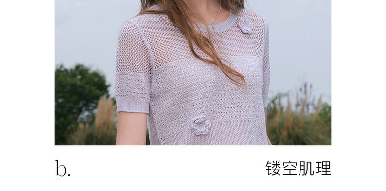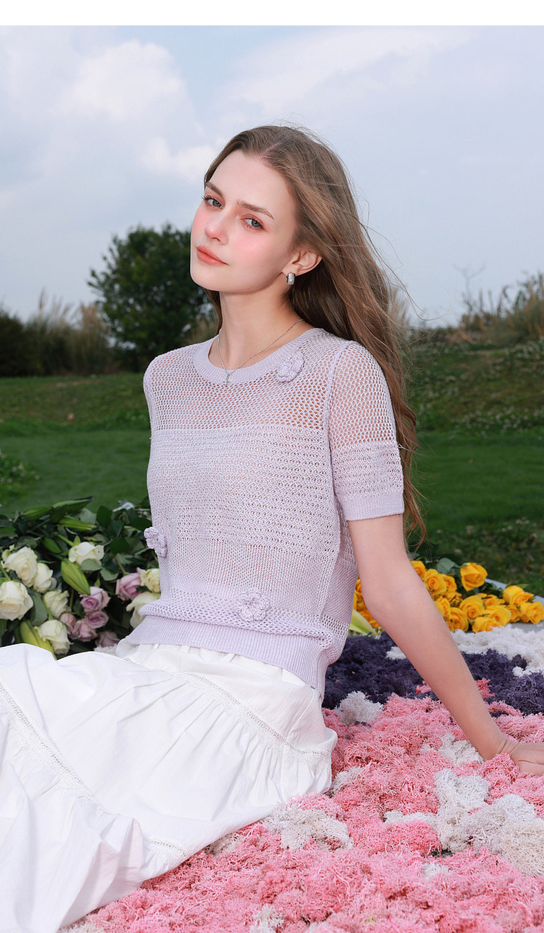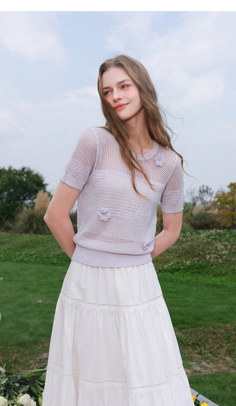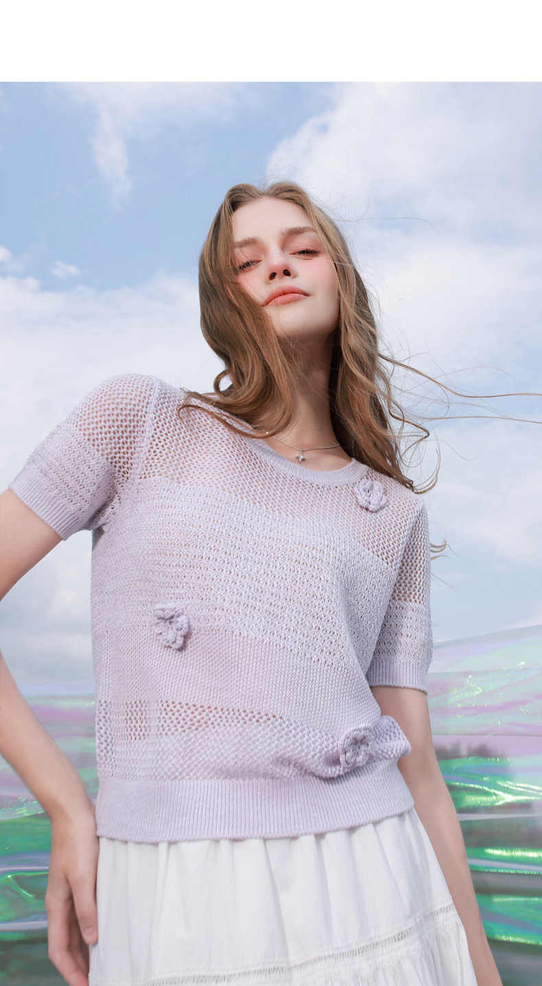 【莱赛尔】三彩2026夏季新款短袖花朵针织衫镂空肌理感套头上衣M
