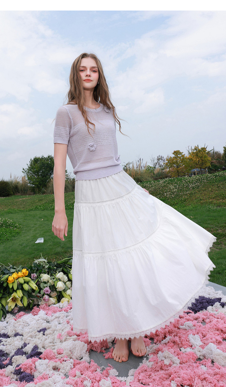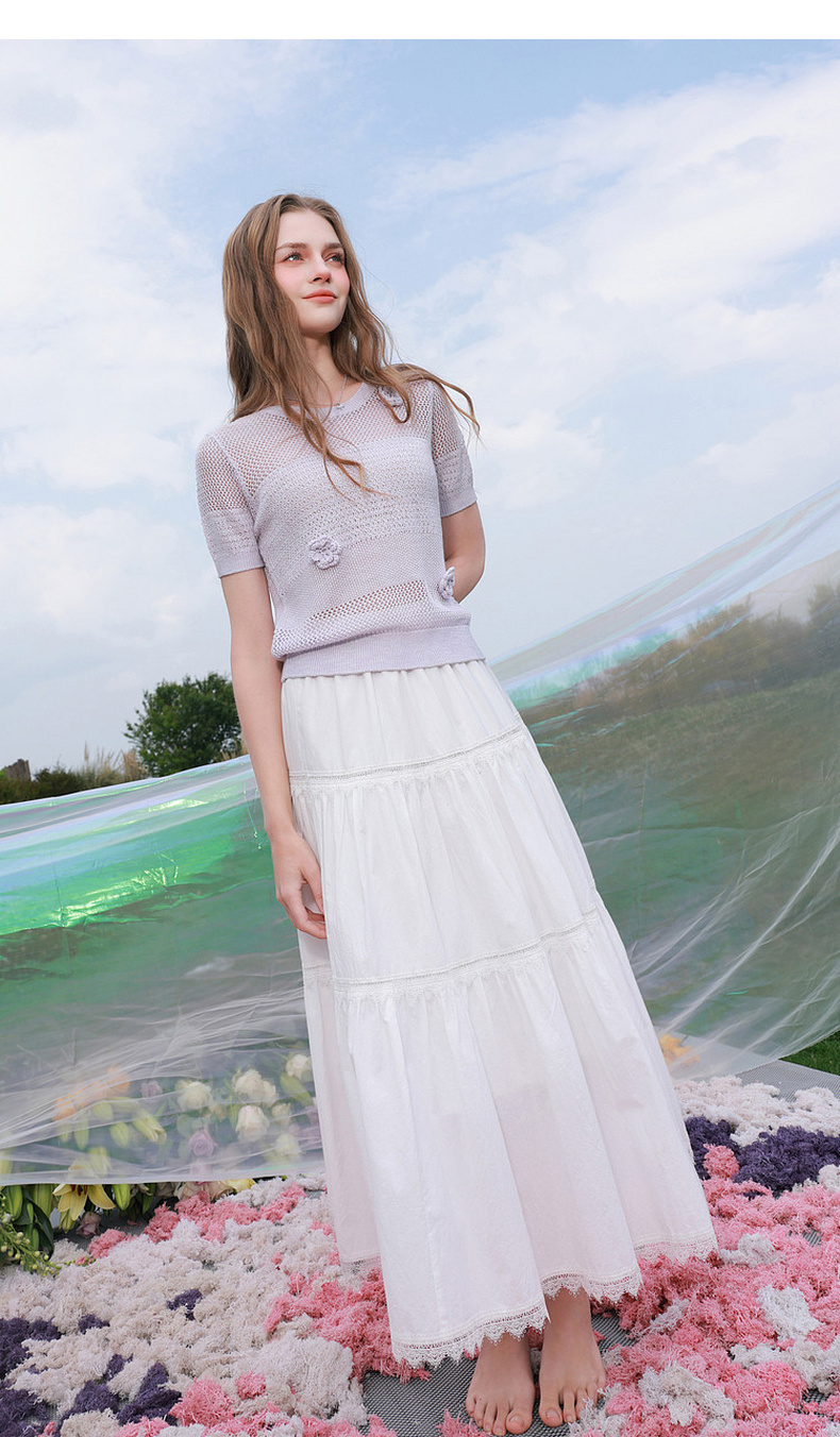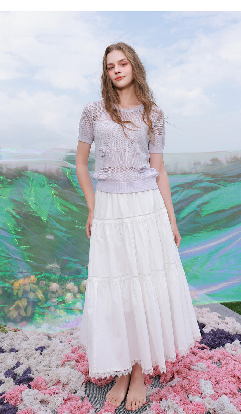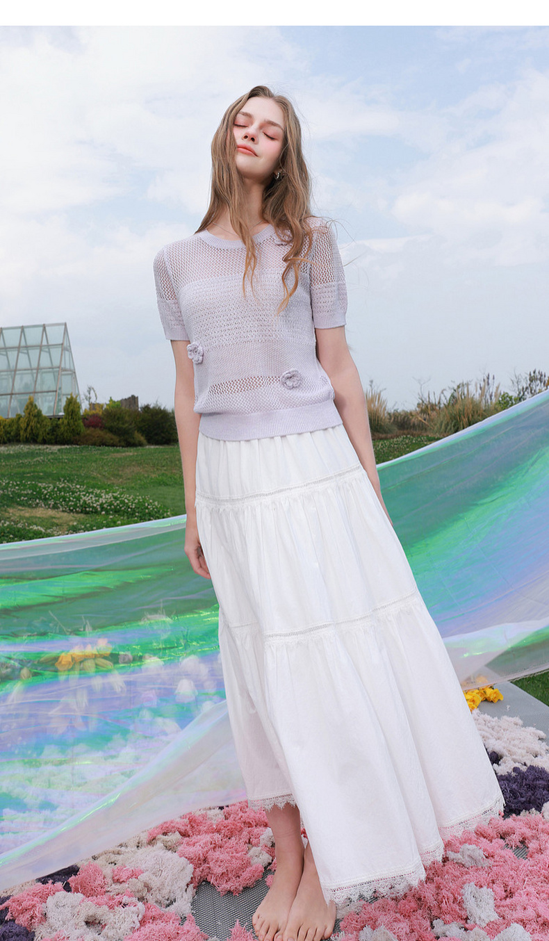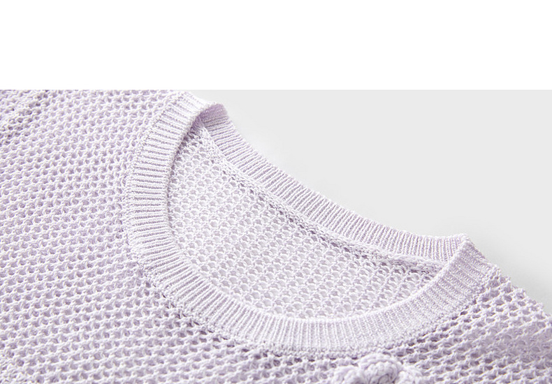 【莱赛尔】三彩2026夏季新款短袖花朵针织衫镂空肌理感套头上衣M