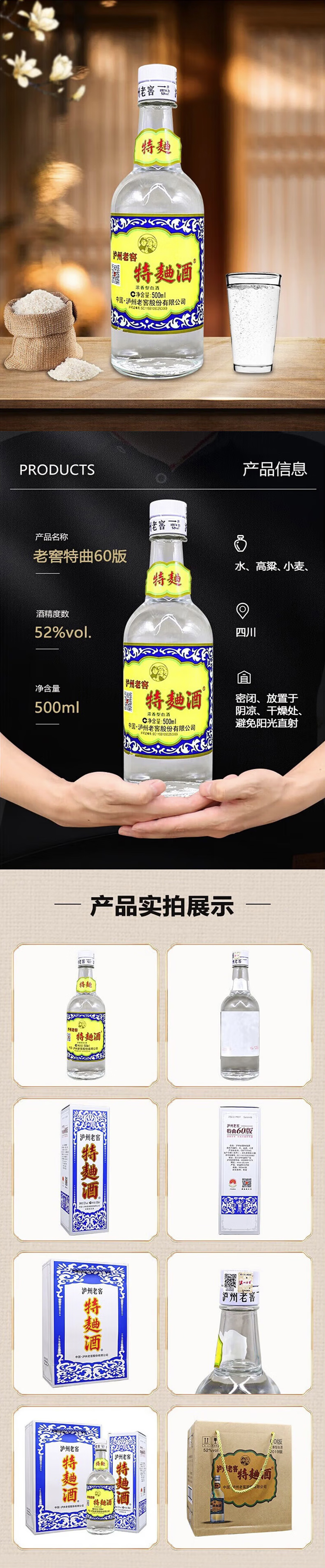【单瓶475】泸州老窖特曲 52度浓香型高档白酒 特曲60版 500ml单瓶
