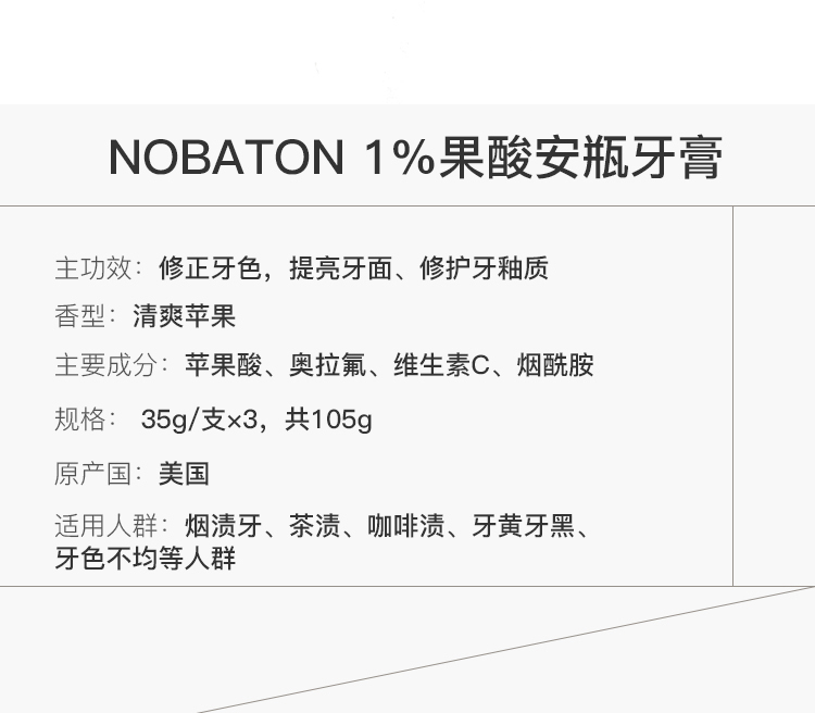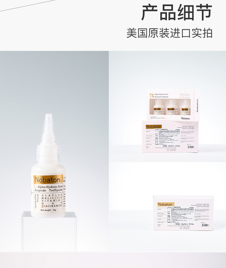 Nobaton诺巴顿农场1%果酸安瓶牙膏35g×3支