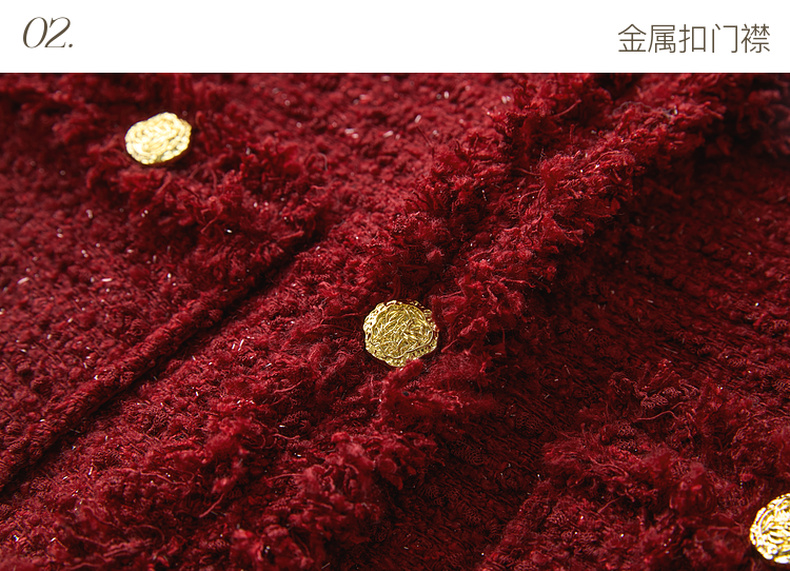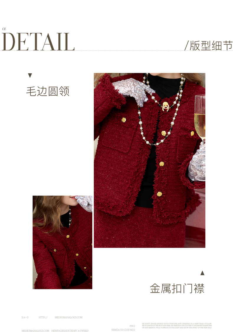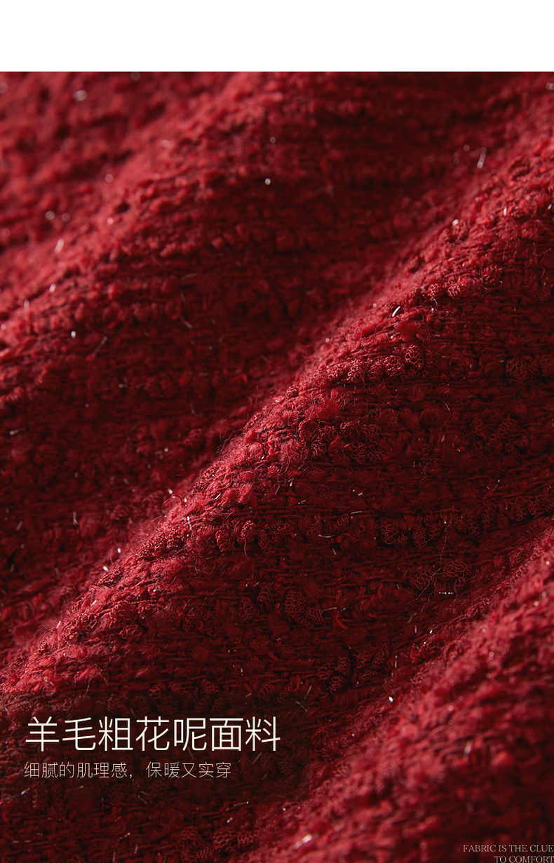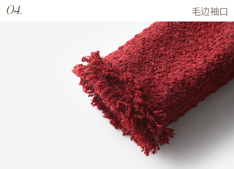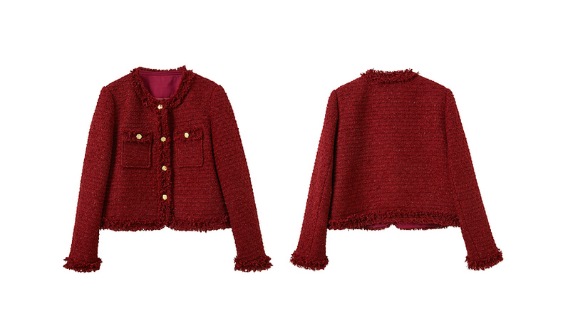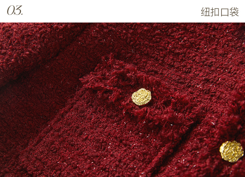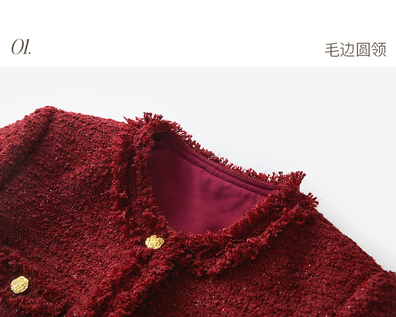三彩2026春季新款轻奢小香外套粗花呢毛边短款圆领开衫单排扣M