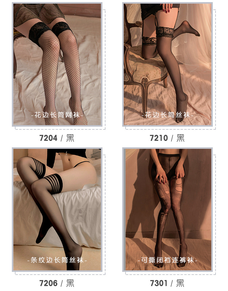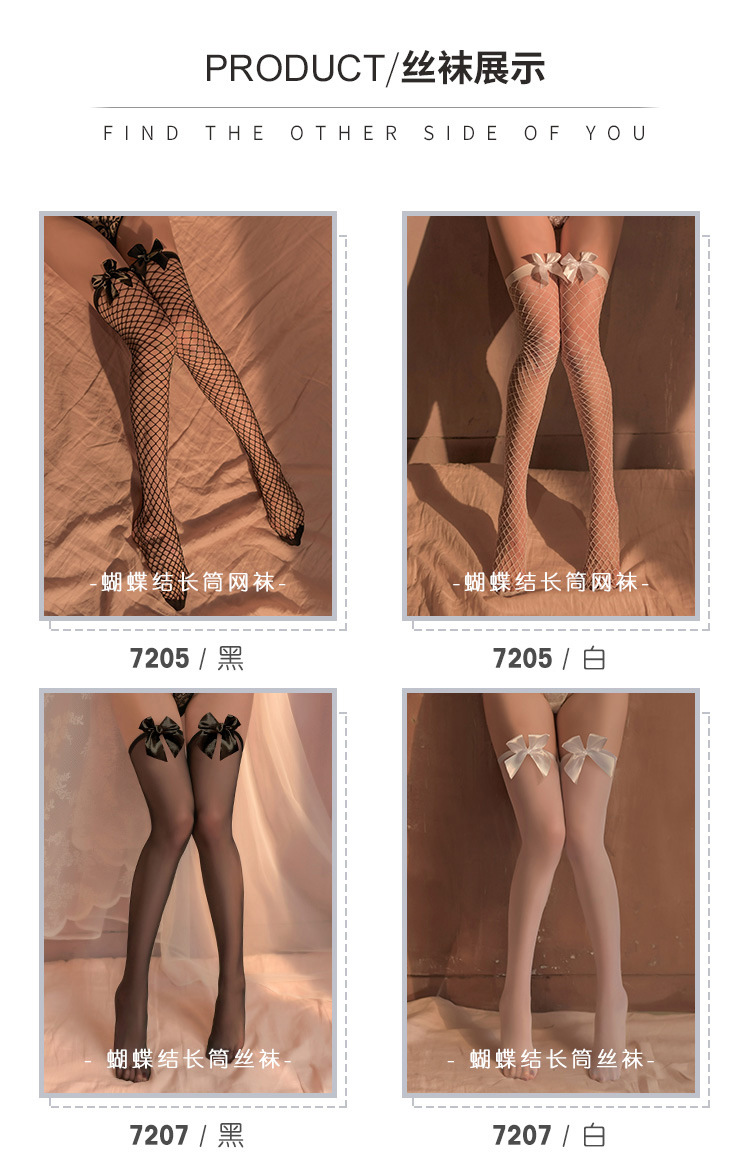 【情趣内衣】霏慕软萌蝴蝶结长筒网袜/甜美蝴蝶结长筒丝袜7205/7207
