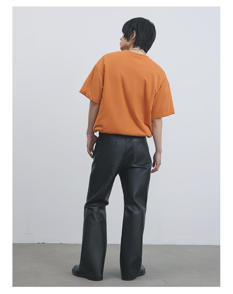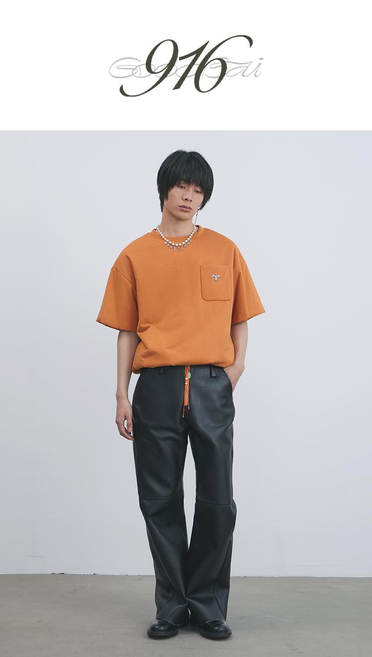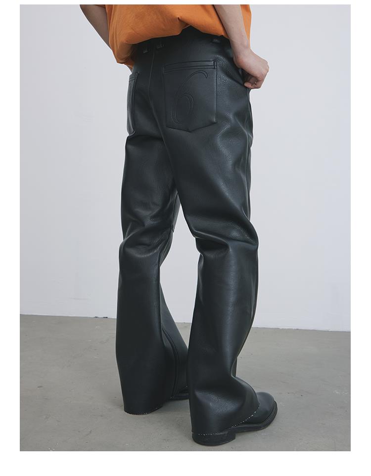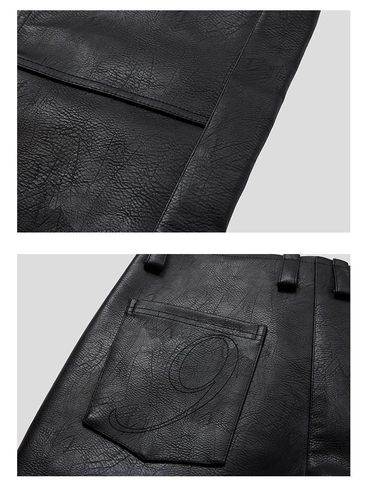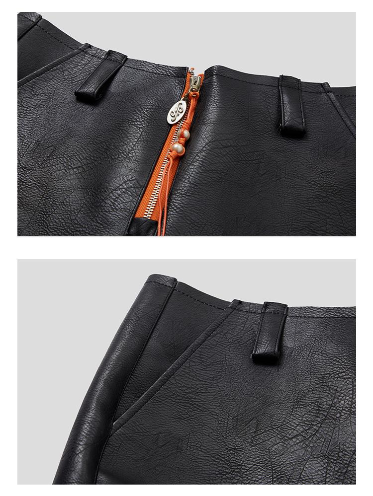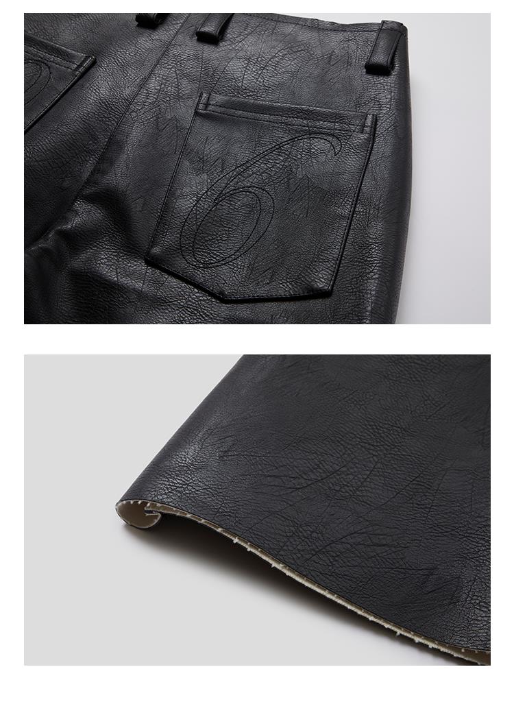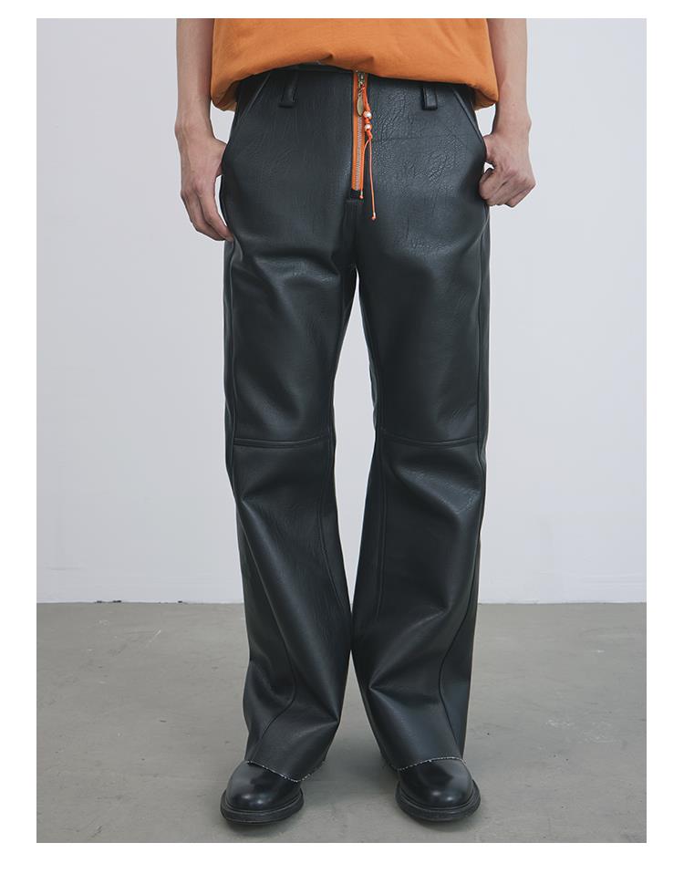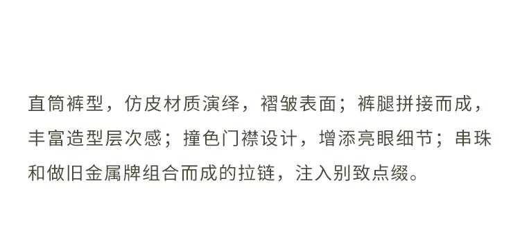 GOODBAI 916 刺绣拼接撞色串珠拉链直筒仿皮休闲裤