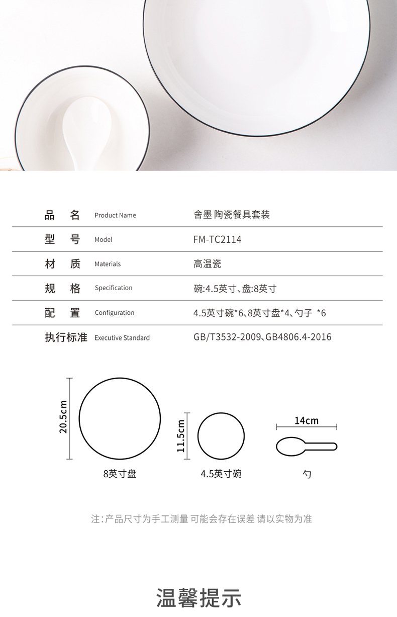 菲米生活舍墨陶瓷餐具套装碗蝶盘FM-TC2114