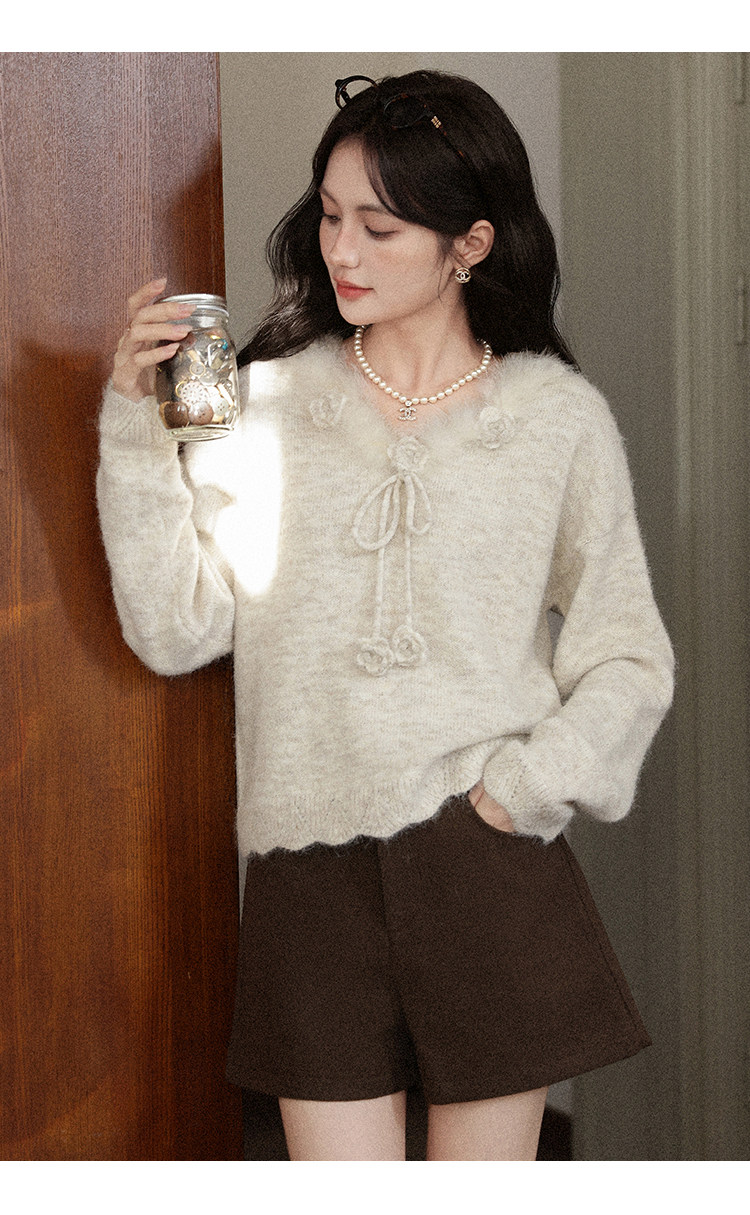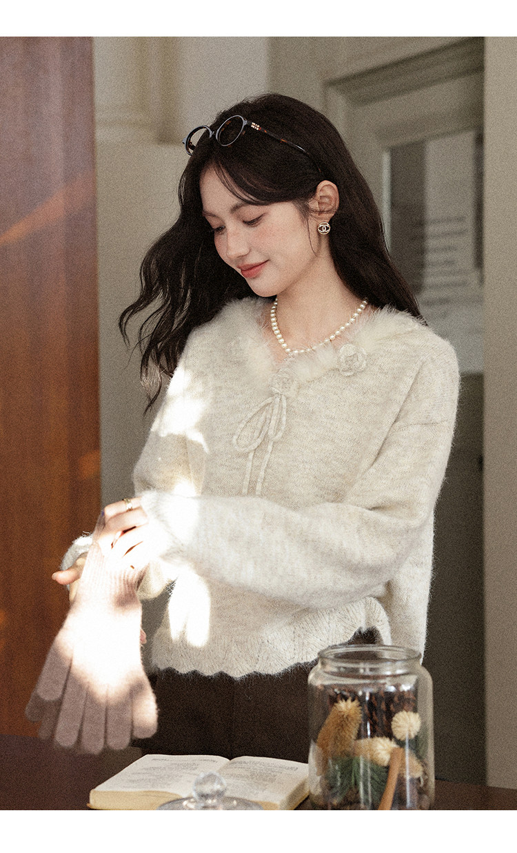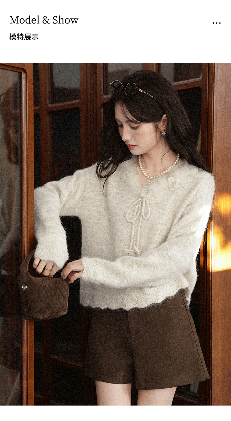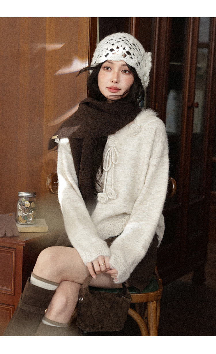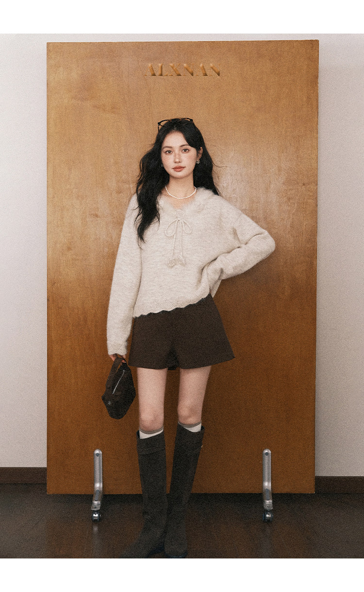 鹿向南「少女礼盒」秋冬新款高级燕麦色针织衫上衣慵懒羊毛毛衣女