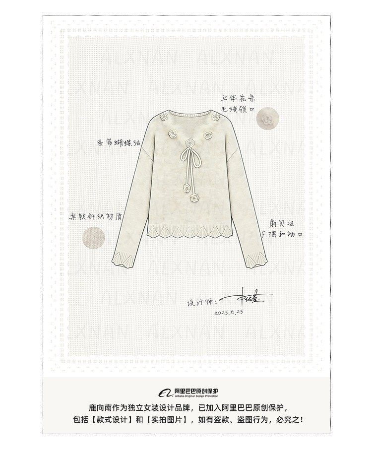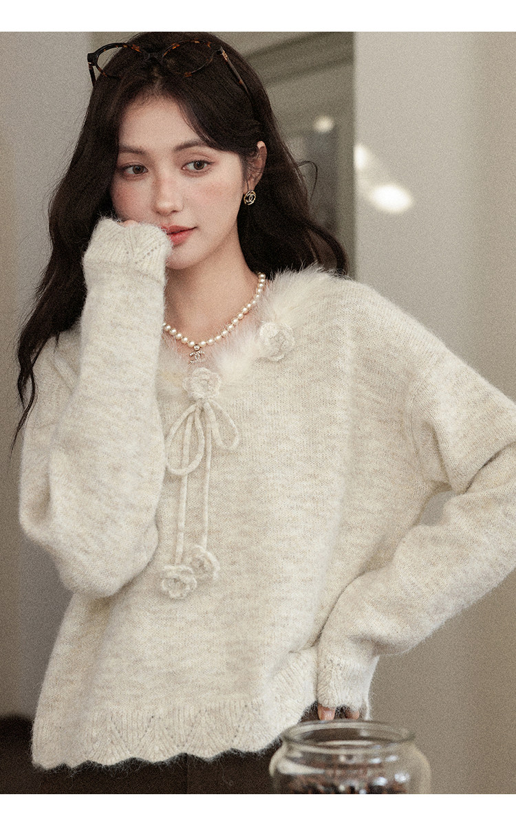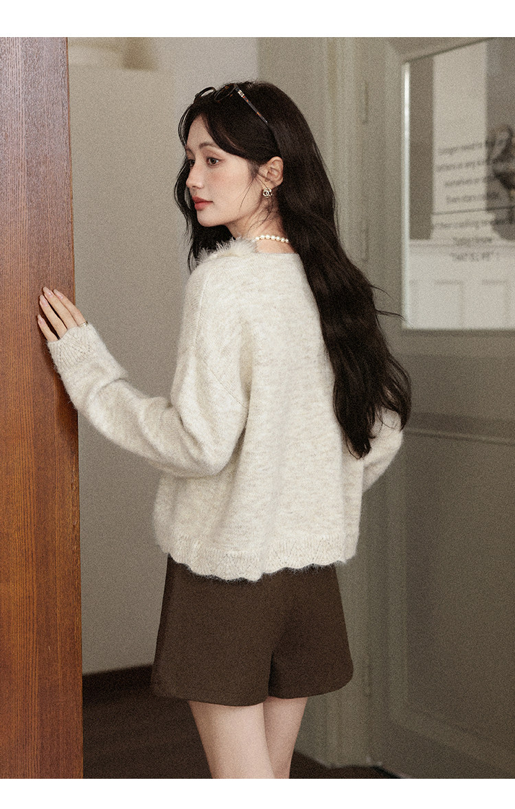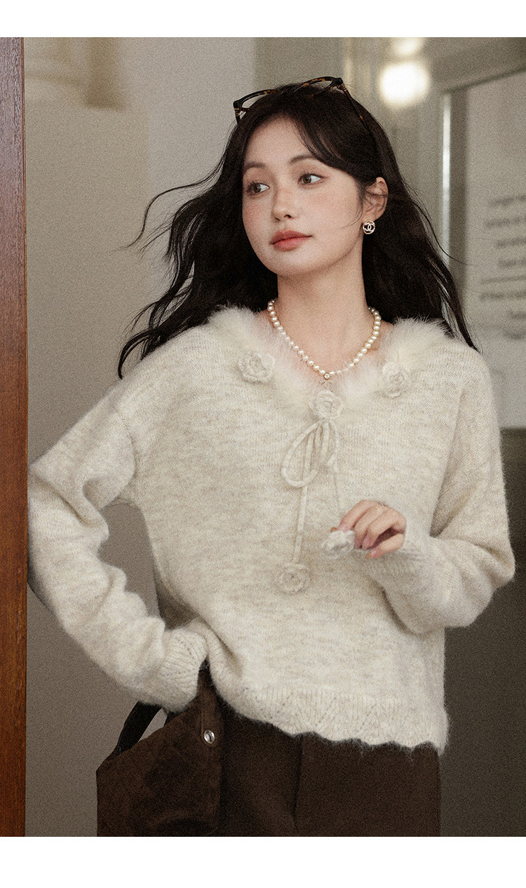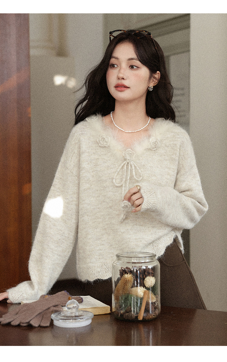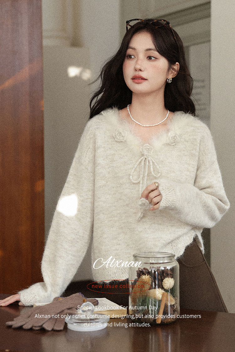 鹿向南「少女礼盒」秋冬新款高级燕麦色针织衫上衣慵懒羊毛毛衣女