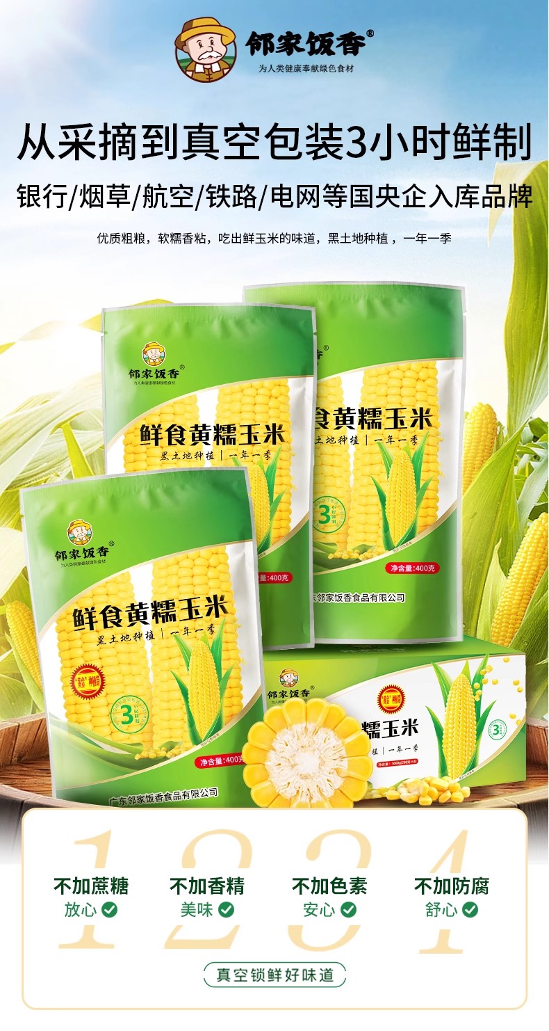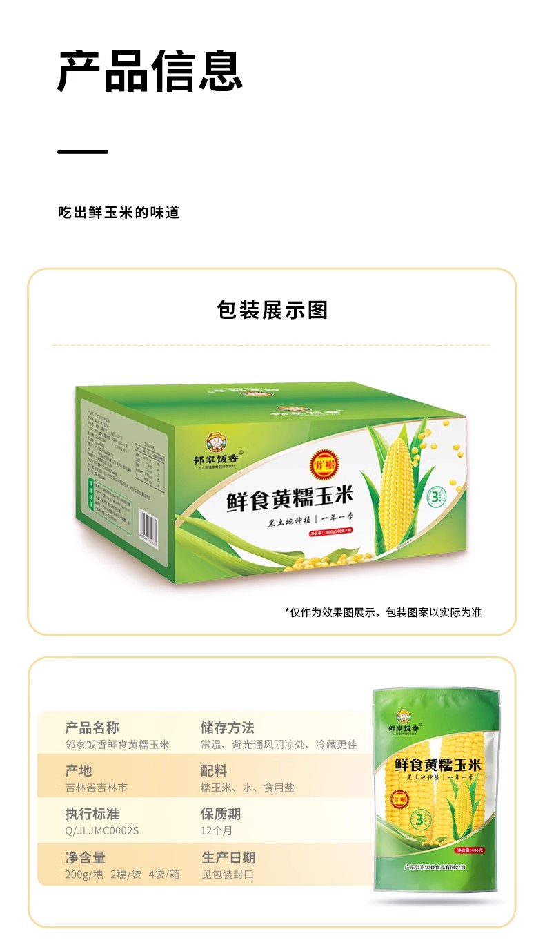 【邻家饭香】东北鲜食黄糯玉米 1600g(8穗/盒) LJFX72-Y