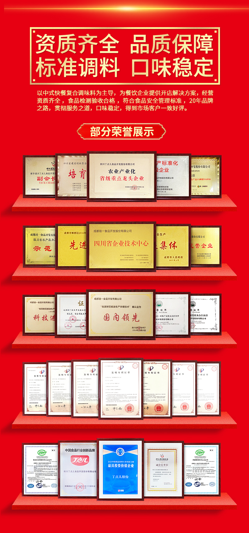 四川丁点儿食品开发股份有限公司,是集川菜调味料研发、生产、销售、服务为一体的现代化企业,专注为餐饮客户提供川菜调味解决方案。公司成立至今,服务了超百万家的餐饮门店以及连锁品牌。
