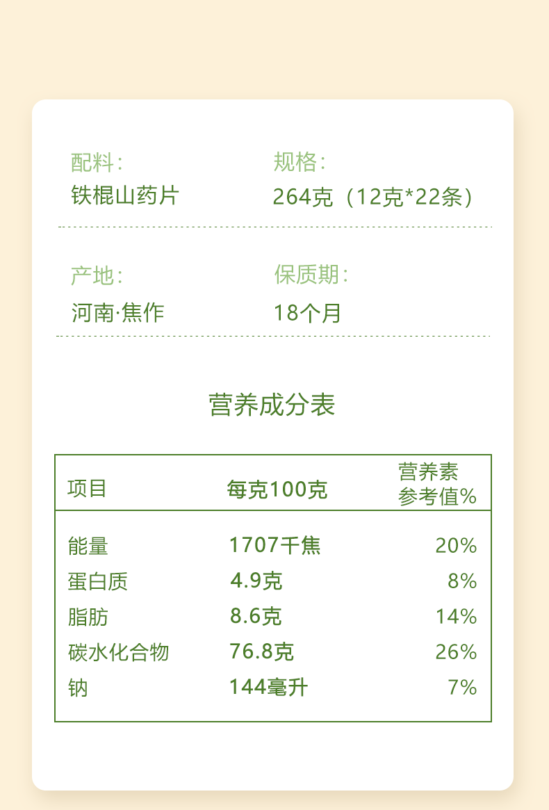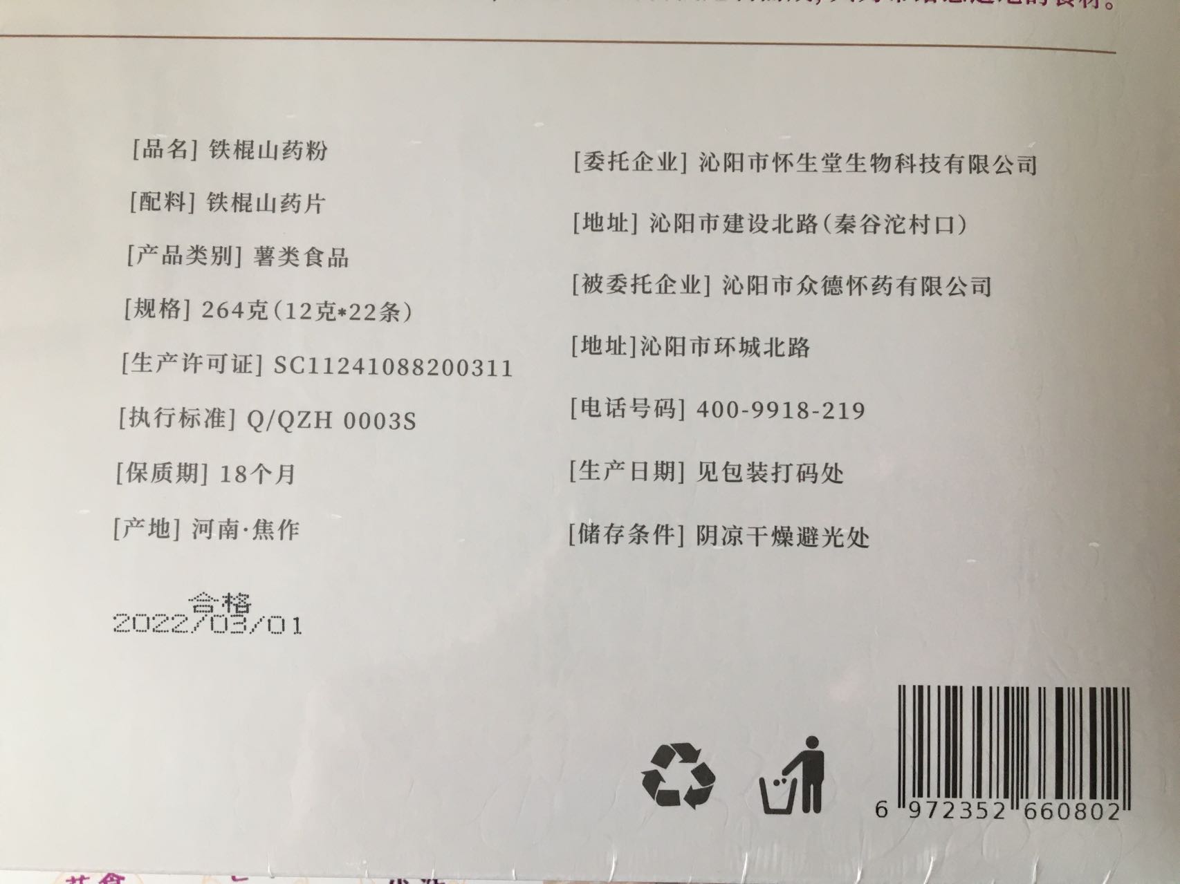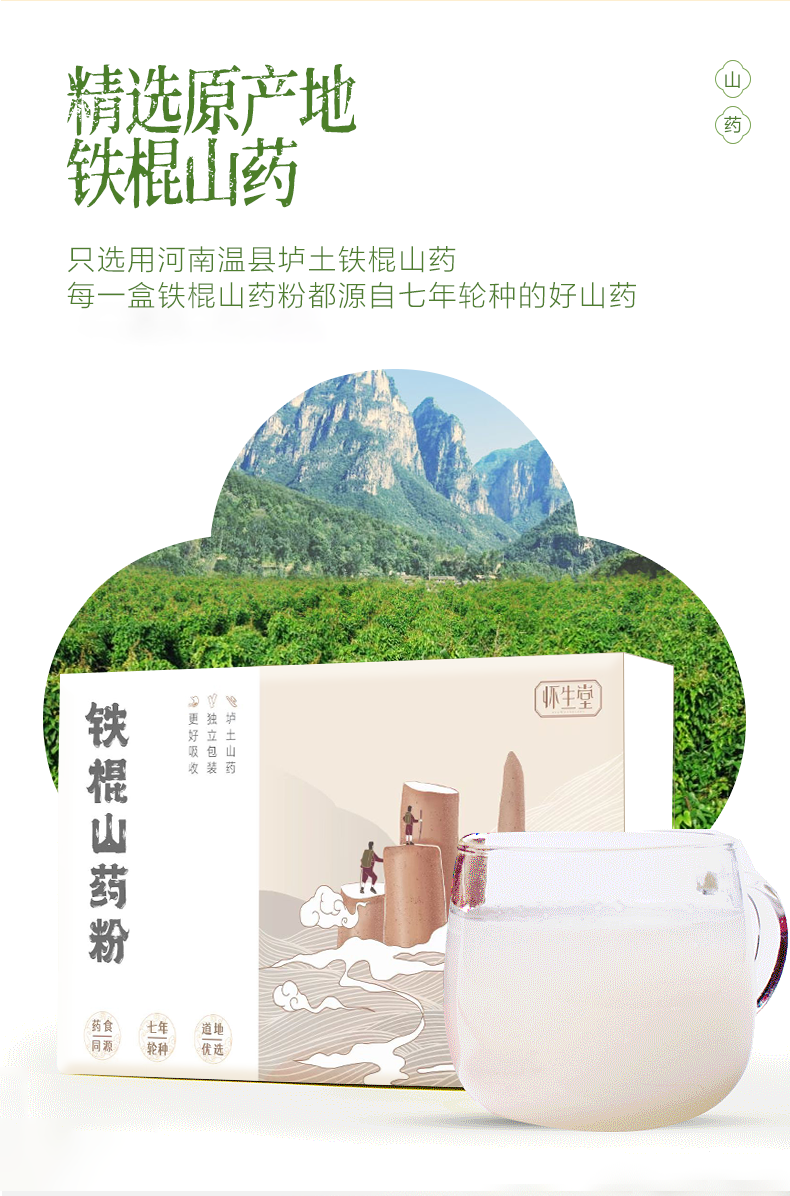 【2024怀生堂】河南温县垆土铁棍山药粉264g/盒,22条装!