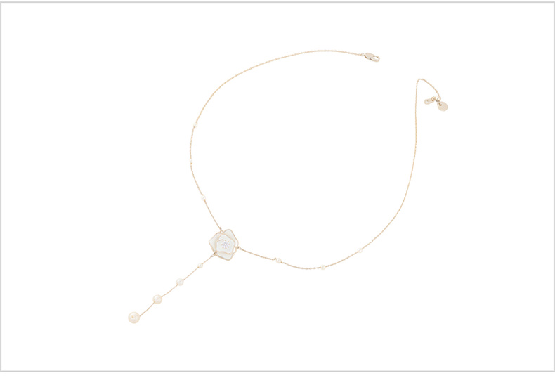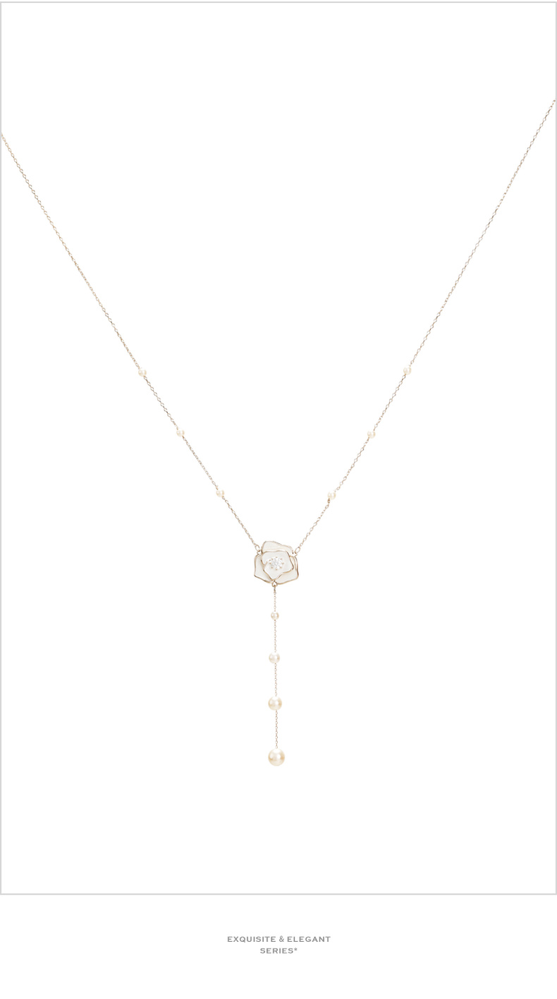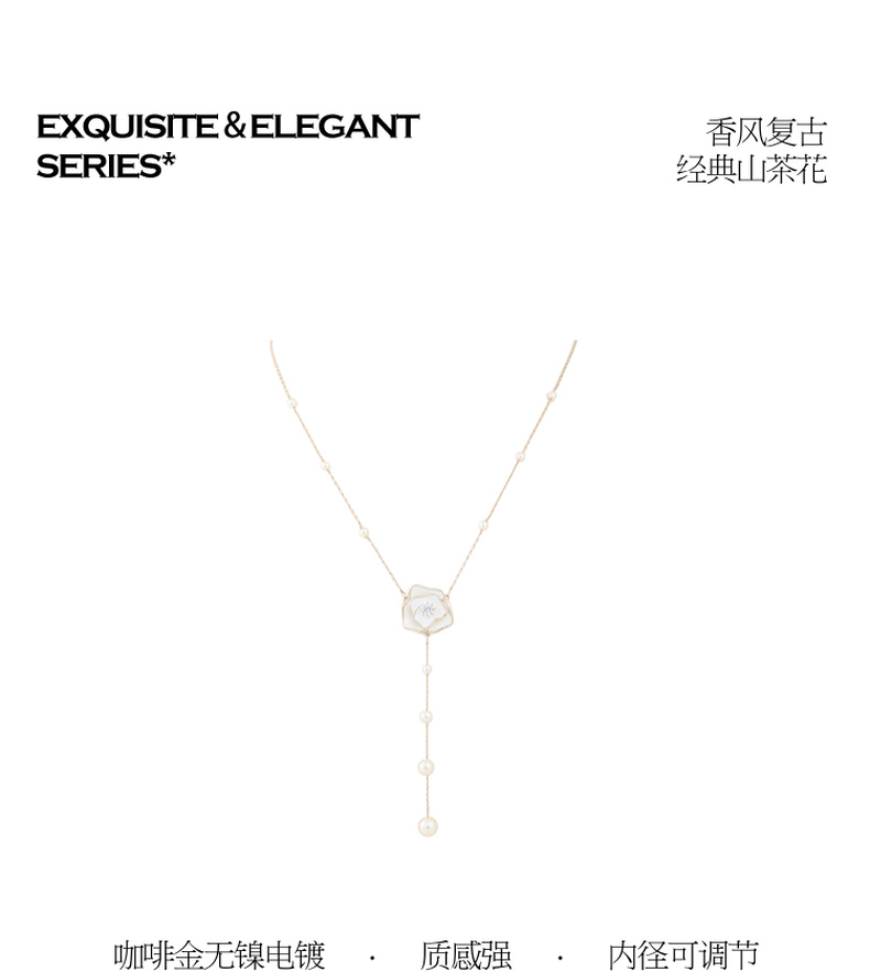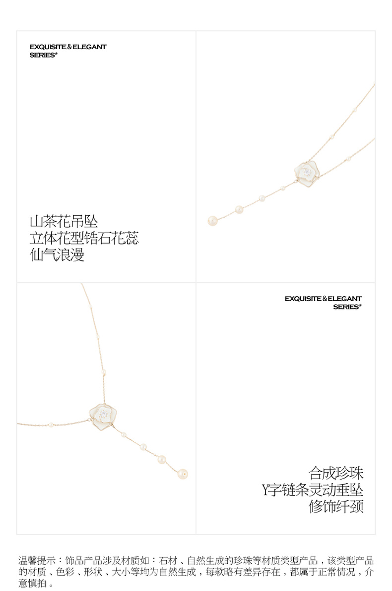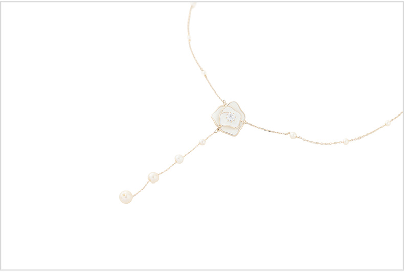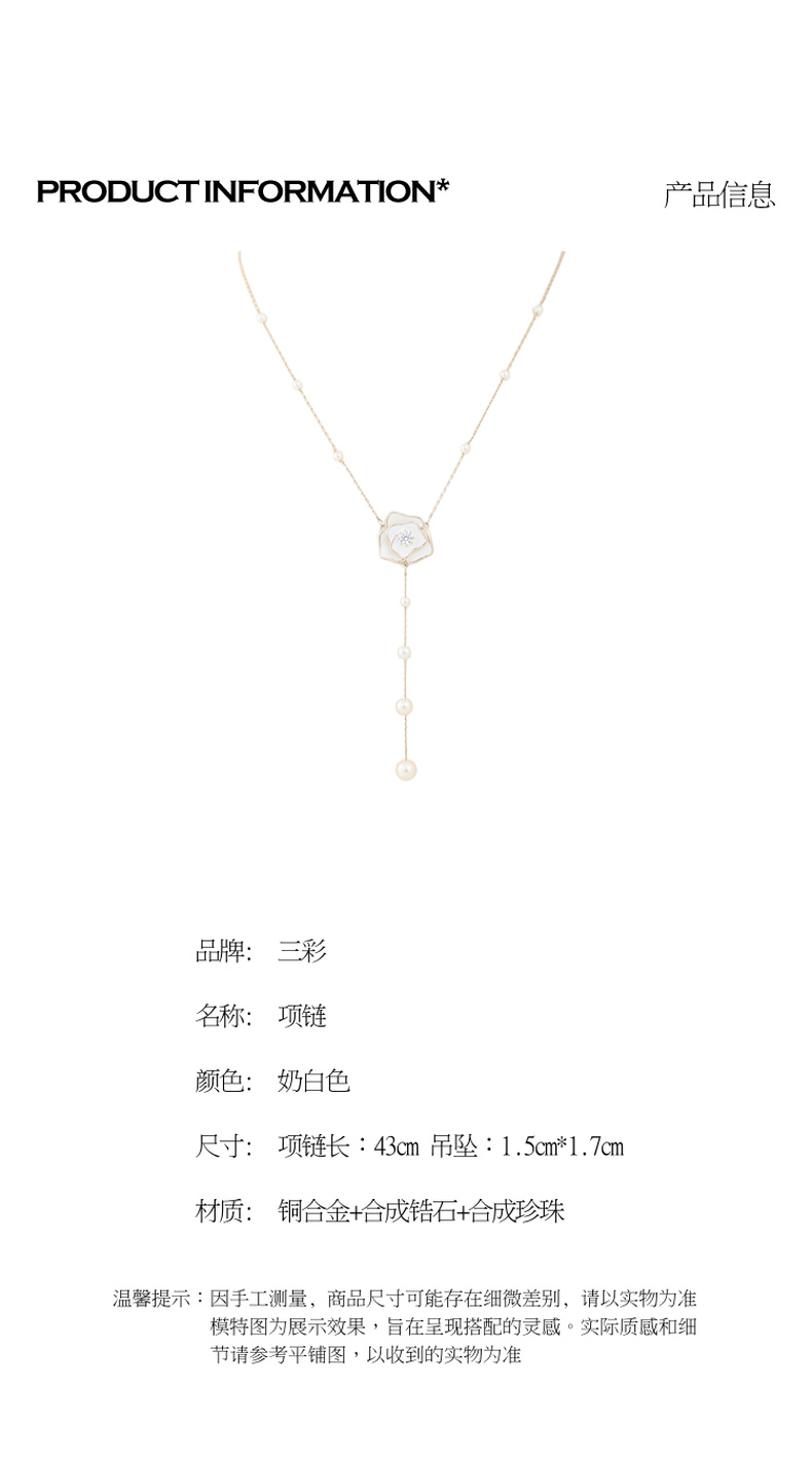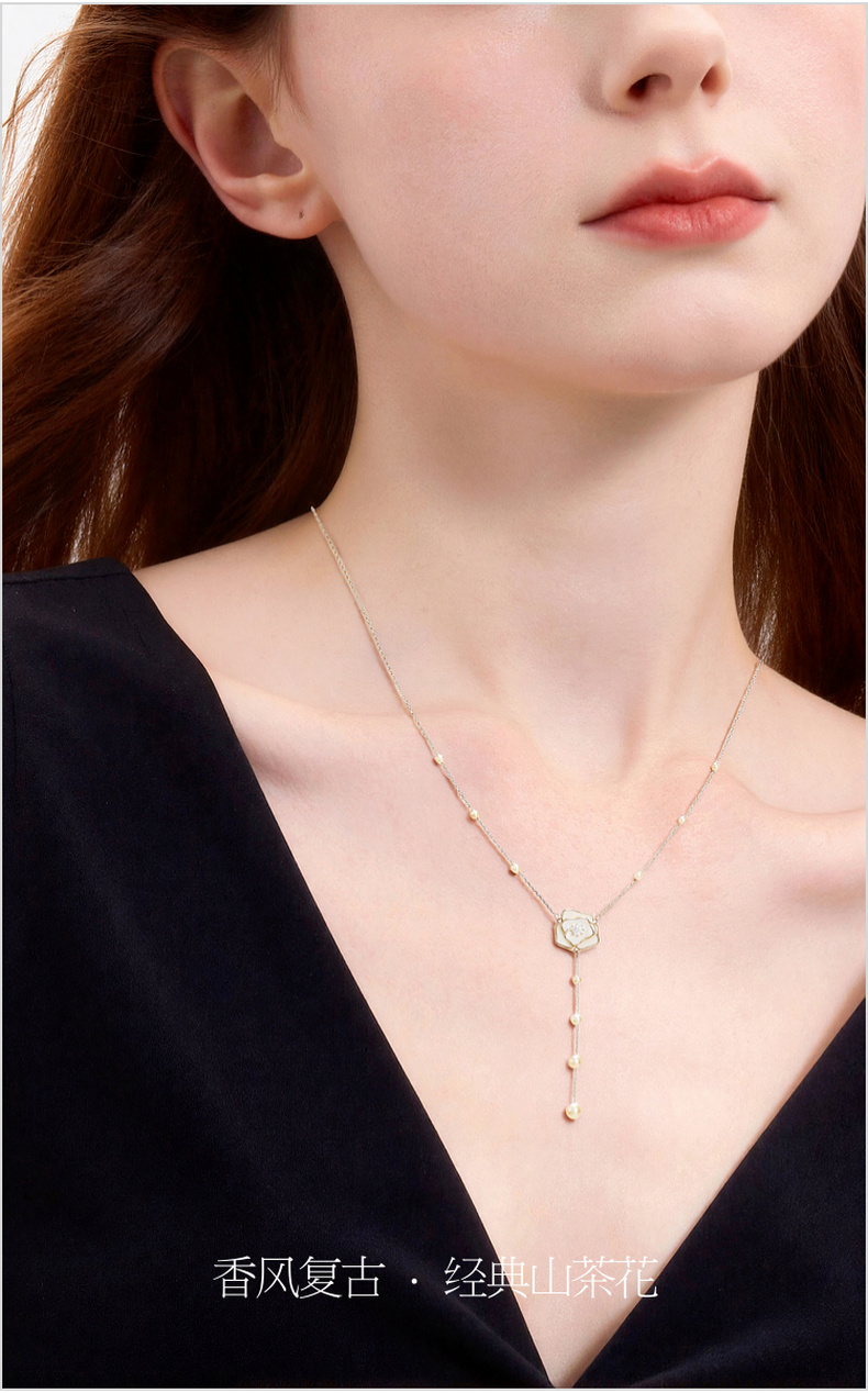 三彩2026新款山茶花吊坠Y字项链串珍珠仙气森系风约会下午茶氛围