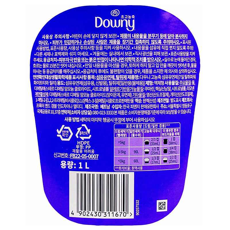 当妮柔顺剂基础款百合花香1L다우니 유연제 화이트티와 릴리