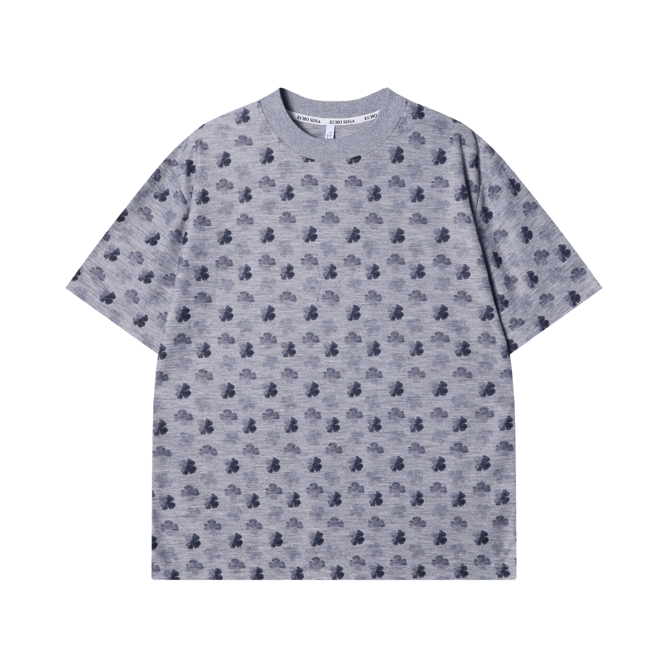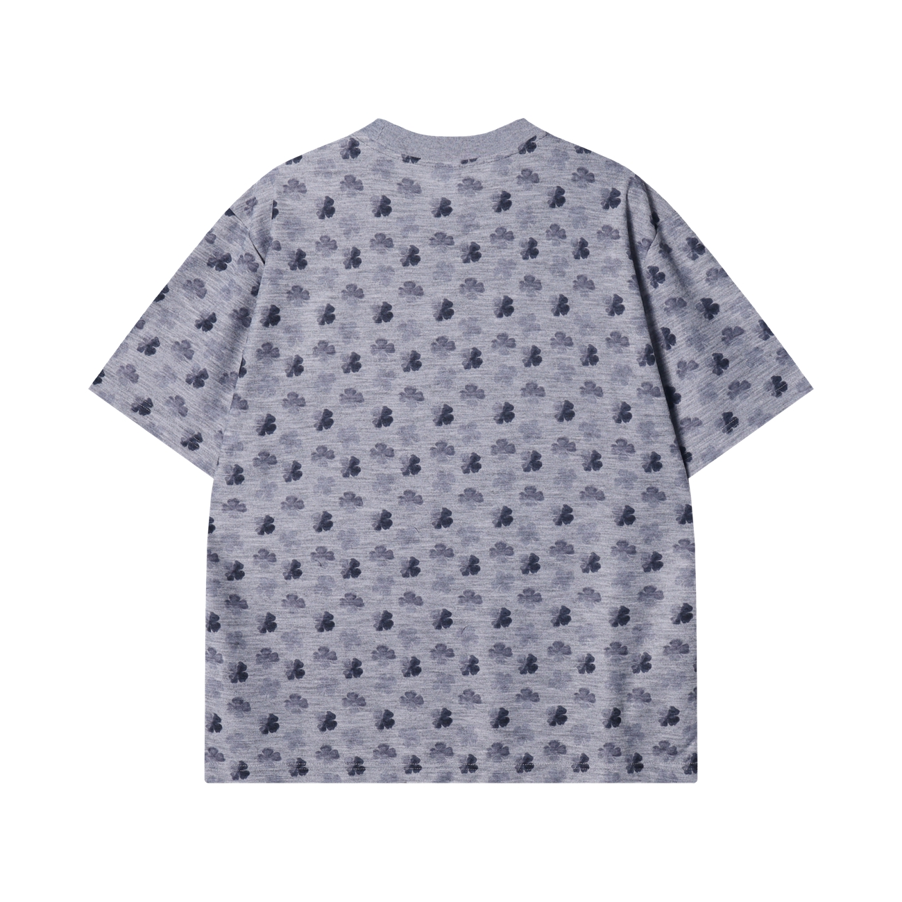 T3171夏季高级感新款韩系满印四叶草短袖T恤情侣宽松潮流休闲圆领上衣