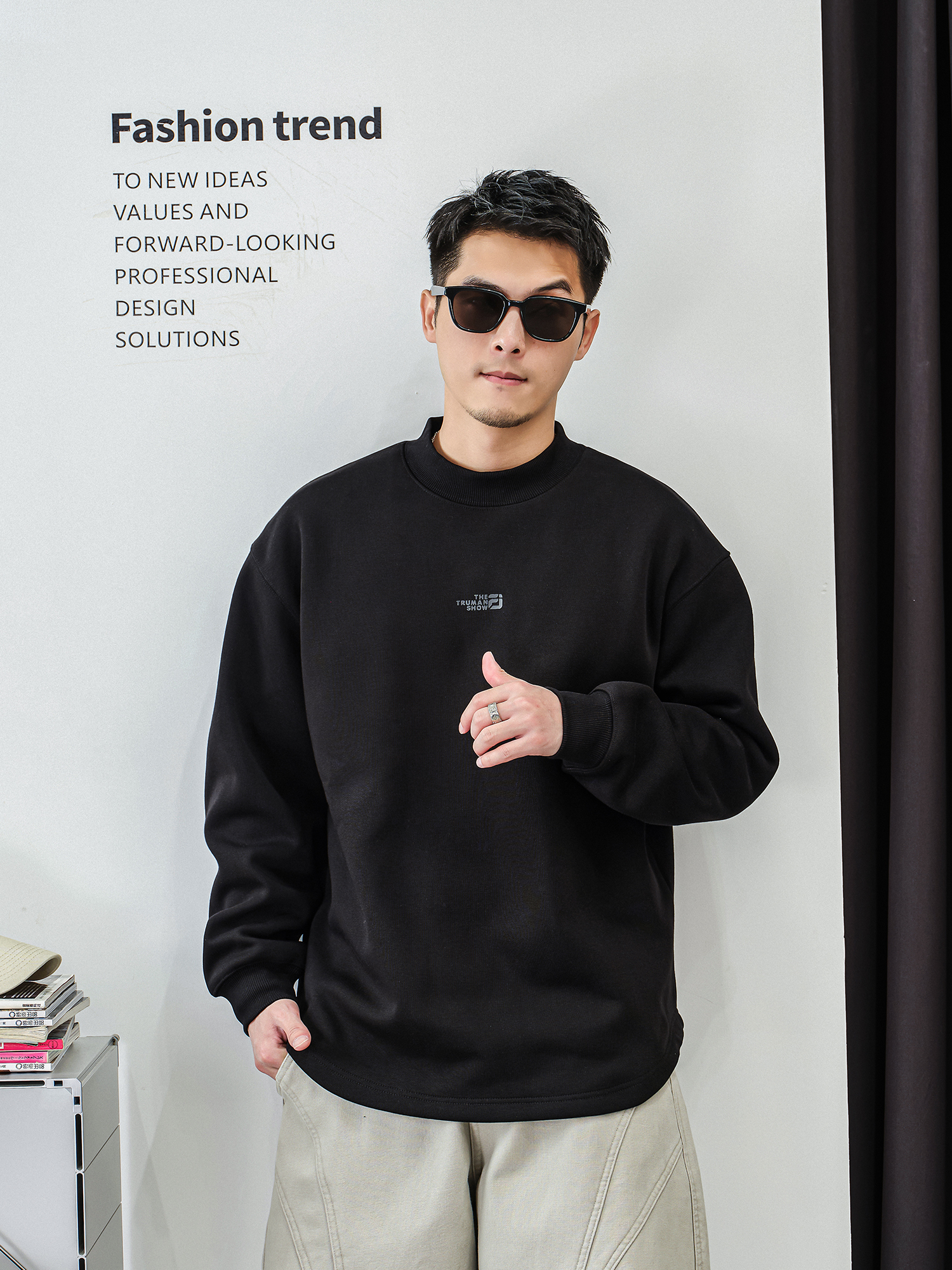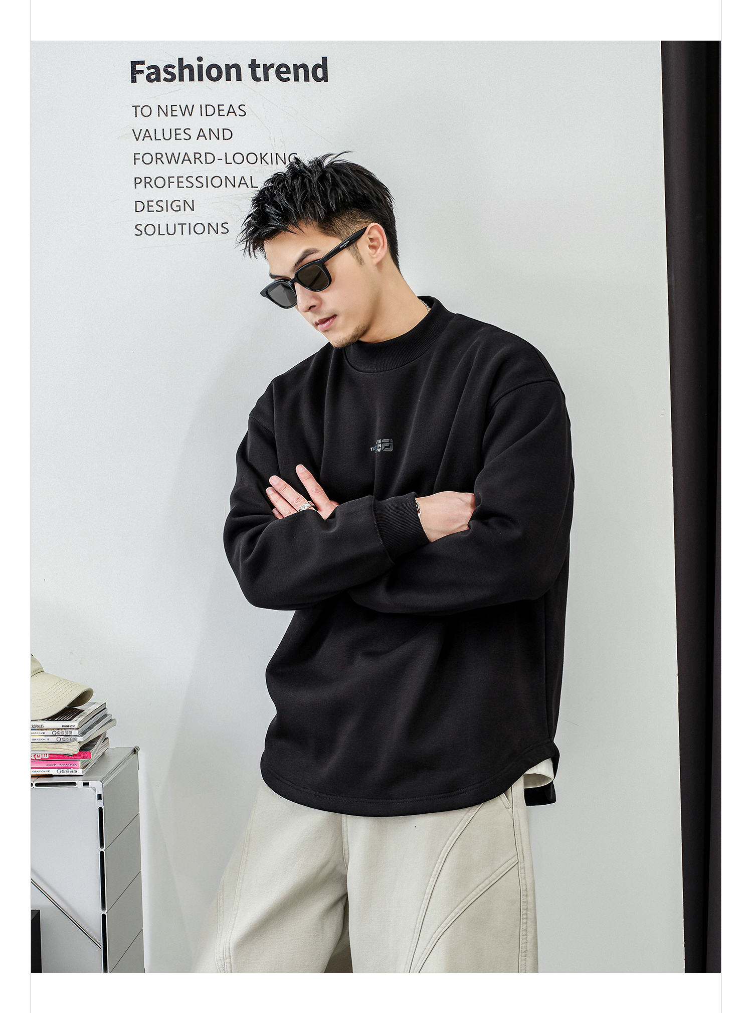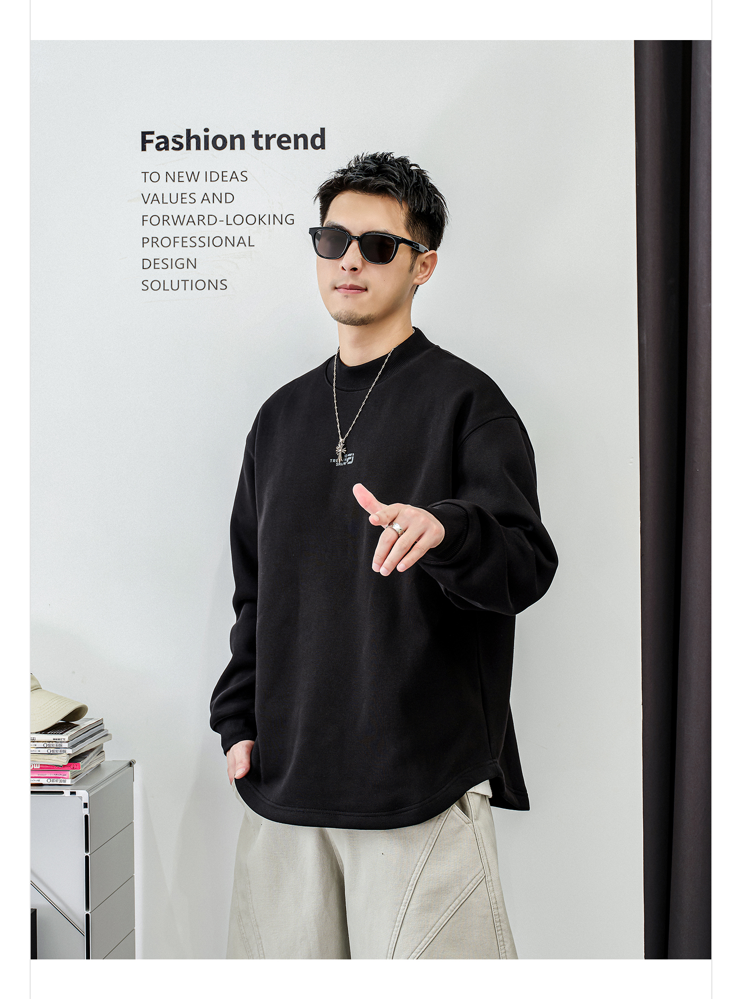 徐太浪【侧边开衩 休闲风】通勤加绒卫衣男秋冬款内搭打底衫上衣