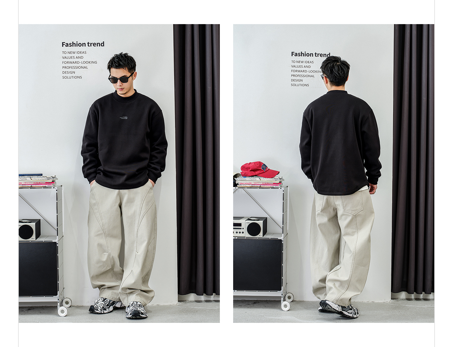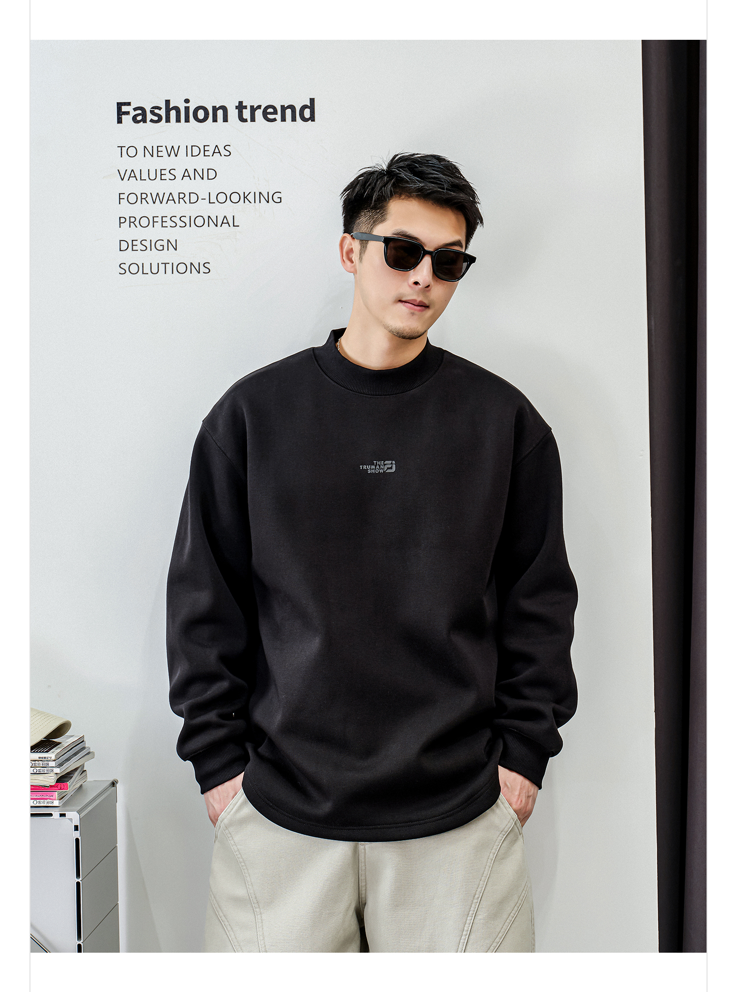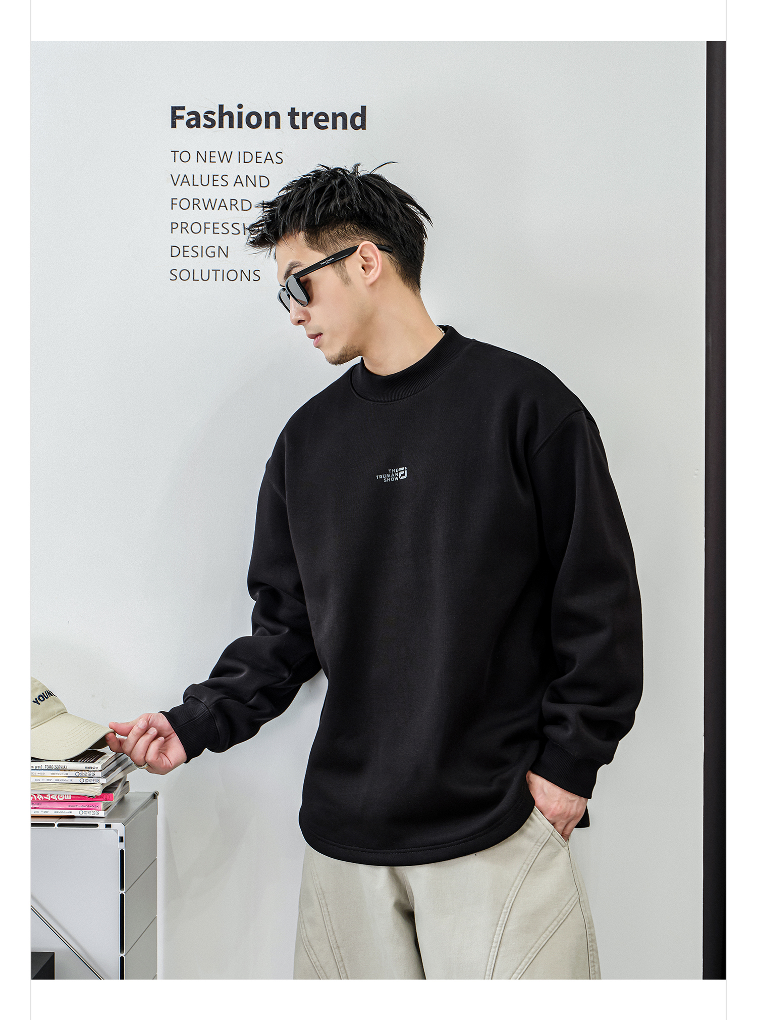徐太浪【侧边开衩 休闲风】通勤加绒卫衣男秋冬款内搭打底衫上衣