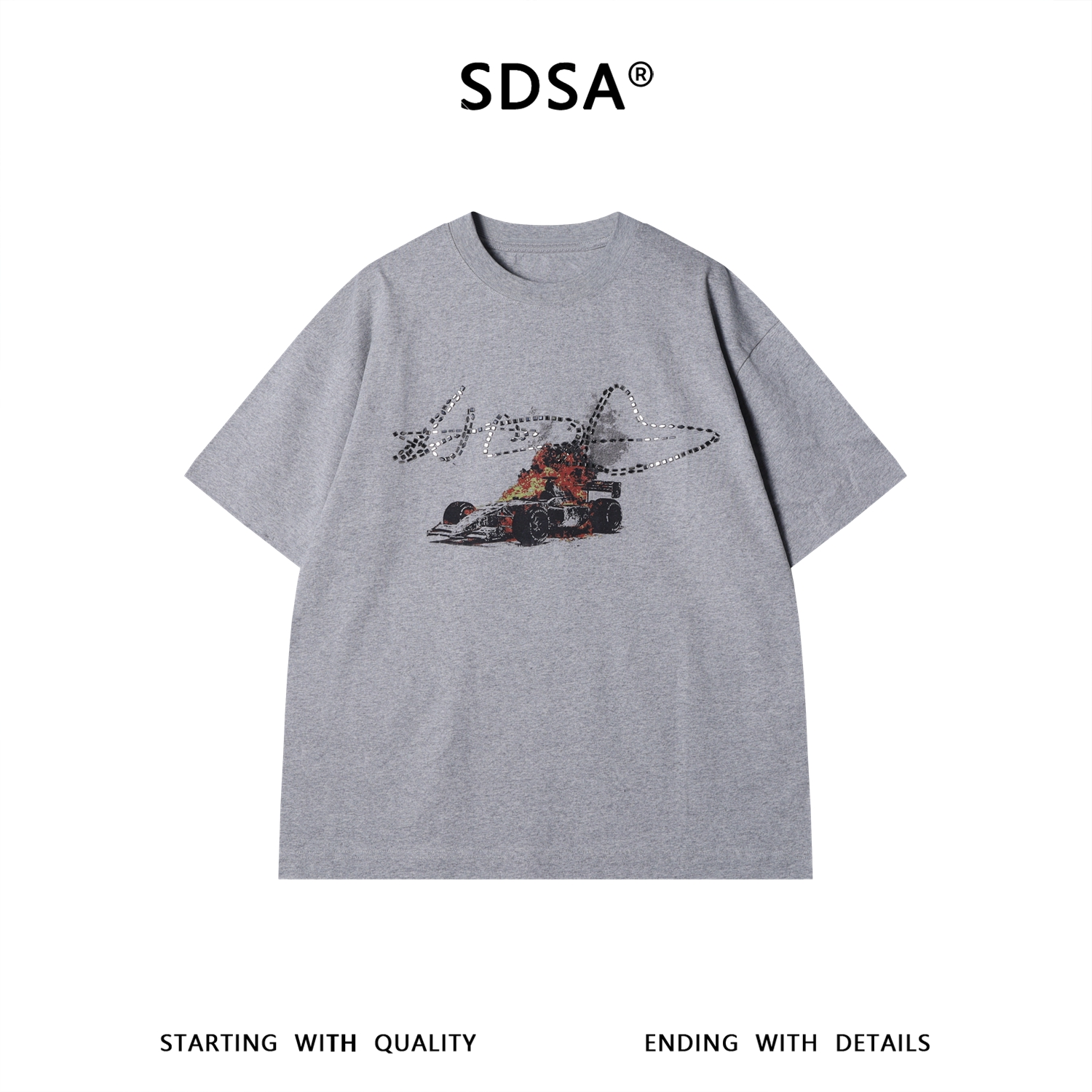 SDSA男装2026新款高贵轻奢潮牌美式烫钻印花圆领短袖T恤百搭显瘦