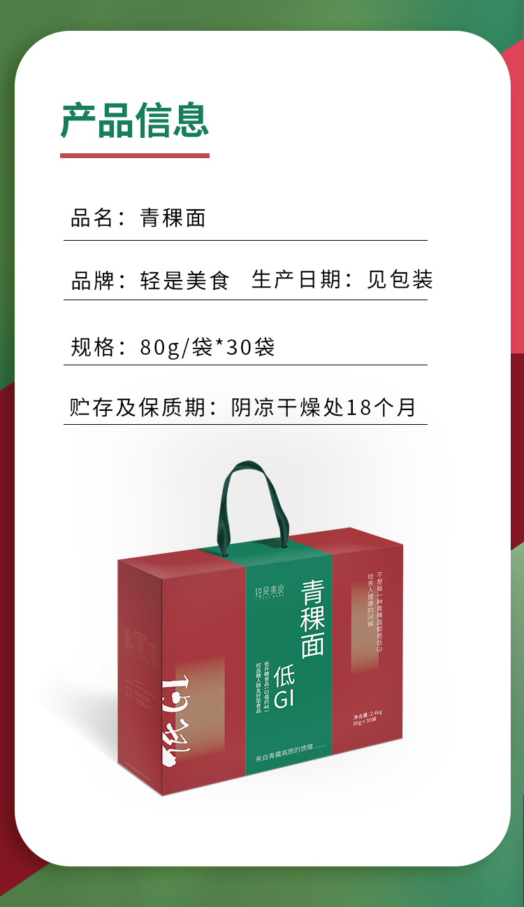 (2盒装)纯青稞面 低GI低脂低升糖轻食面青稞面拌面礼盒装 80g*30包/盒