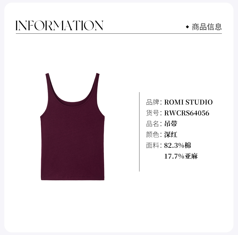 ROMI STUDIO 欧洲进口亚麻精梳棉混纺轻柔U领吊带背心 RWCRS64056