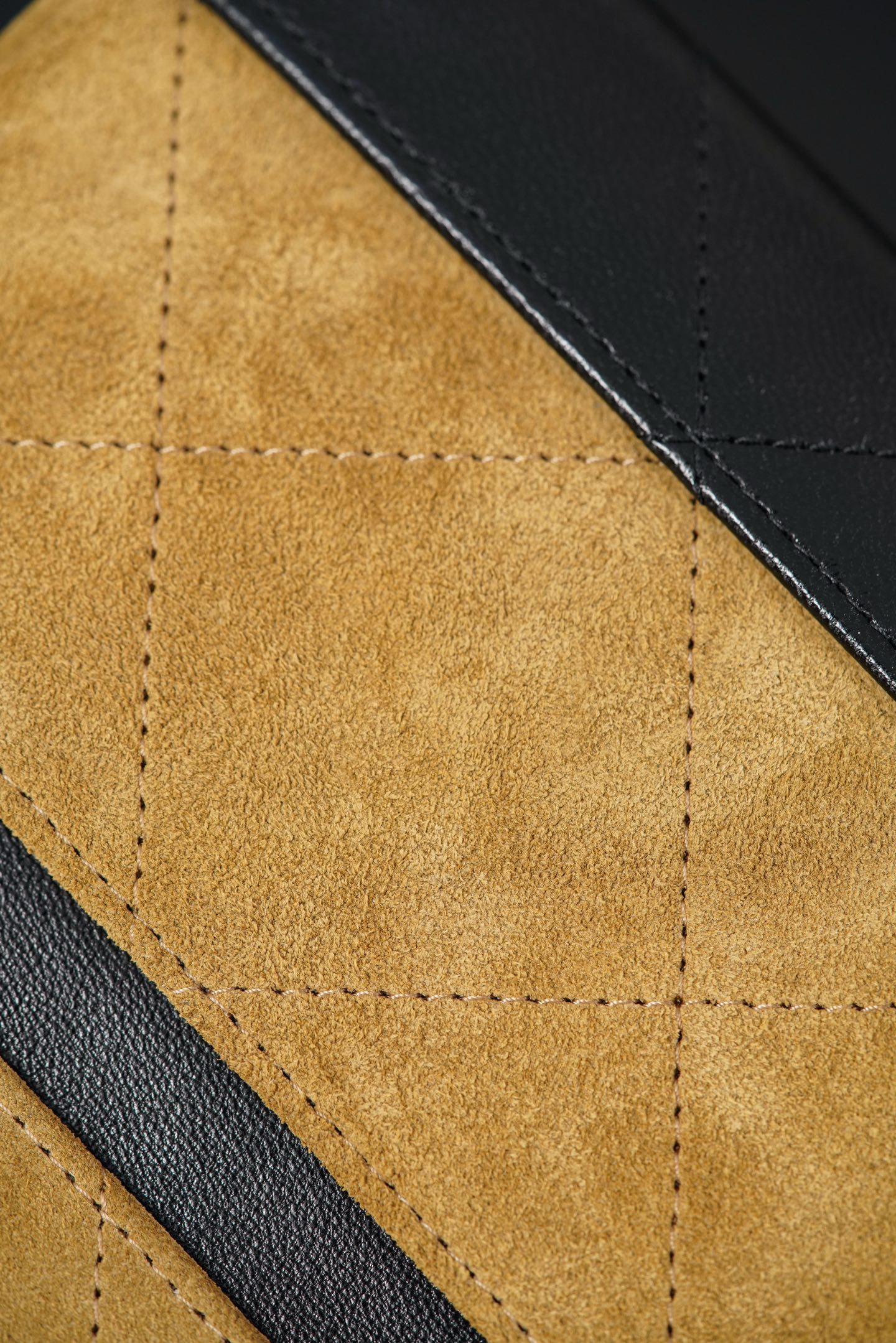 反绒麂皮拼皮特写🐂 经典菱格缝线 针脚细腻立体,进口麂皮绒面细腻柔软,包底与手柄采用光滑小牛皮 纹理紧实耐磨🐂