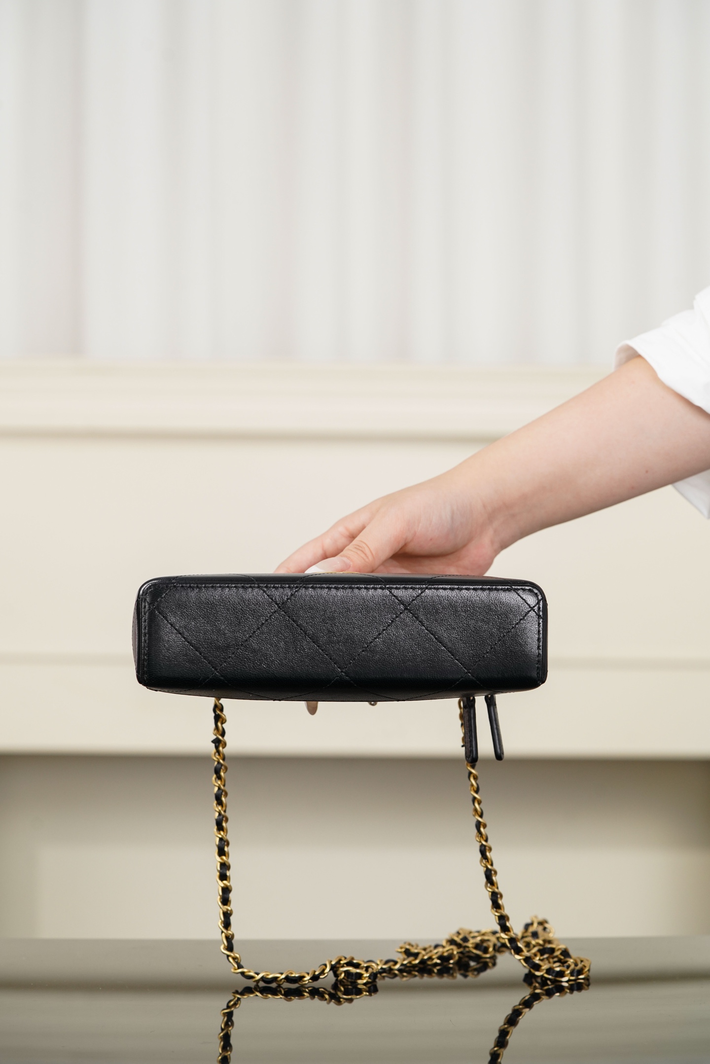 黑色内里特写;精致的皮牌与熔岩烫金鉴赏‼️ 包型挺括 容量空间足够日常使用;此款为小皮具非芯片标;