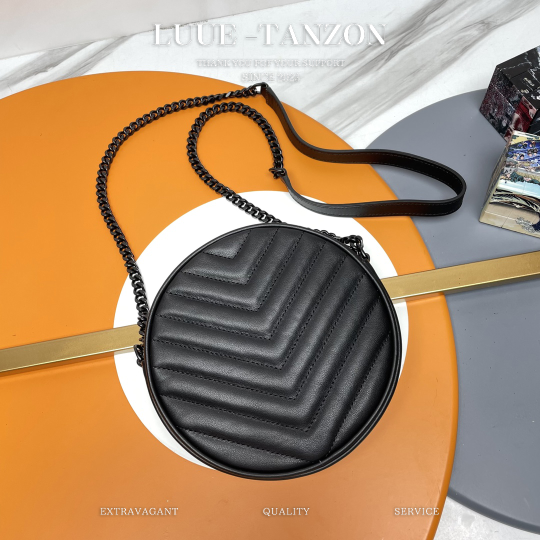 专柜最新VINYLE可爱小圆包登场!选用进口高品质鱼子酱牛皮精心制作,轻巧得来手感又特别细腻!表面的V型缝线充盈饱满,低调中透露出少许个性设计感!五金为轻度磨砂微微做旧质感,相比起亮面五金显得更为耐看高级!直径17cm迷你可爱的尺寸却足以容纳日常出门所需!小小一只,真的特别精致可爱!