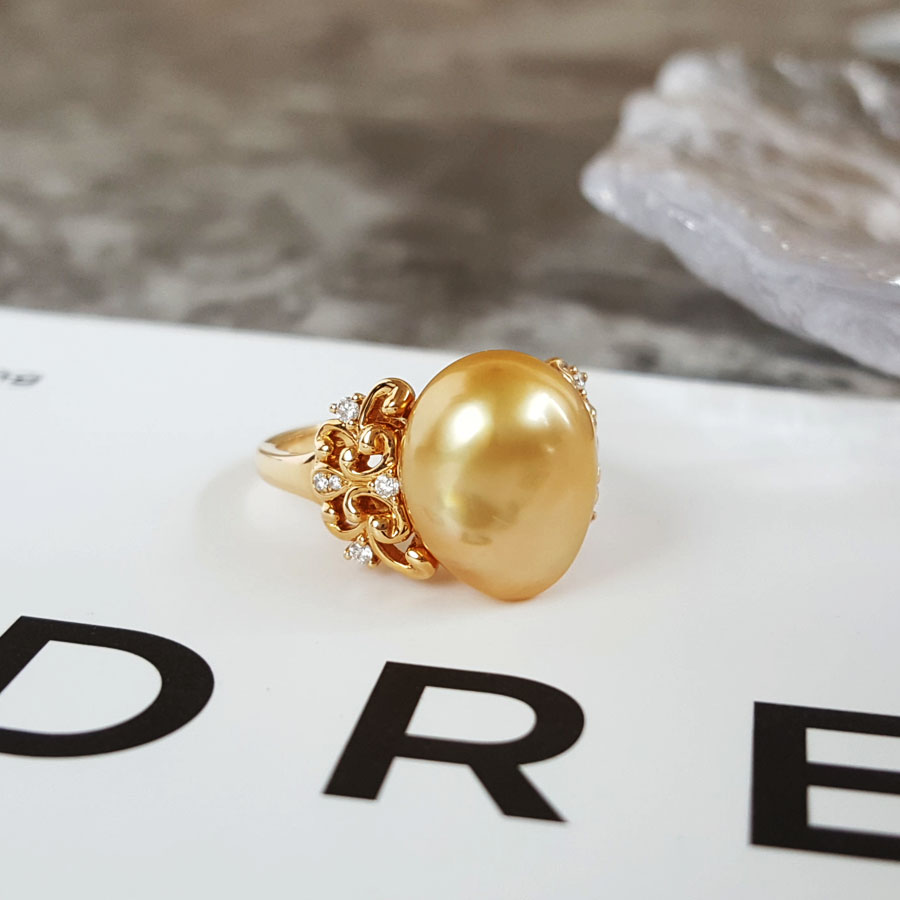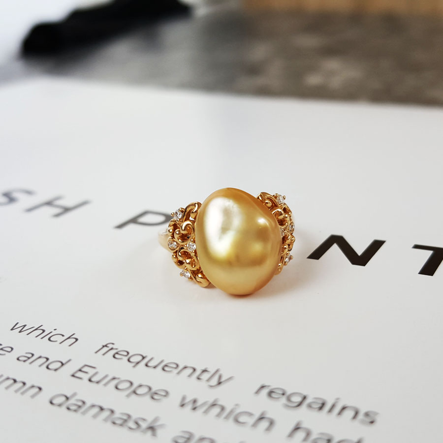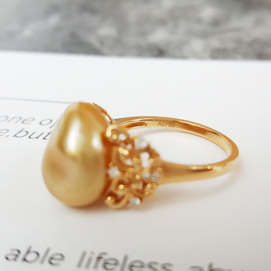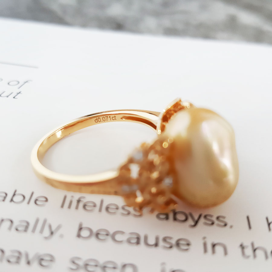 名称 | AU750黄金镶钻镶天然浓金金色巴洛克海水珍珠戒指 |