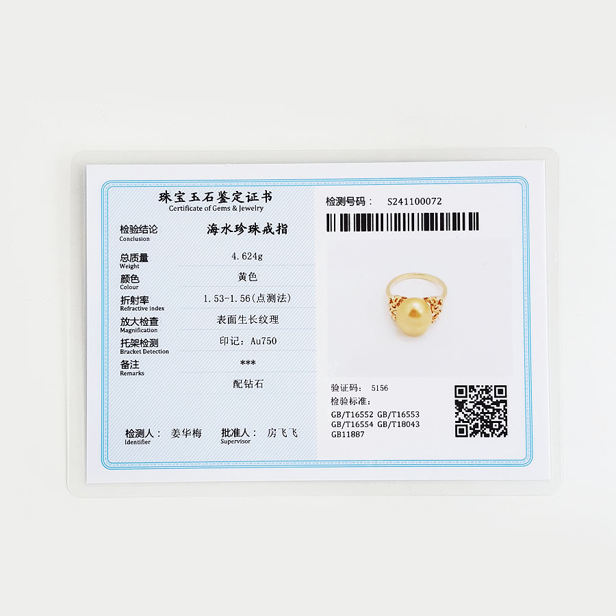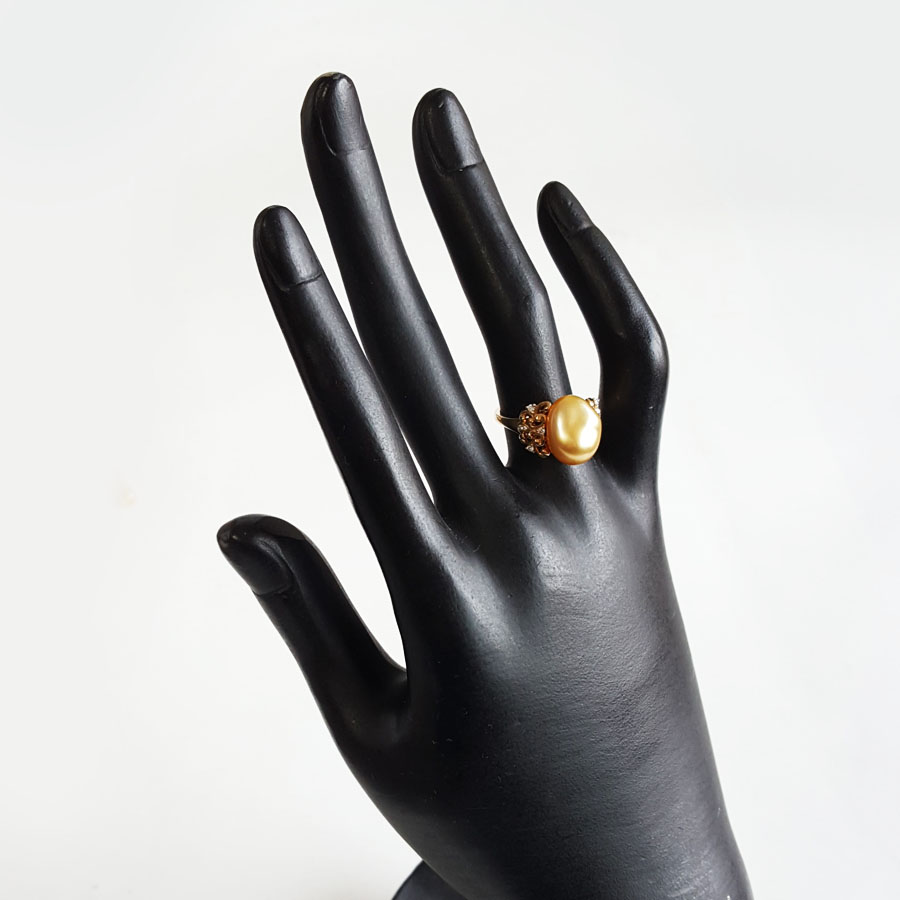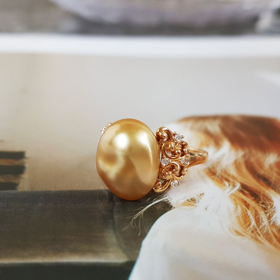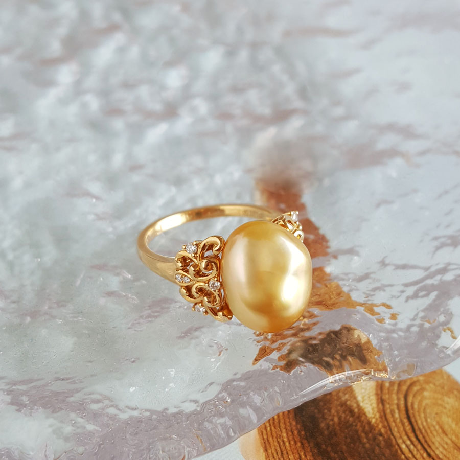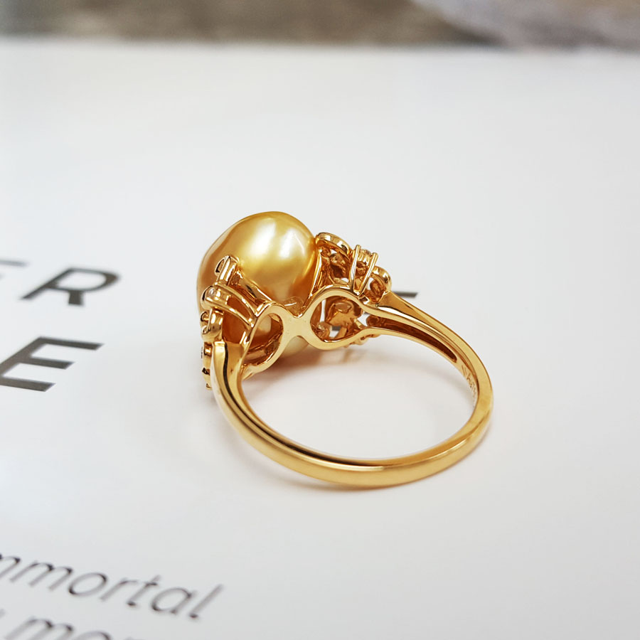名称 | AU750黄金镶钻镶天然浓金金色巴洛克海水珍珠戒指 |