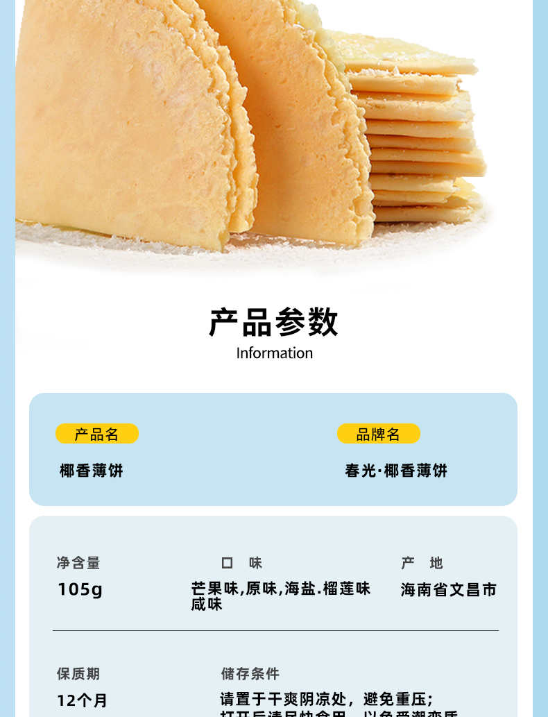 椰香薄饼105g/150g 盒装 椰子榴莲芒果多口味