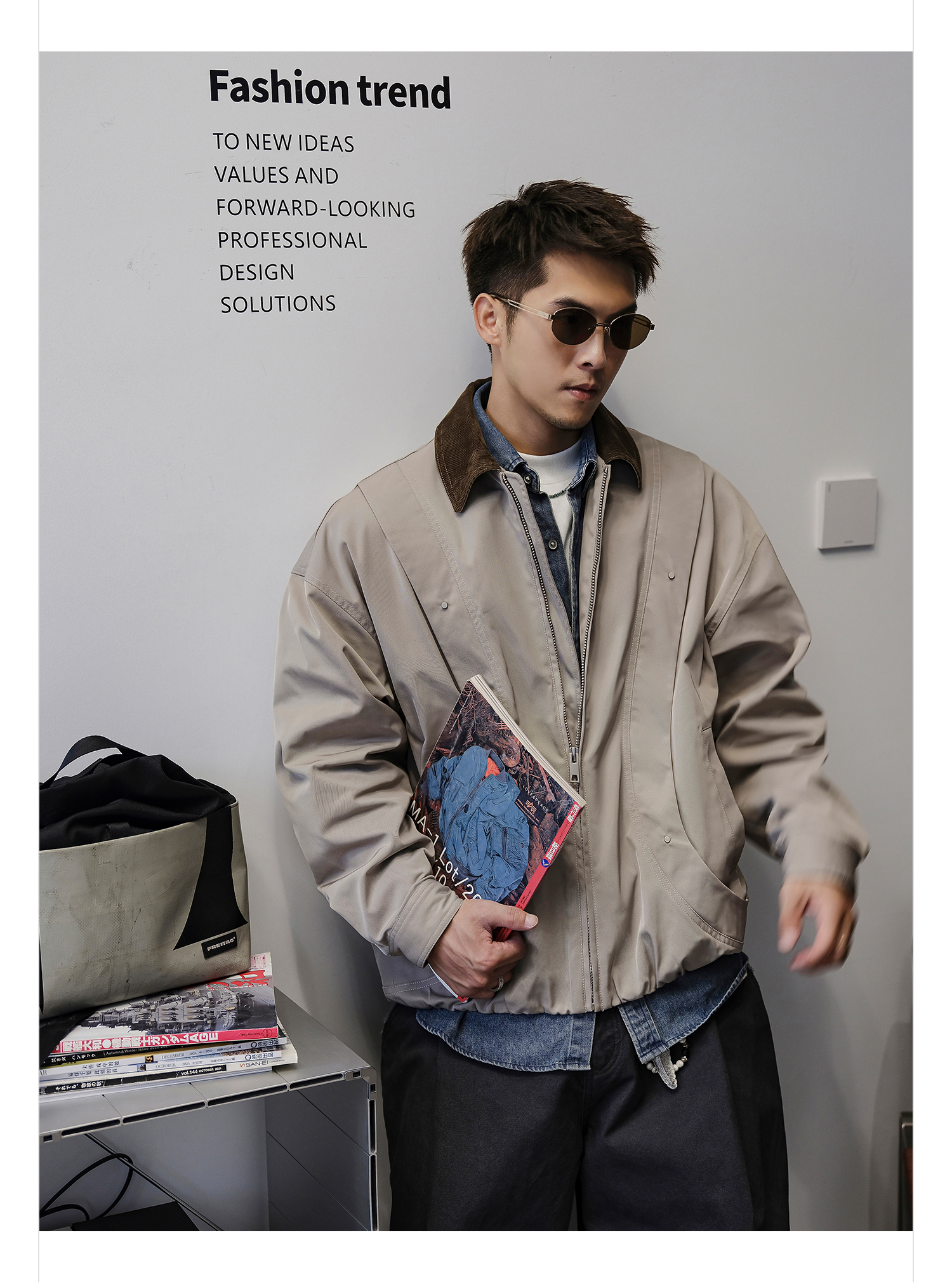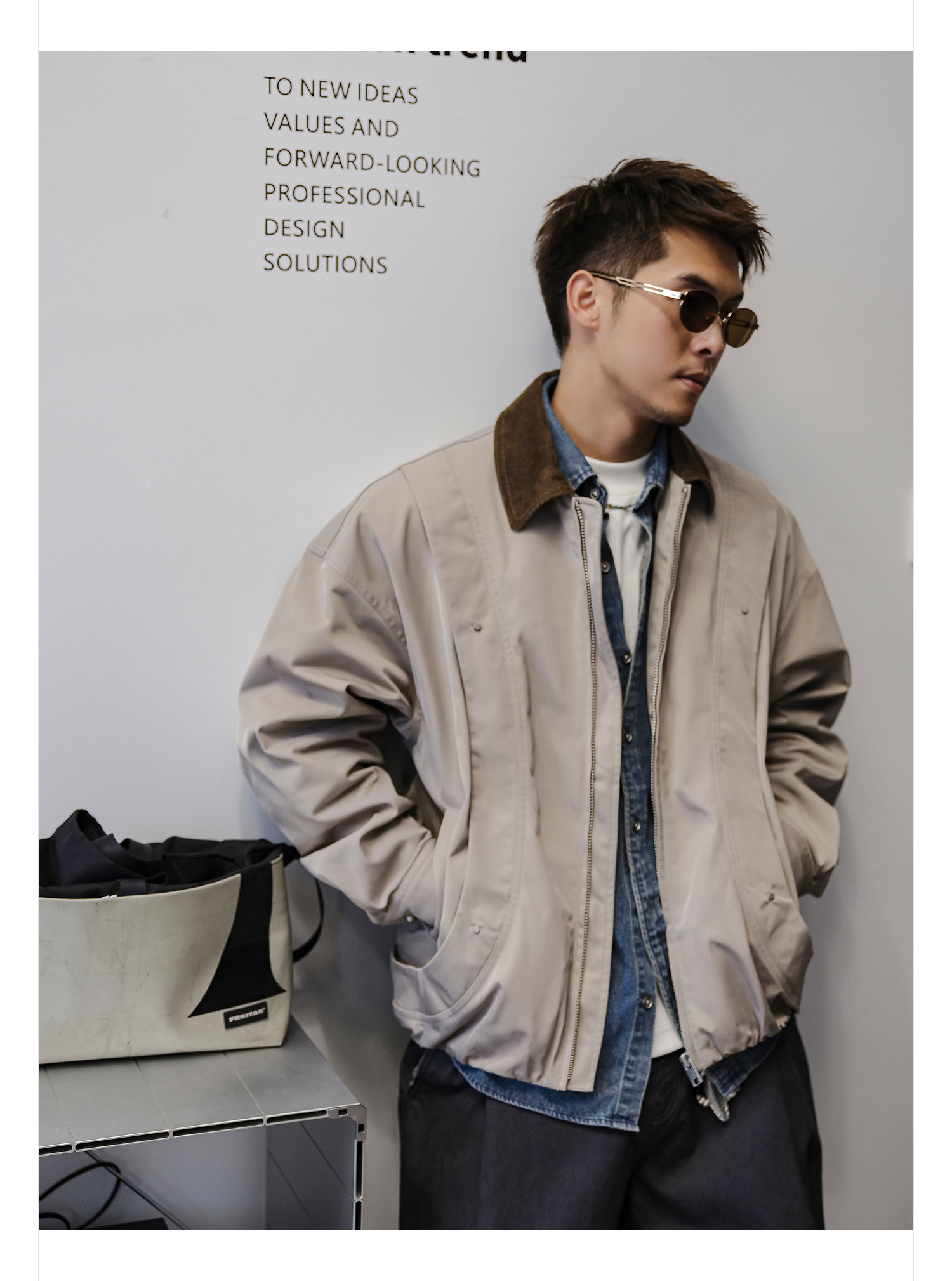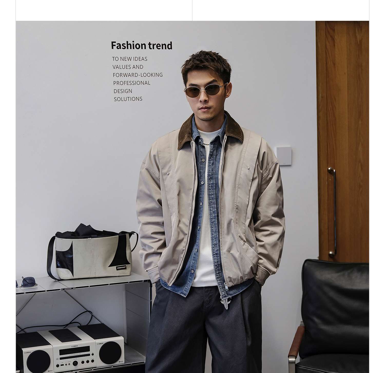 徐太浪【立体裁剪 缉明线】拼接翻领夹克男春秋潮牌灰色防风外套