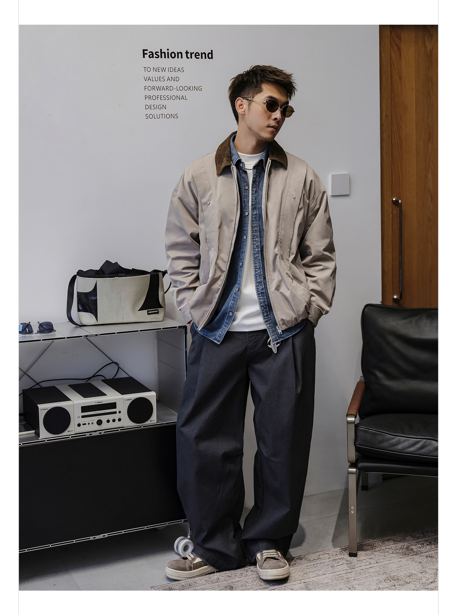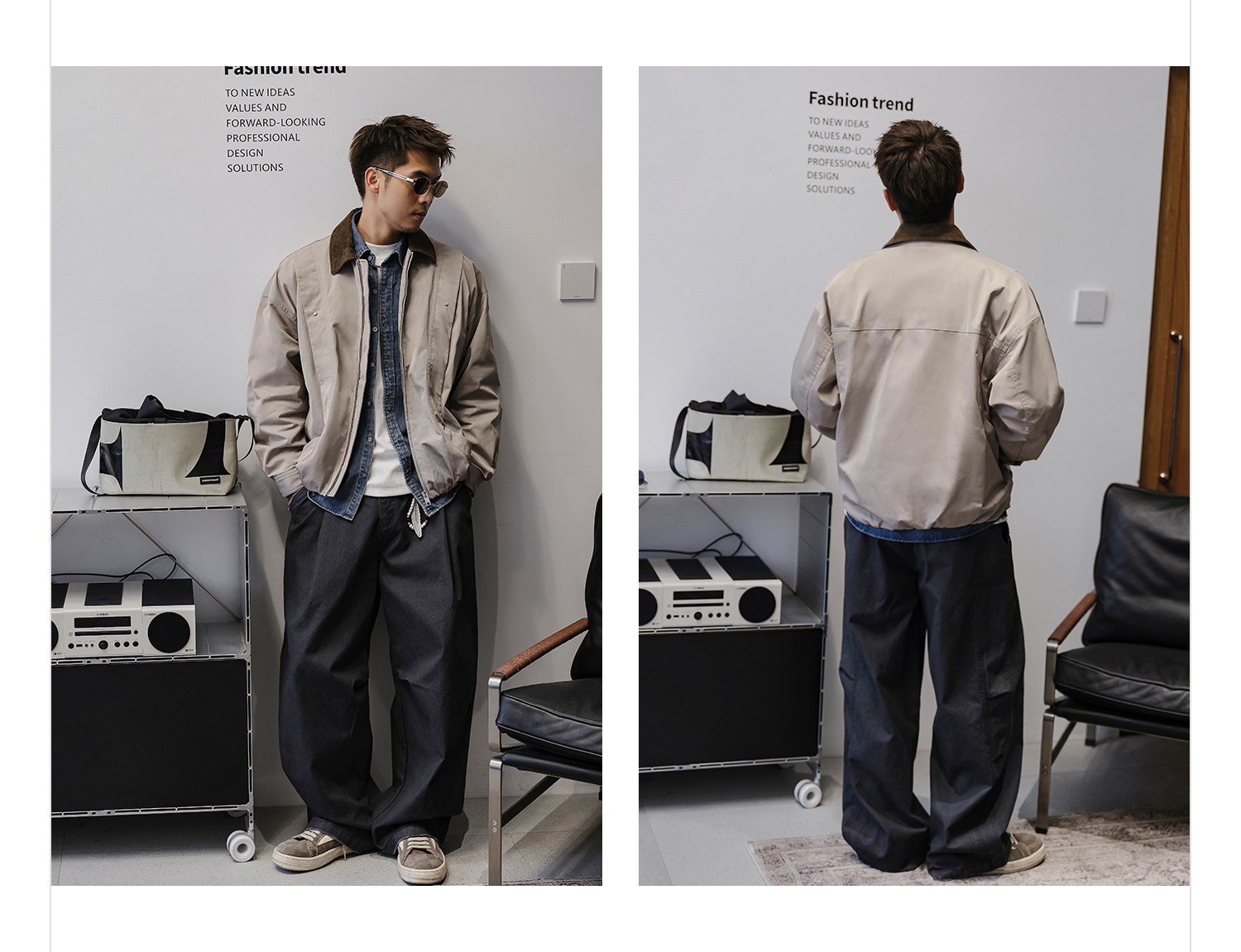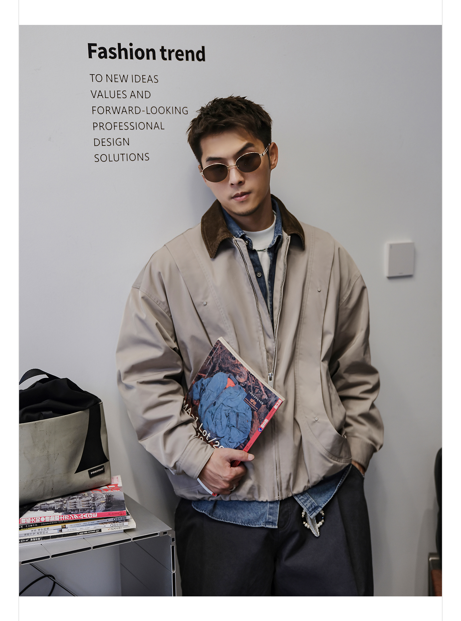 徐太浪【立体裁剪 缉明线】拼接翻领夹克男春秋潮牌灰色防风外套