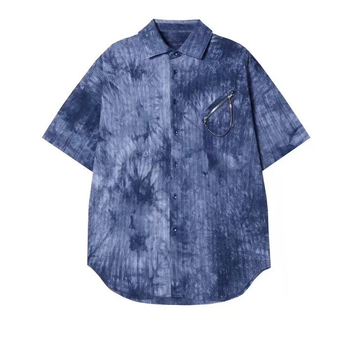 D2017新款百搭小众宽松设计感潮流渐变Polo短袖衬衫