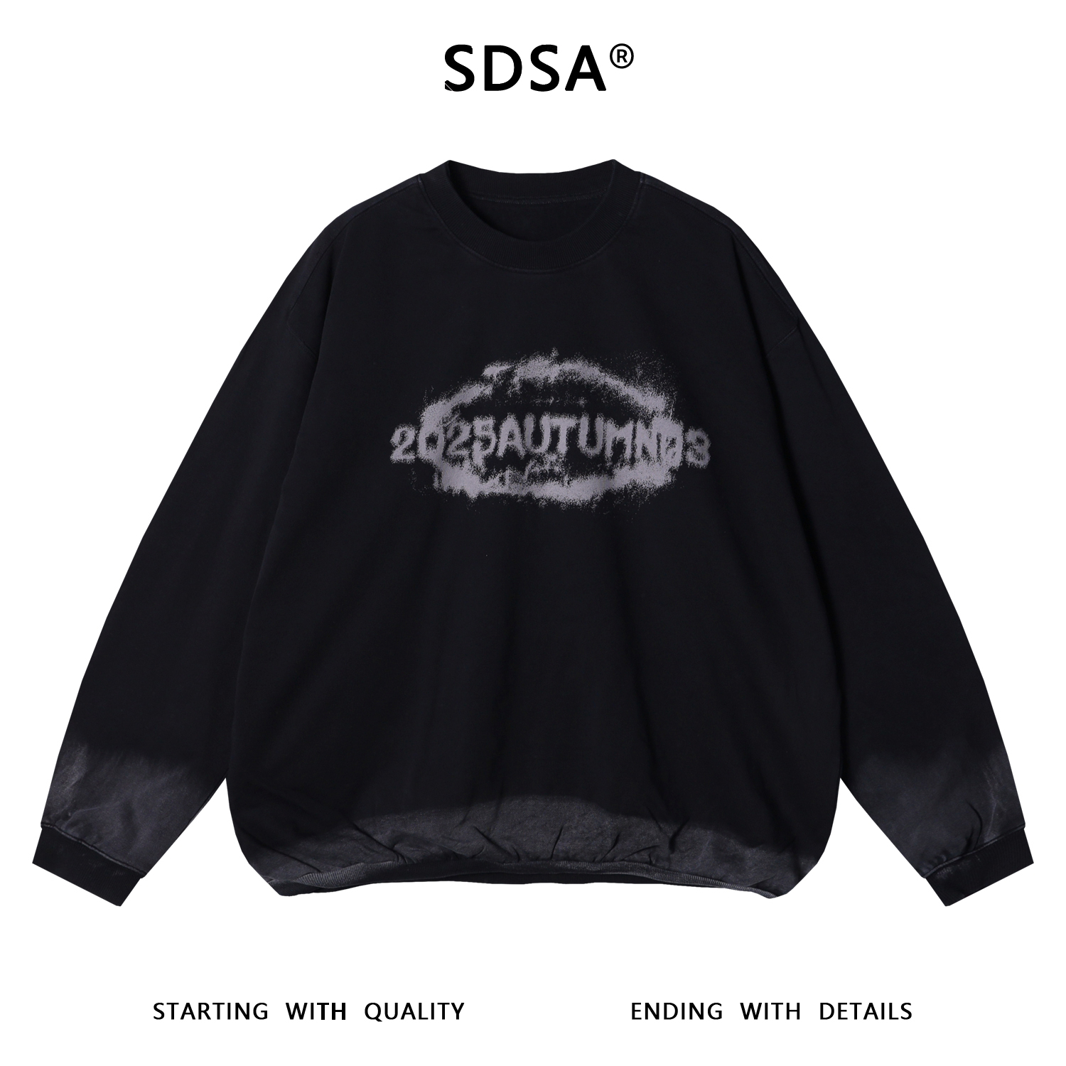 SDSA男士秋冬新款痞帅男装美式扎染字母印花圆领卫衣高街套头上衣