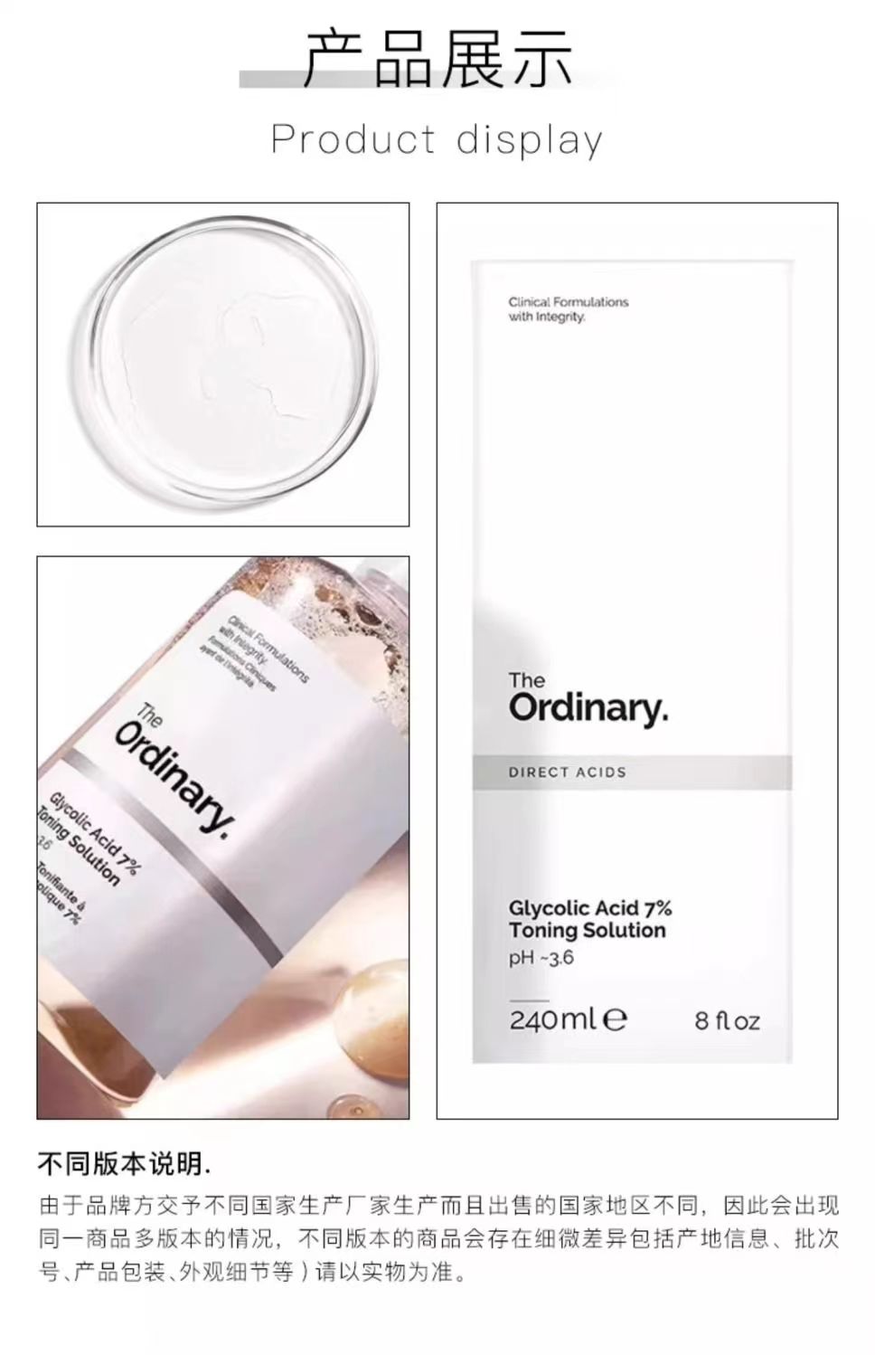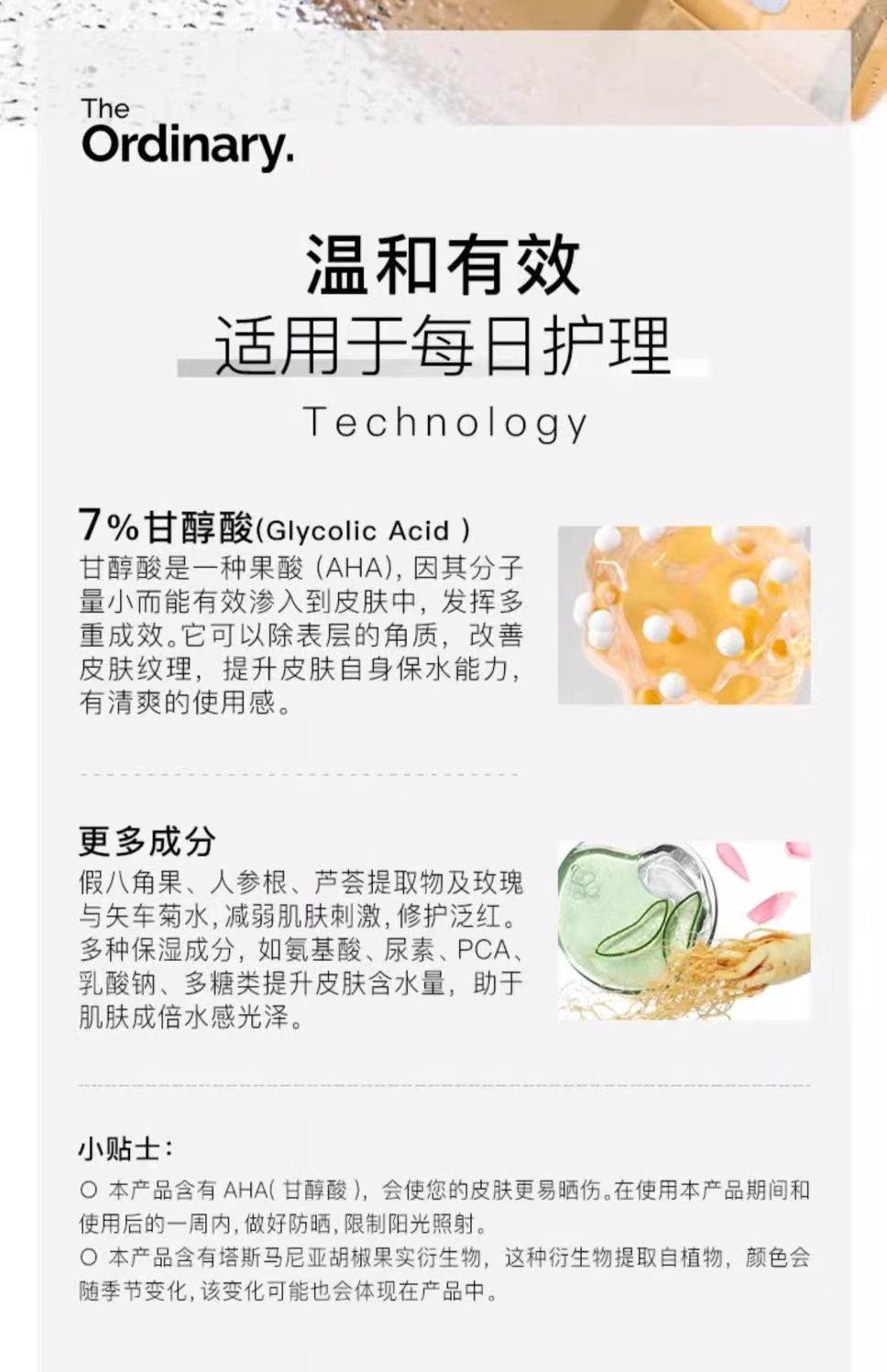 The Ordinary7%甘醇酸果酸爽肤水240ml 调理保湿温和去黑头粉刺